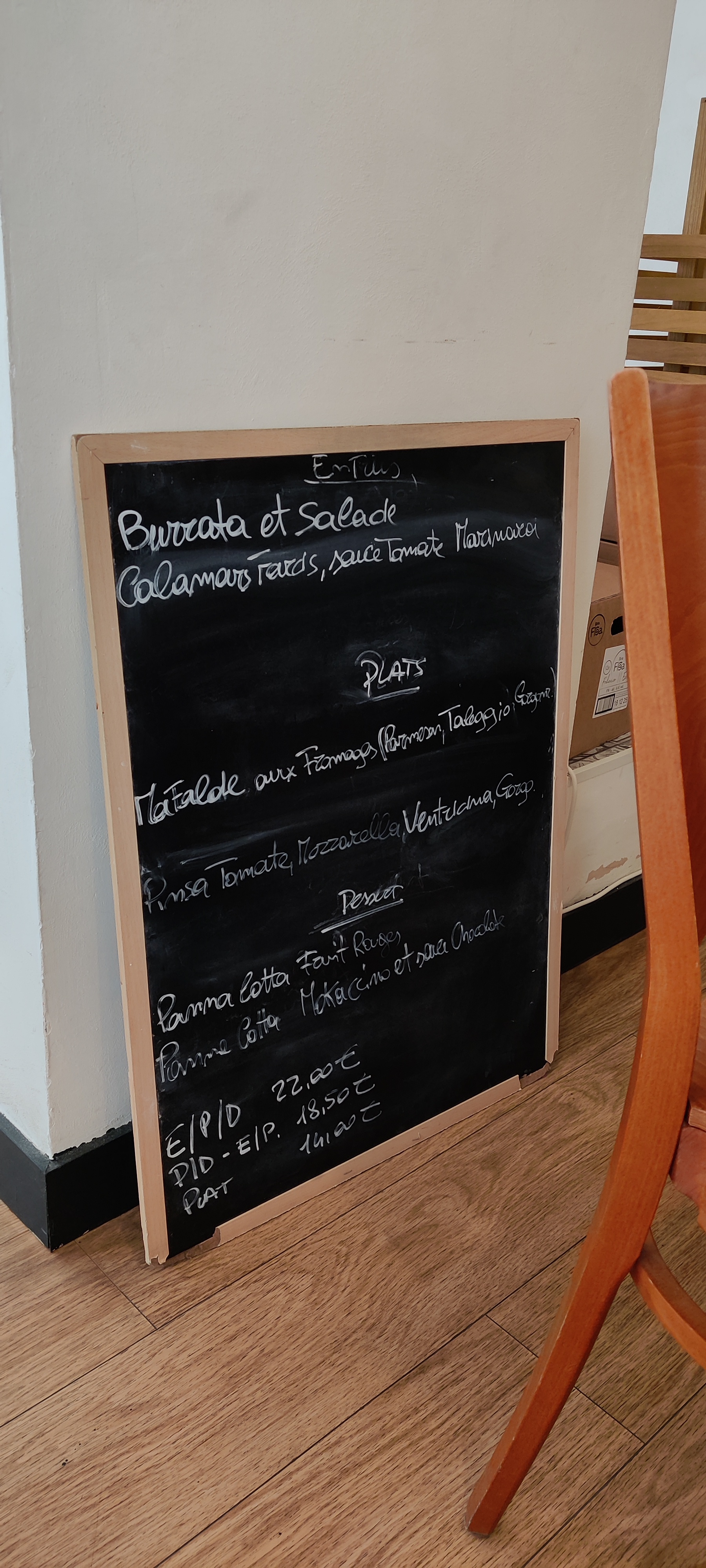 Très bon accueil entre italien et apéritif offert. Plats avec des produits frais et entièrement faits maison. On pardonne la déco l'un peu vieillotte. Environ 30€ /pers le soir pour entrée + plat.