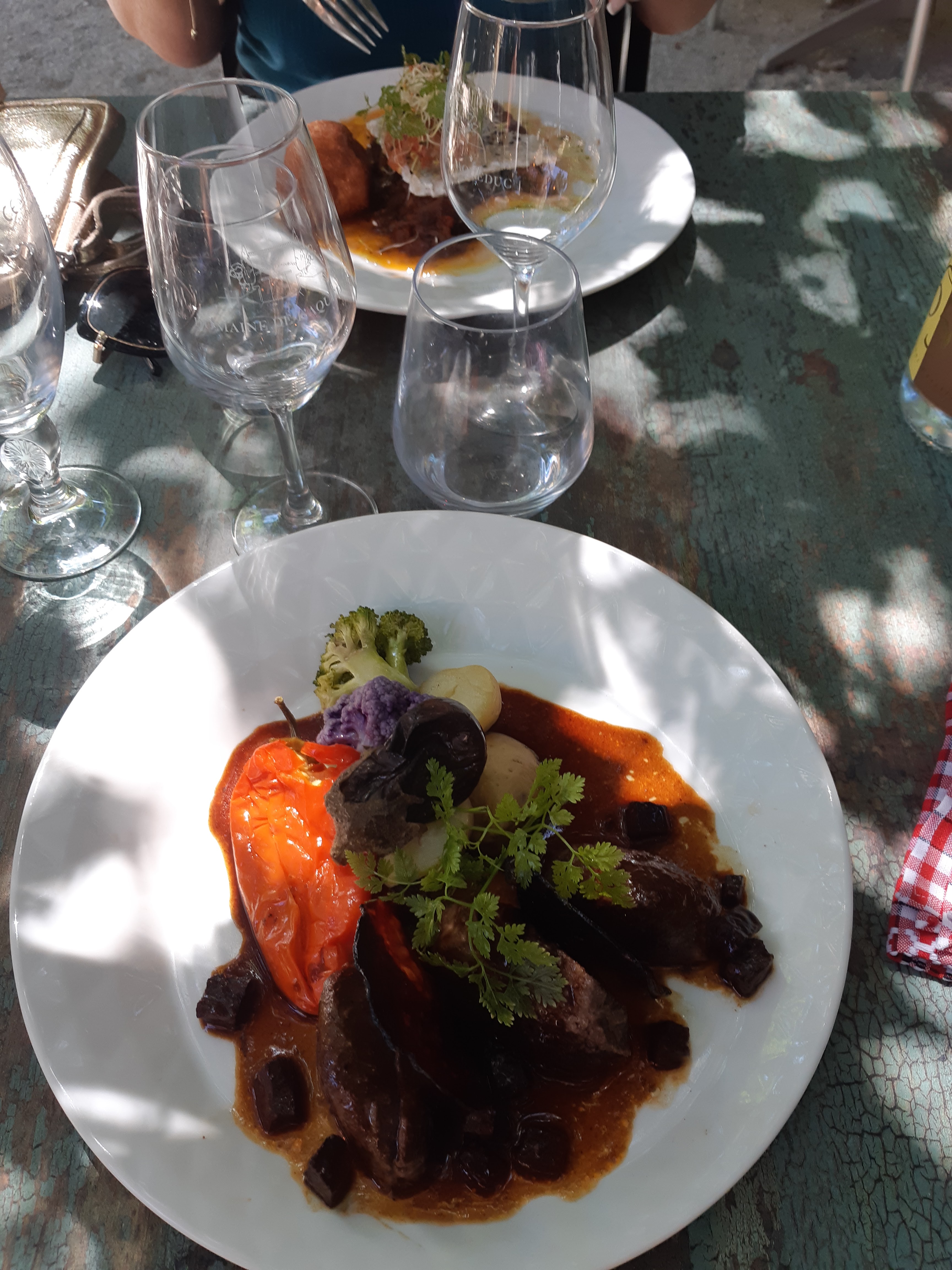 Terrasse ombragée pleine de charme. Le service était parfait, difficile de choisir dans la carte, tout nous faisait envie ! C'était délicieux, un juste équilibre de saveurs dans un cadre idyllique.
