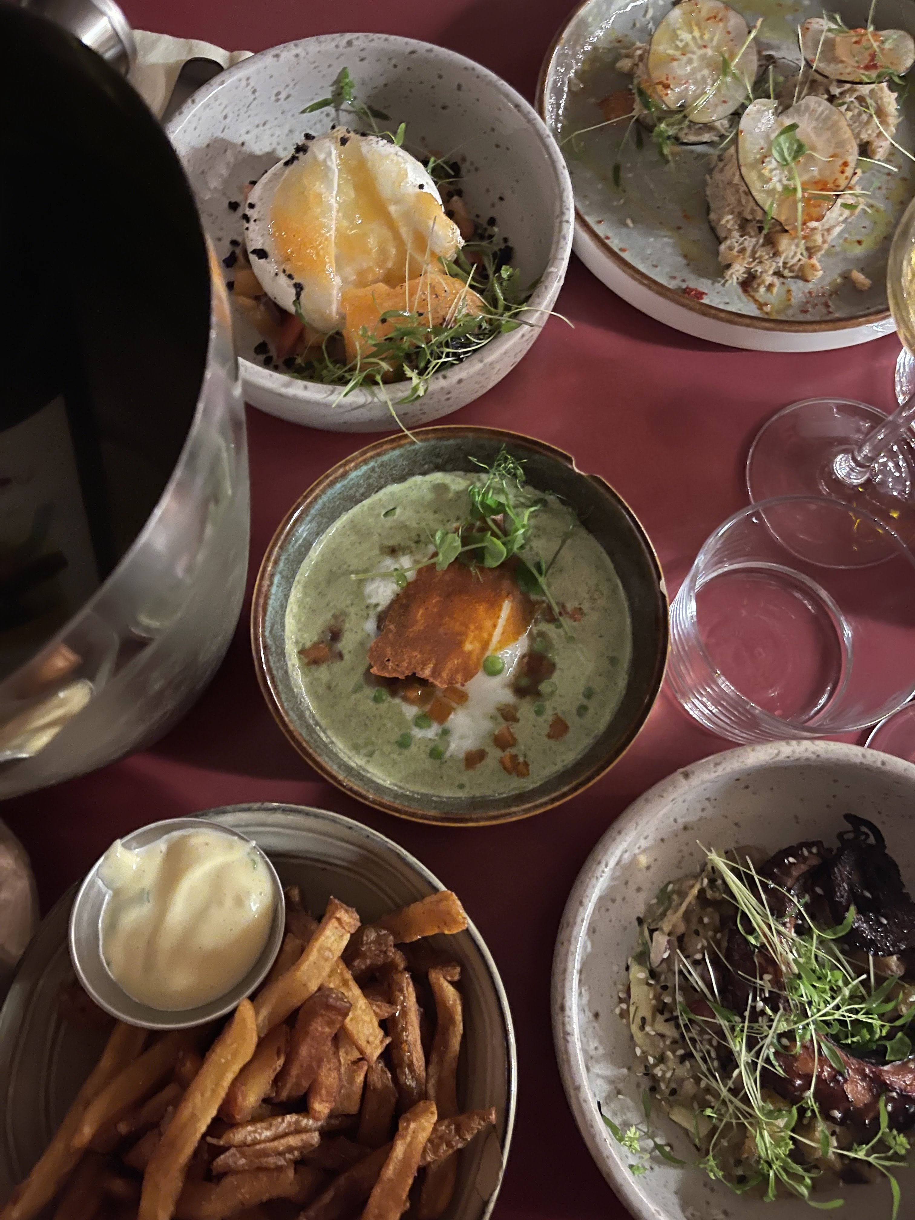 Beau restaurant avec une belle sélection de vin. Cependant, certains des « petits plats » sont excessivement chers pour ce qui est servi. Payer 13€ pour se voir emmener un minuscule sandwich avec quelques morceaux d’effiloché d’agneau à l’intérieur bon ça laisse un goût amer…. Pareil, 9€ pour avoir 2 fromages sans qu’on nous dise lesquels c’était. On aurait espéré un petit accompagnement, une salade ou quelques légumes, mais même pas. Bref, c’est bien dommage car le concept est vraiment cool !