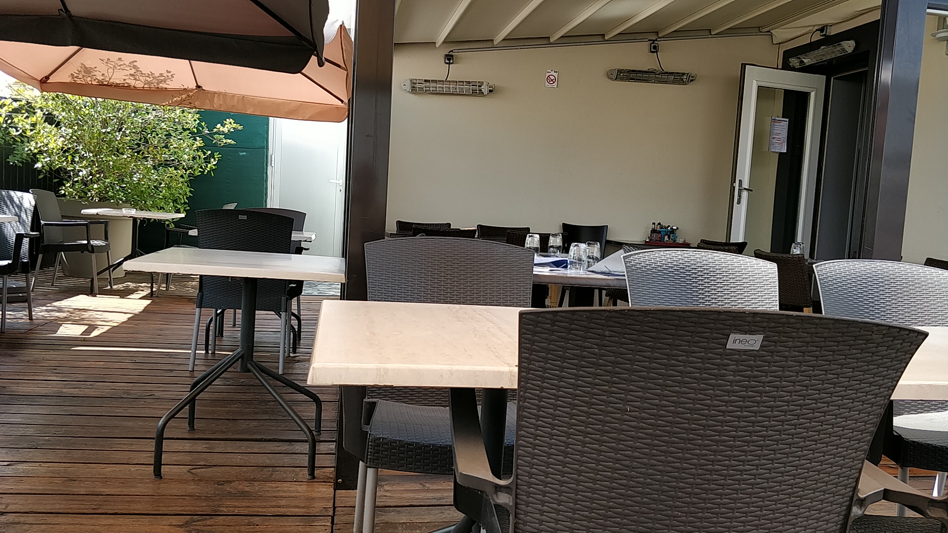 Belle terrasse ombragée et surtout peu ou pas de guêpe...... tranquillité assurée.