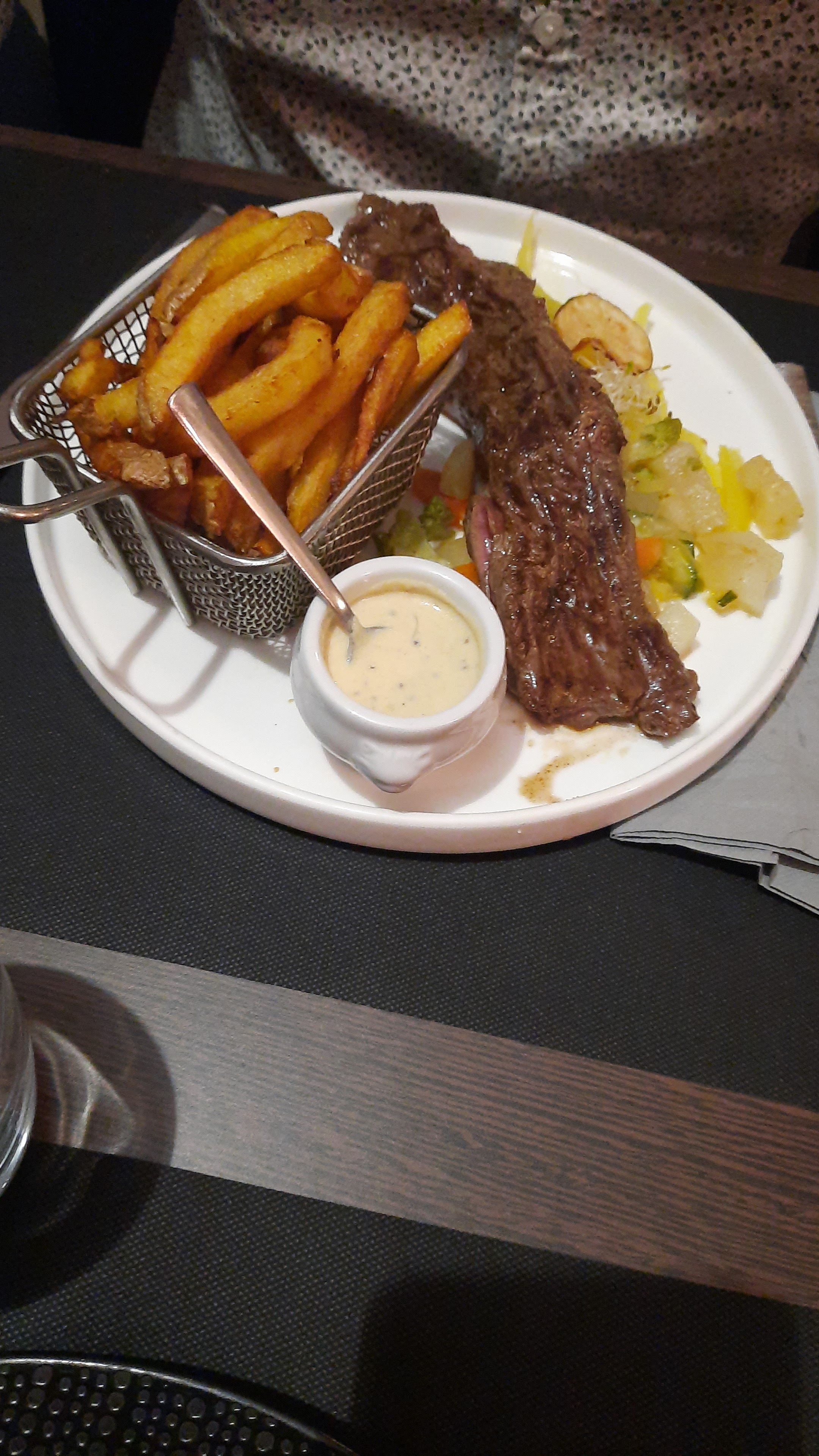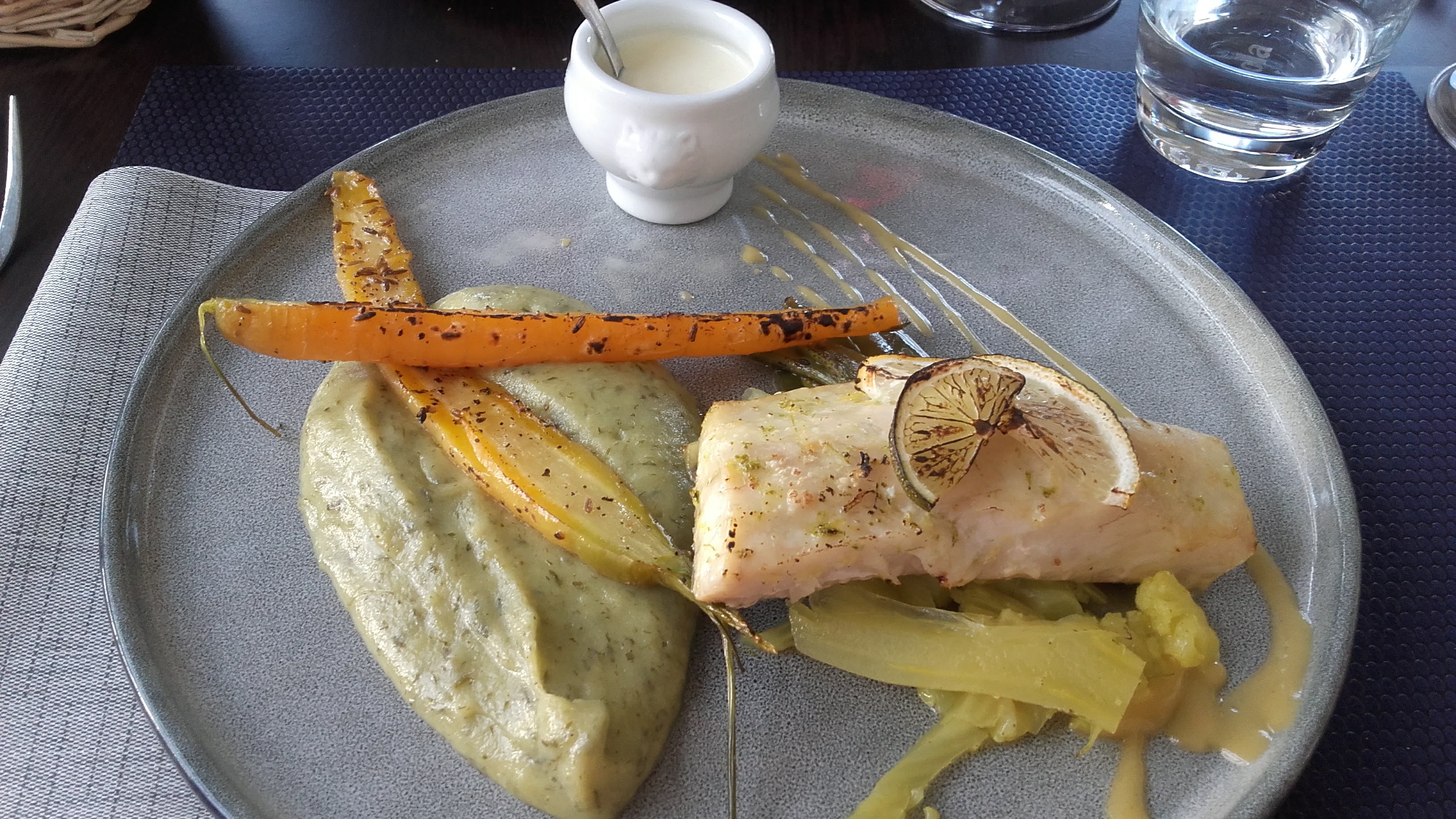 Cuisine avec des produits frais mais un peu trop simples pour le menu pris ...purée de pommes de terre maison,fenouil et carottes poelees avec magret...Je m attendais à des accompagnements un peu plus originaux pour le prix...Sinon accueil serviable.