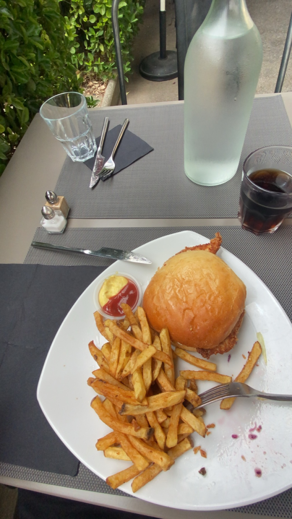 Burger équilibre, boisson non alcoolisées parfaite . Frite parfaite. On est venu avec deux bébé, leur installation n'est pas trop adapté mais c'est avec le sourire qu'ils ont réchauffé le lait de ma fille