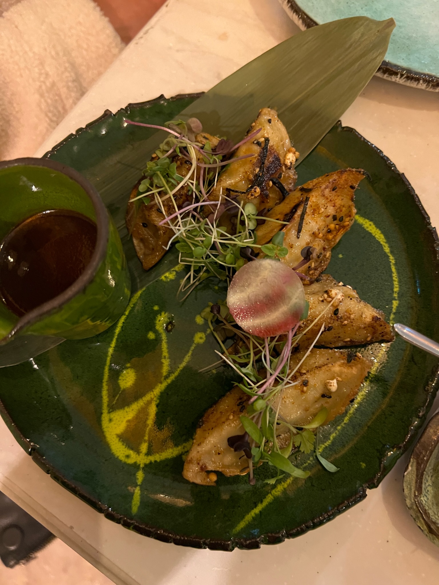 Excellente nourriture et service. Présentation étonnante pour toute la nourriture. Super sushi, gyoza, agneau et tataki. Tout le personnel était extrêmement gentil. La seule chose qui aurait pu être meilleure, c'est que la tempura de crevettes contienne moins de mayonnaise. Je pense qu'il y avait un peu trop de mayonnaise sur tout le plat avec de la mayonnaise mais surtout la tempura de crevettes. Je pense que c'est un excellent restaurant mais pas exceptionnel, et plus fusion que japonais, alors ne vous attendez pas à une cuisine japonaise authentique car c'est une excellente cuisine fusion mais pas japonaise.