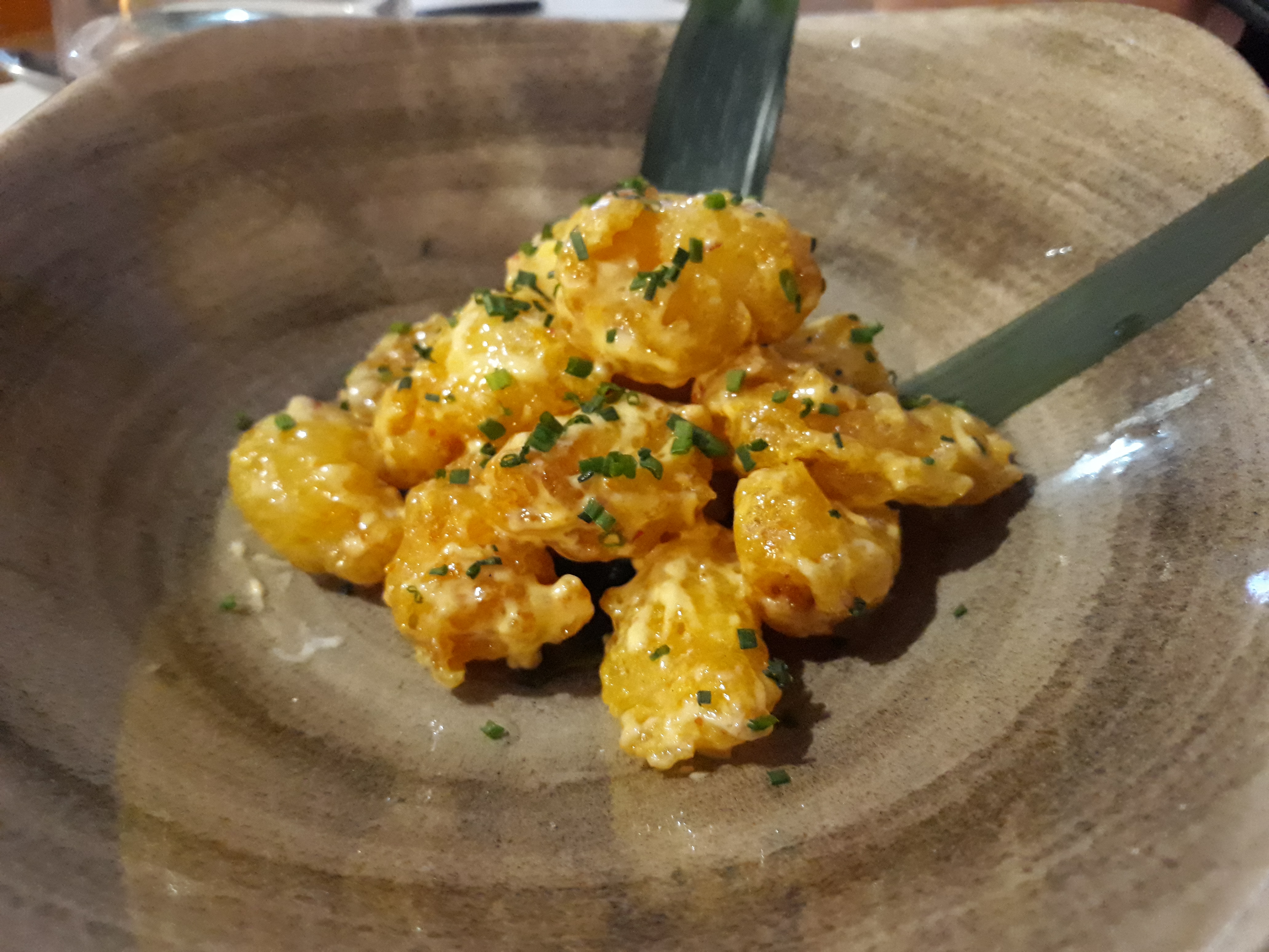 Il faut essayer le cocktail Cocopandan !!! C'est étonnant. Et évitez totalement le dessert à l'ananas (assez décevant après le dîner incroyable) Les serveurs sont très sympathiques, bons avec les recommandations. Le service était bon. C'est cher. Alors faites attention à ça. Faites vos réservations ou allez-y tôt et ayez la chance d'avoir une table.