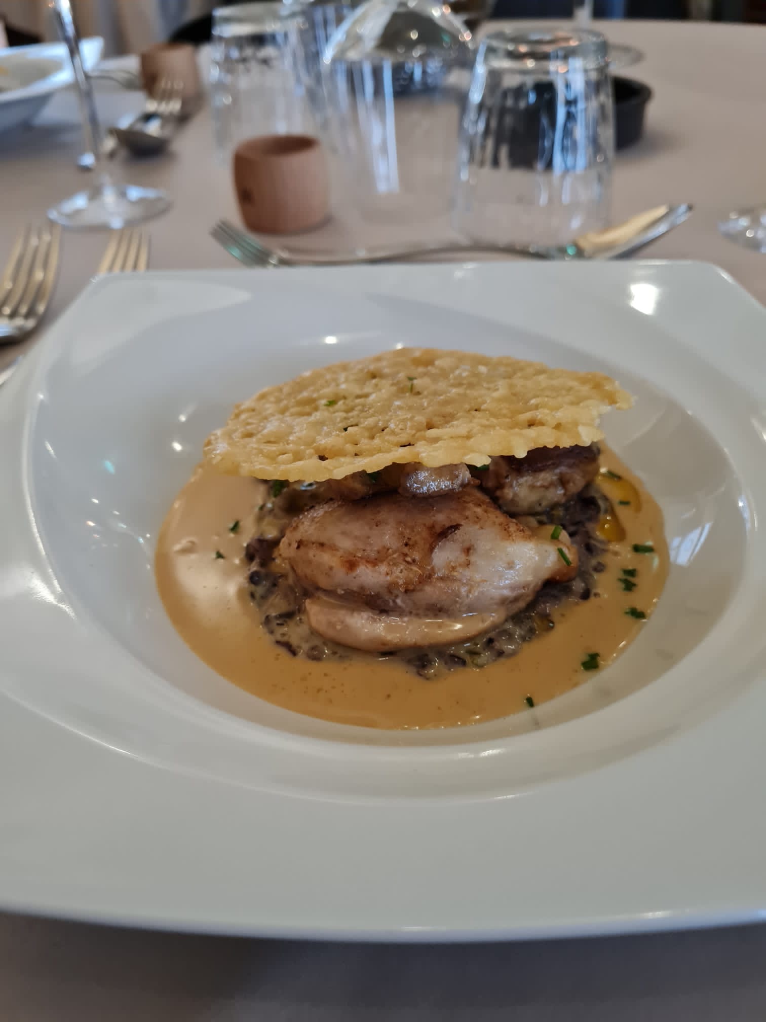 tout était parfait,les nappe tissu chic,déco super et les assiettes un délice jusque au petit digestif au salon top,et n oublions pas le service idéal personne très pro bravo