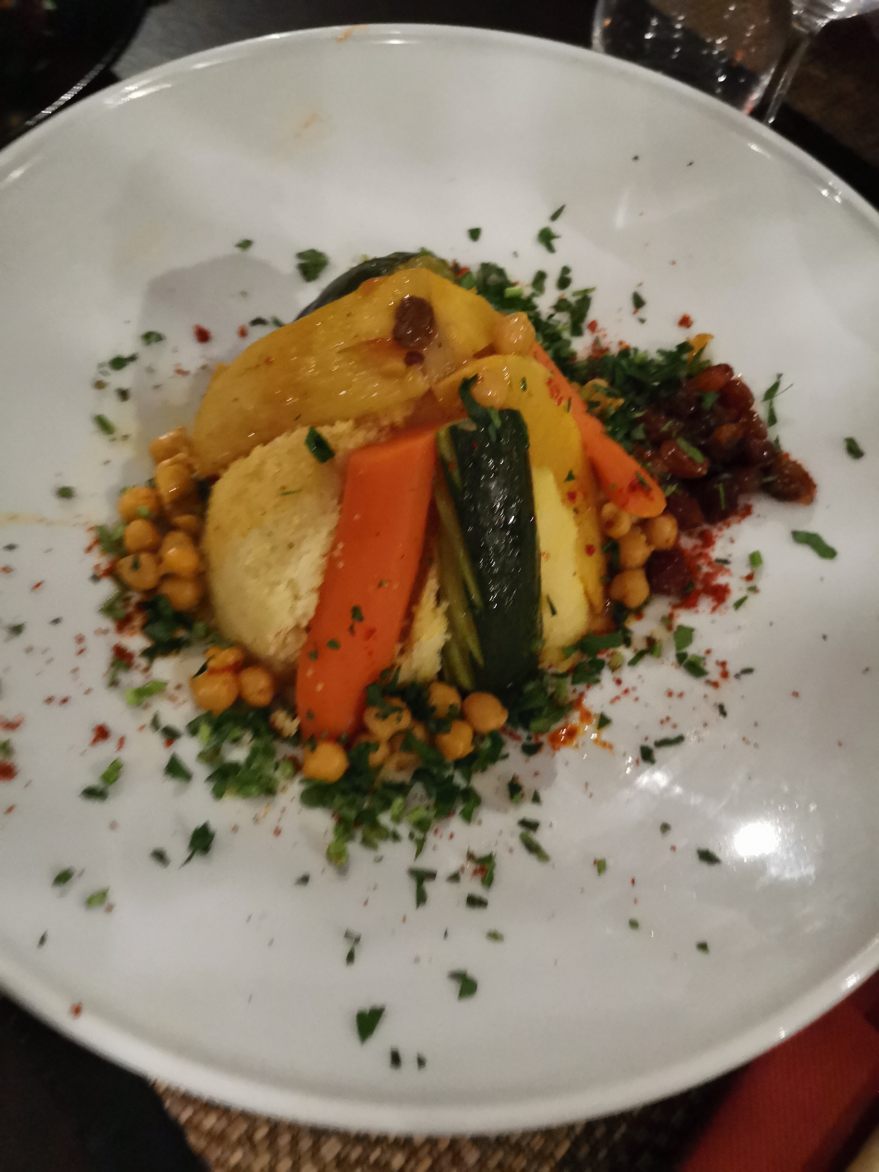 Un voyage au Maroc à travers un couscous. Plat raffiné, délicieux , conséquent et bien présenté. Bravo! Merci