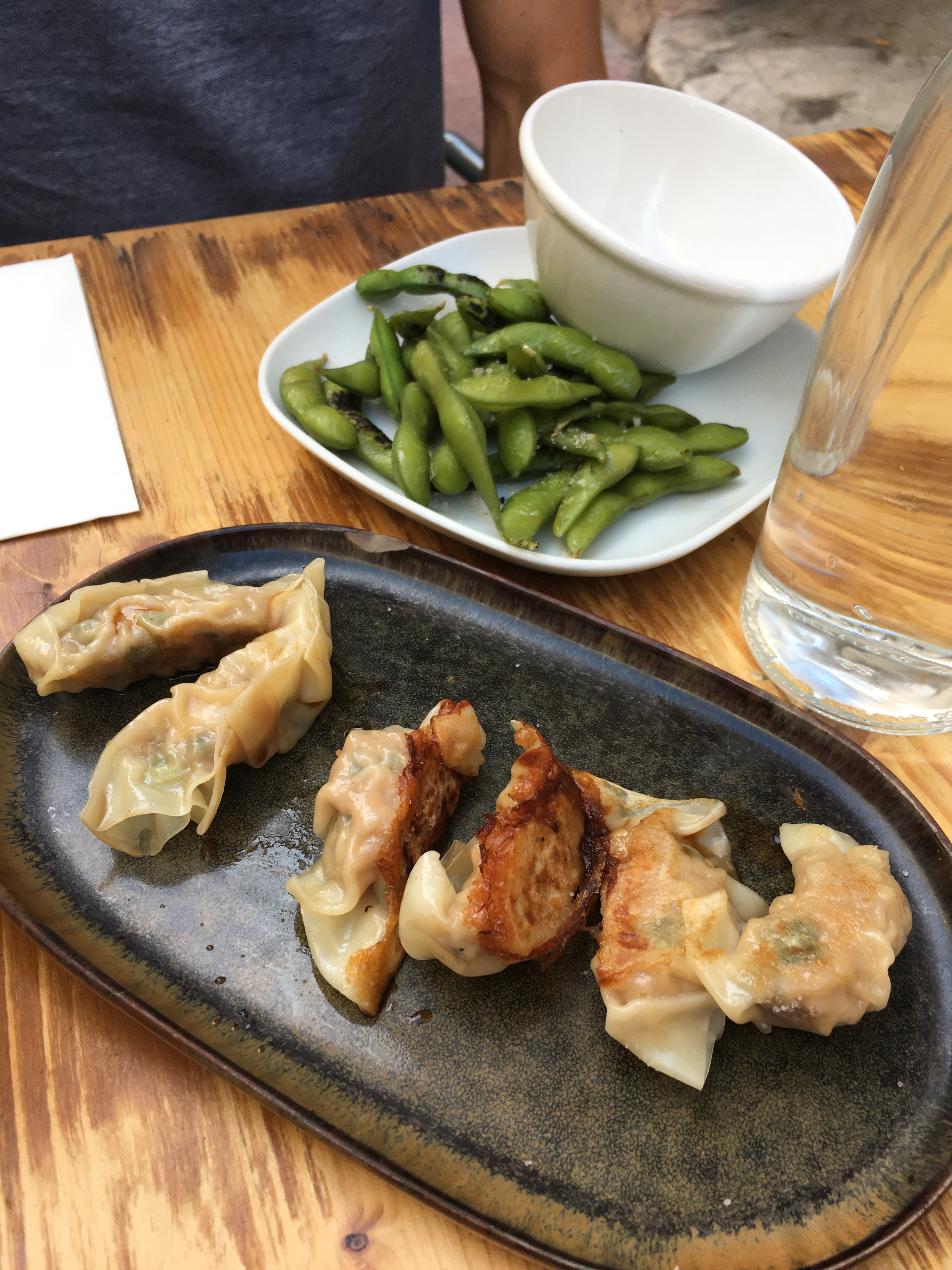 Déroutée par le charme d'un serveur, j'ai oublié de faire un retour sur ce que j'ai consommé. Les endamamés étaient délicieux, les giozas à tomber parterre. J'ai mangé mon premier ramen et le porc était incroyablement fondant, les champignons sucrés comme il fallait et les nouilles encore un peu fermes 👌🏼 Le bouillon était un peu trop salé à mon goût. Le cadre est chaleureux, il y a de la bonne musique au bon volume sonore, les cuisiniers et les serveurs sont de bonne humeur, je recommande 😊