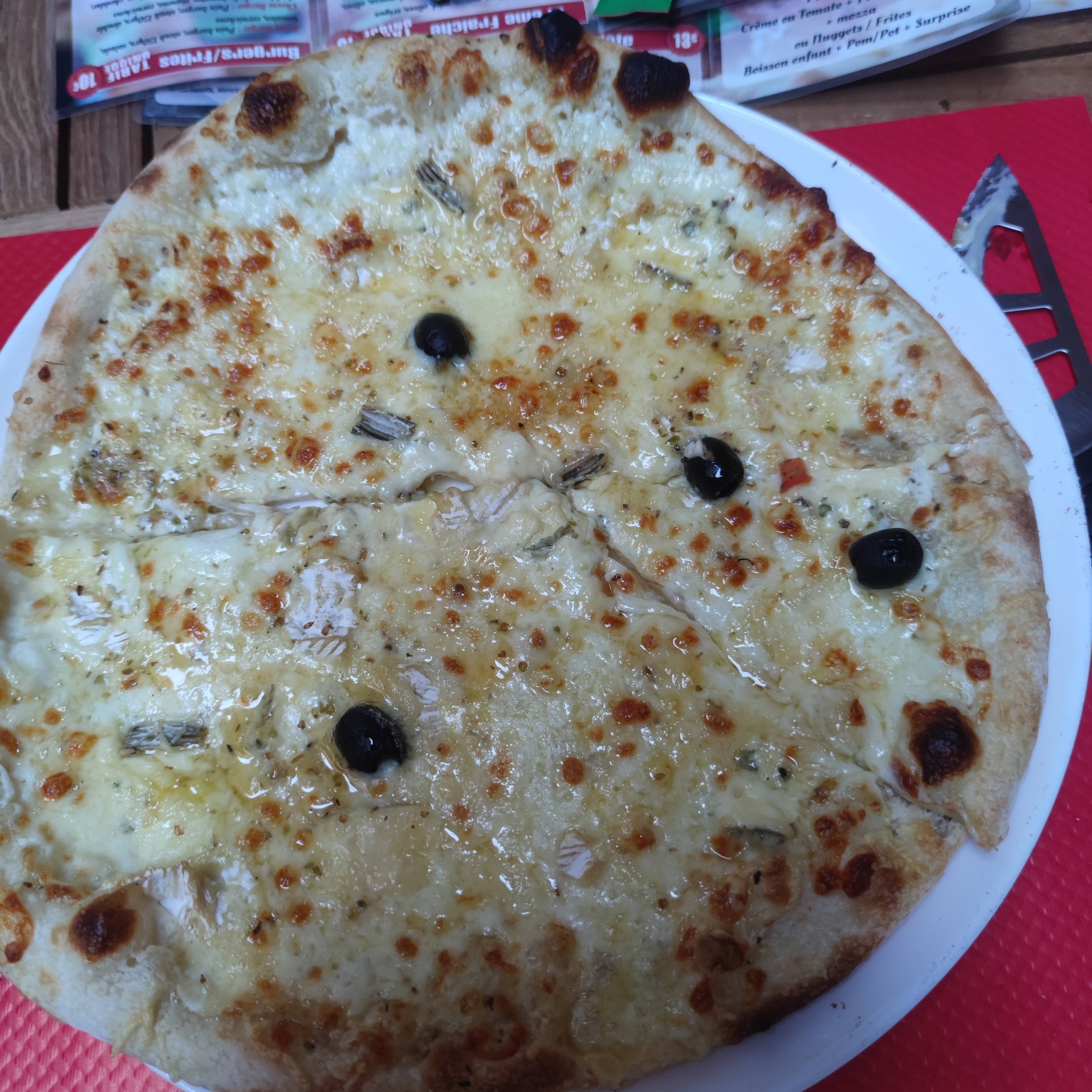 Super pizza et très très bonne. La quatre fromages hyper bonne la pâte est fine comme je les aime. Un service rapide et un serveur au top.