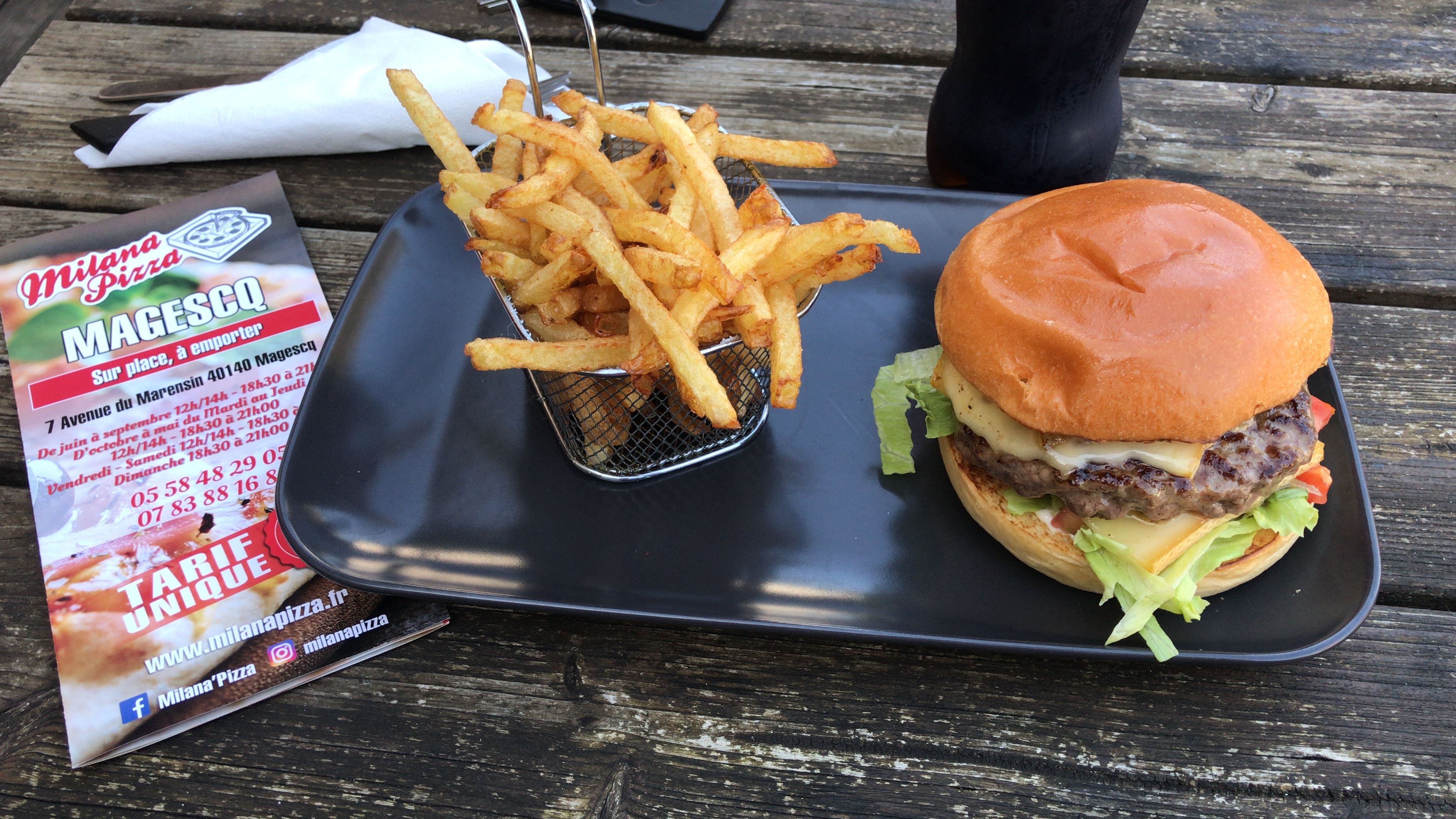 Très bon Burger raclette sur la route retour du Pays Basque… la grosse différence les frites Maison croustillantes et moelleuses à la fois. On sent la passion dans le plat de ce jeune homme… je recommande vivement, une belle trouvaille pour moi et pour un prix vraiment abordable ! Je m’y arrêterai une nouvelle fois à l’occasion !
