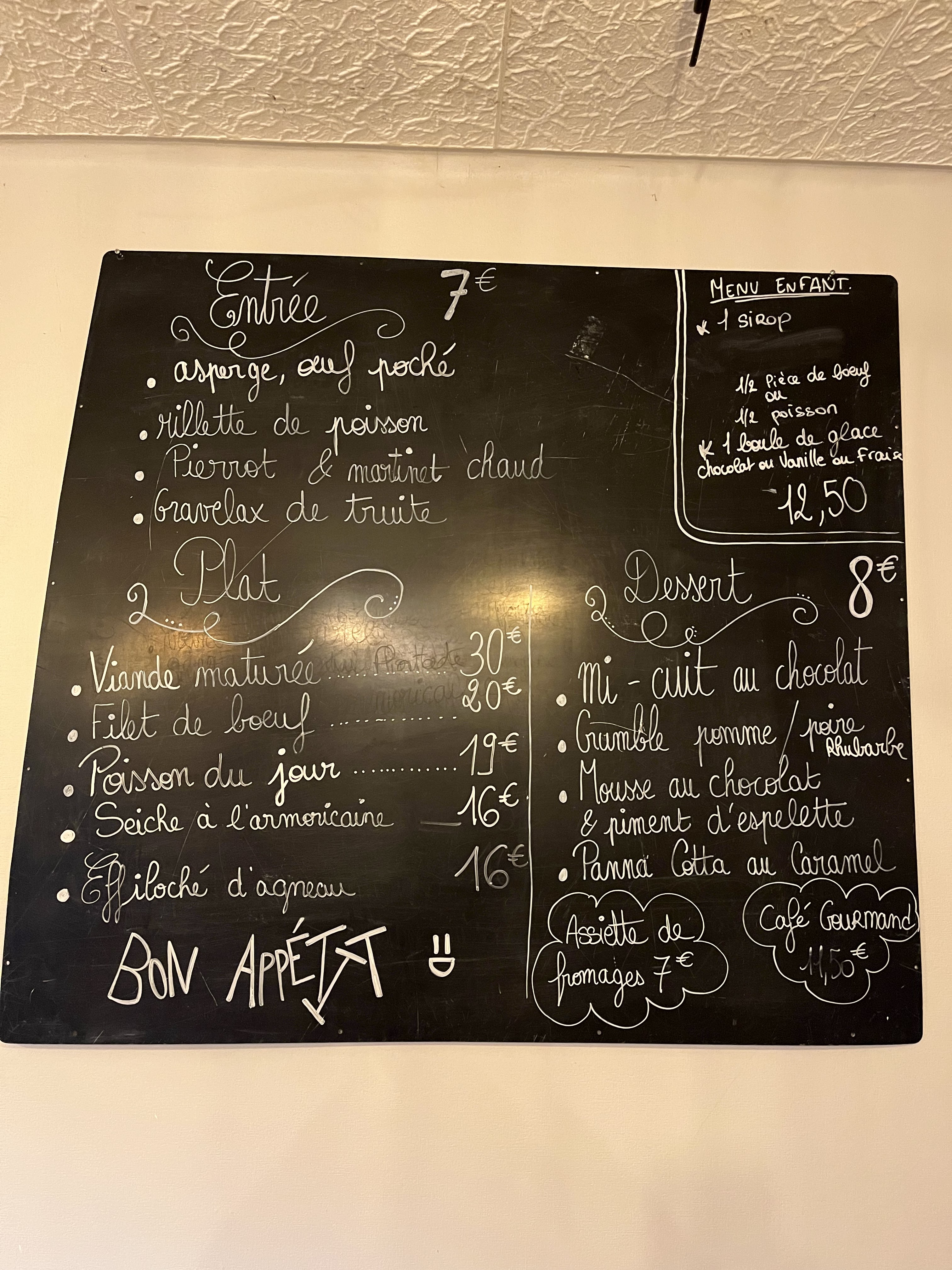 Une très bonne adresse. Un accueil chaleureux, à l’écoute sans être « collant ». Une carte réduite (et c’est bien sûr dans le sens positif que je le précise) accompagnée d’une carte listant la provenance des principaux produits travaillés ( et ces produits sont bien sûr régionaux). Les plats sont travaillés et plein de saveur. Le rapport qualité prix est très bon ( entrée plat dessert avec une boisson) pour 41€ / personne.