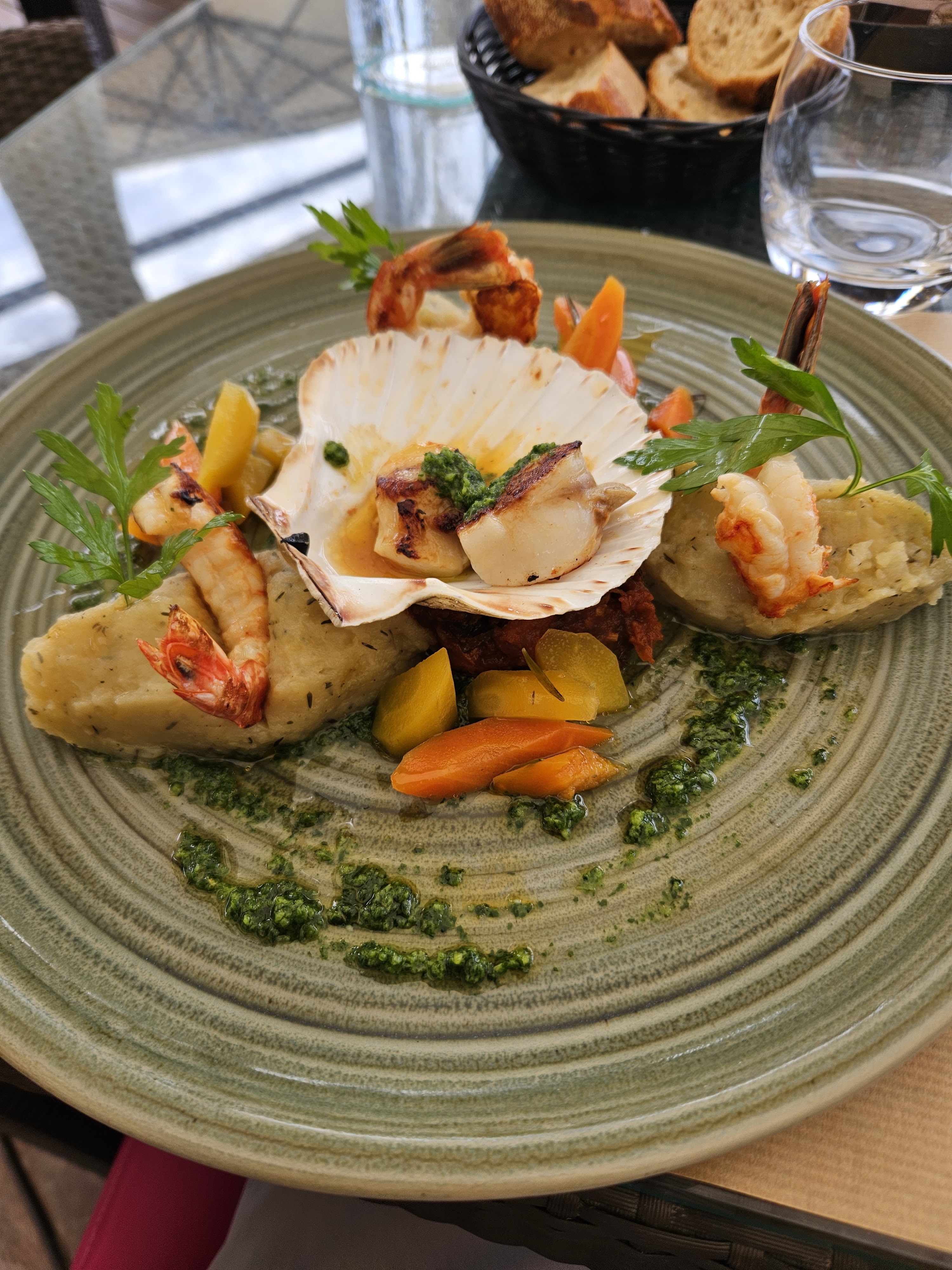 Juste parfait. Cadre magnifique en bord de mer, serveurs agréables et souriants, assiettes plus que copieuses et surtout délicieuses. Je recommande a 100%