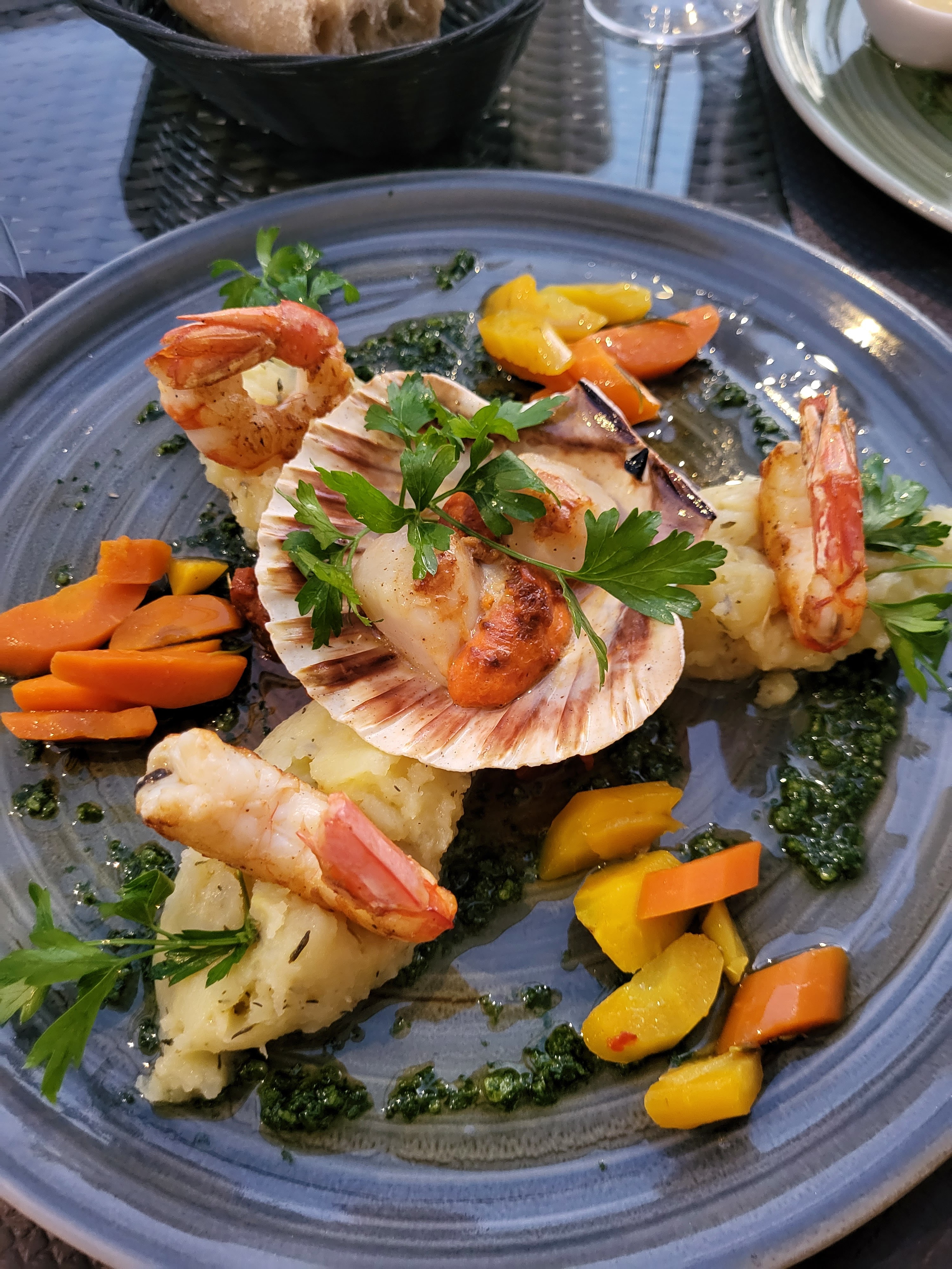 Superbe cadre, la brise de la mer, un très bon repas copieux, un choix de cocktails délicieux et des desserts gourmands. Un accueil et service exceptionnels. Bon rapport qualité prix.