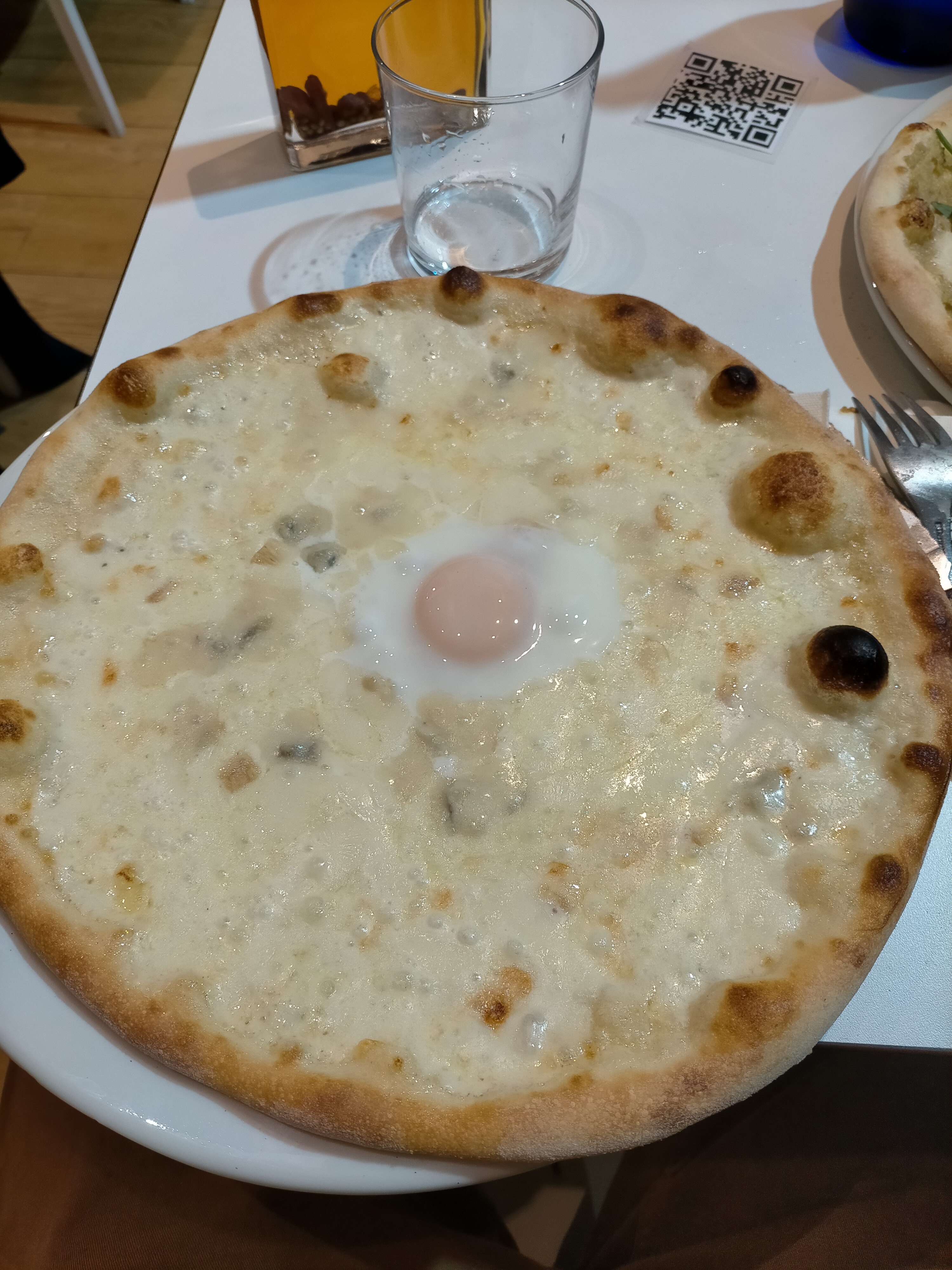 J'ai vraiment apprécié la pizza, légèrement différente de la norme et pourtant assez familière. La serveuse a fait de son mieux pour nous trouver une table... dans le restaurant de l'autre côté de la rue ! J'y ai passé un très bon moment