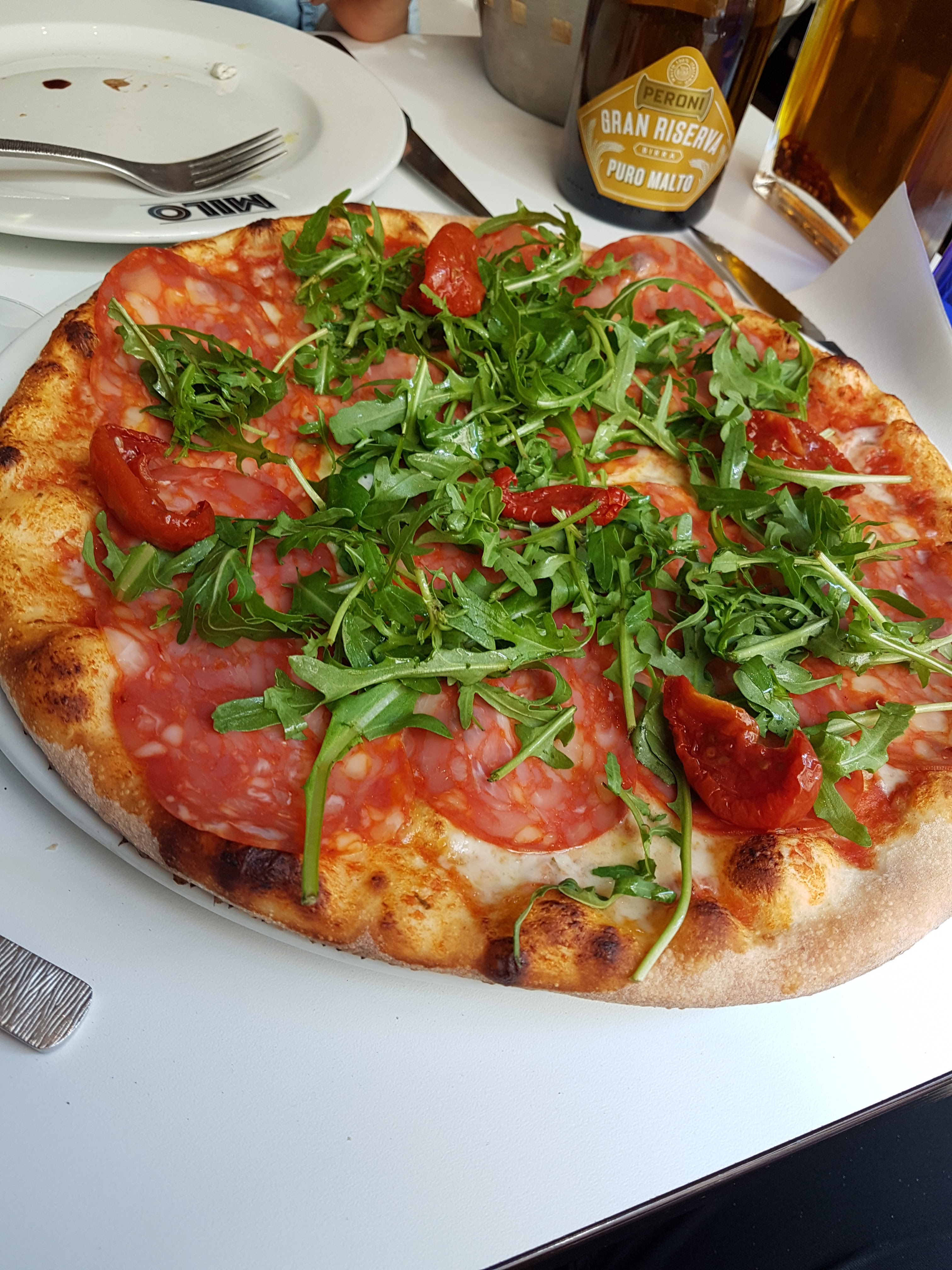 Accueilli par de vrais italiens à l'accent charmant (enfin, personnellement j'adore cet accent), le restaurant est plutôt chic et classe (dans la décoration comme dans la vaisselle proposée). Pour ma part l'attente a été un peu longue, comparée à d'autres restaurants (environ 30min pour avoir ma pizza) mais il faut dire que nous étions un samedi en pleine heure de pointe, ceci expliquant cela. La serveuse s'est d'ailleurs excusée de ce retard, s'en rendant compte par elle-même sans que nous ne fassions aucune remarque Les pizzas sont très bonnes et en comparatif de pizzerias situées non loin du Milo, pour 2€ de plus en moyenne, la qualité globale est incomparable. Ceci étant dit, cela reste des pizzas de cuisine 'intermédiaire, mais le restaurant ne se vante pas d'être gastronomique. A refaire pour une bonne pizza dans le coin, et un moment plaisant