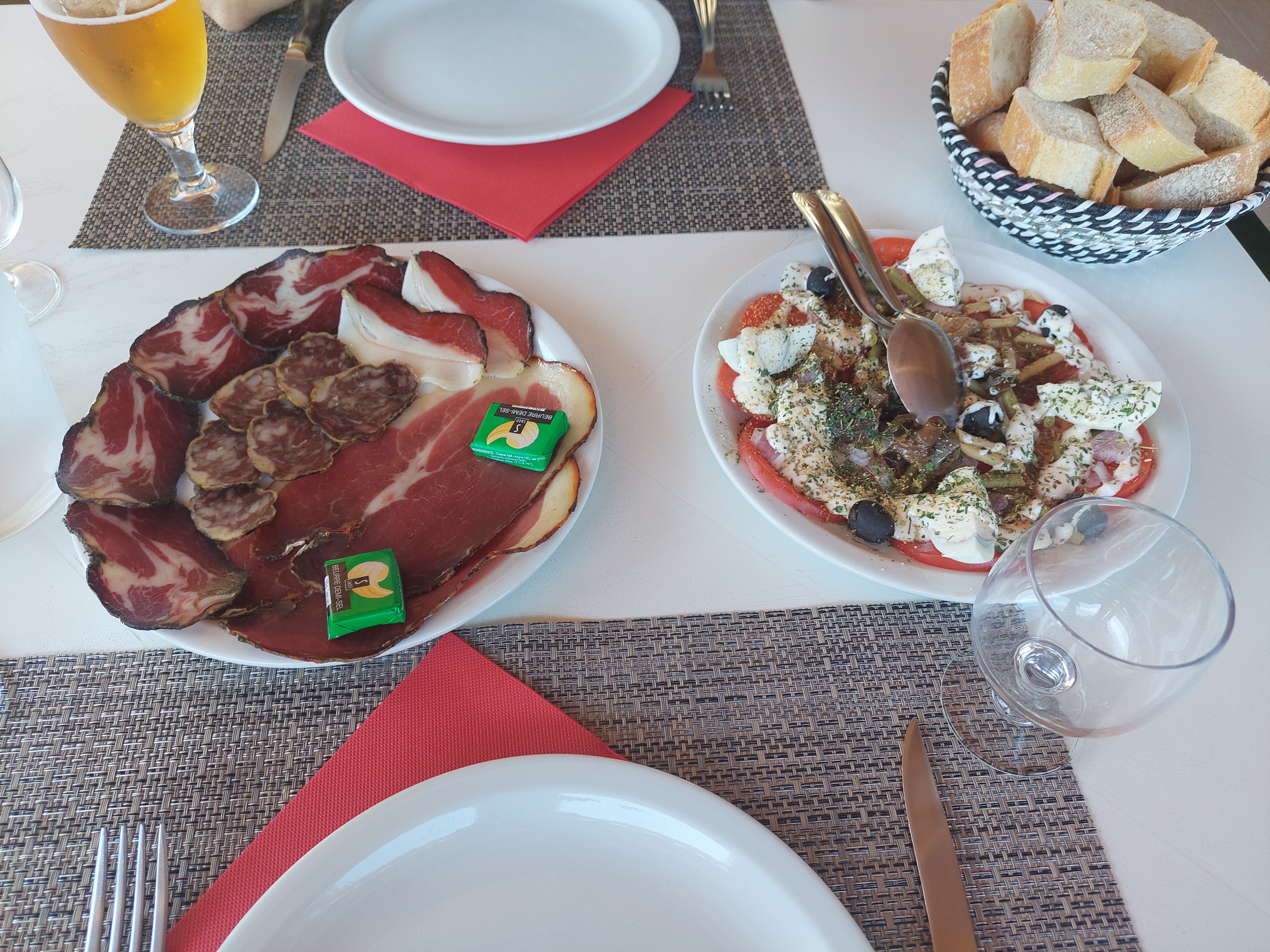 Petite escale dans les bassines improvisée, nous avons donc fait une petite halte dans l'auberge de mimi Costa pour manger un petit truc, la dame de l'auberge a mis en avant que les produits servis émanait de sa production, il nous a été servi une tomate assaisonnée avec des herbes + une assiette de charcuterie de sa productions ( bonne mais il faut aimer le gras..), une petite assiette de fromage avec 2 fromages différents ( bons) + 2 beignets au brocciu + 2 café + 1 bière pression et une orezza = addition très salée 73 € !!!! , je n'ai pas apprécié le faites moi confiance en guise de prix !! Je laisse les touristes en juger par eux même !!