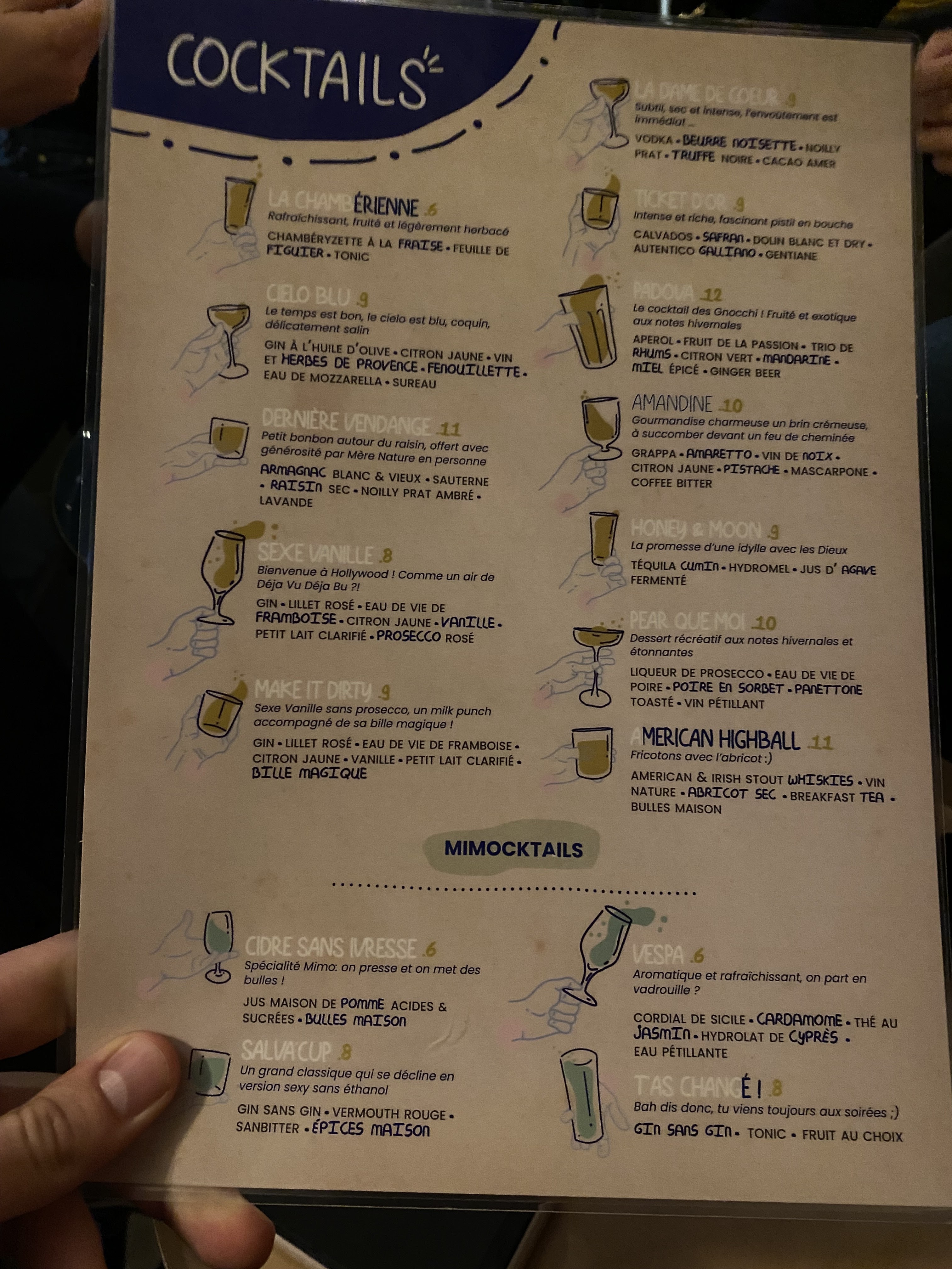 Superbe carte de cocktails Cuisine italienne de qualité Je recommande sans hésiter
