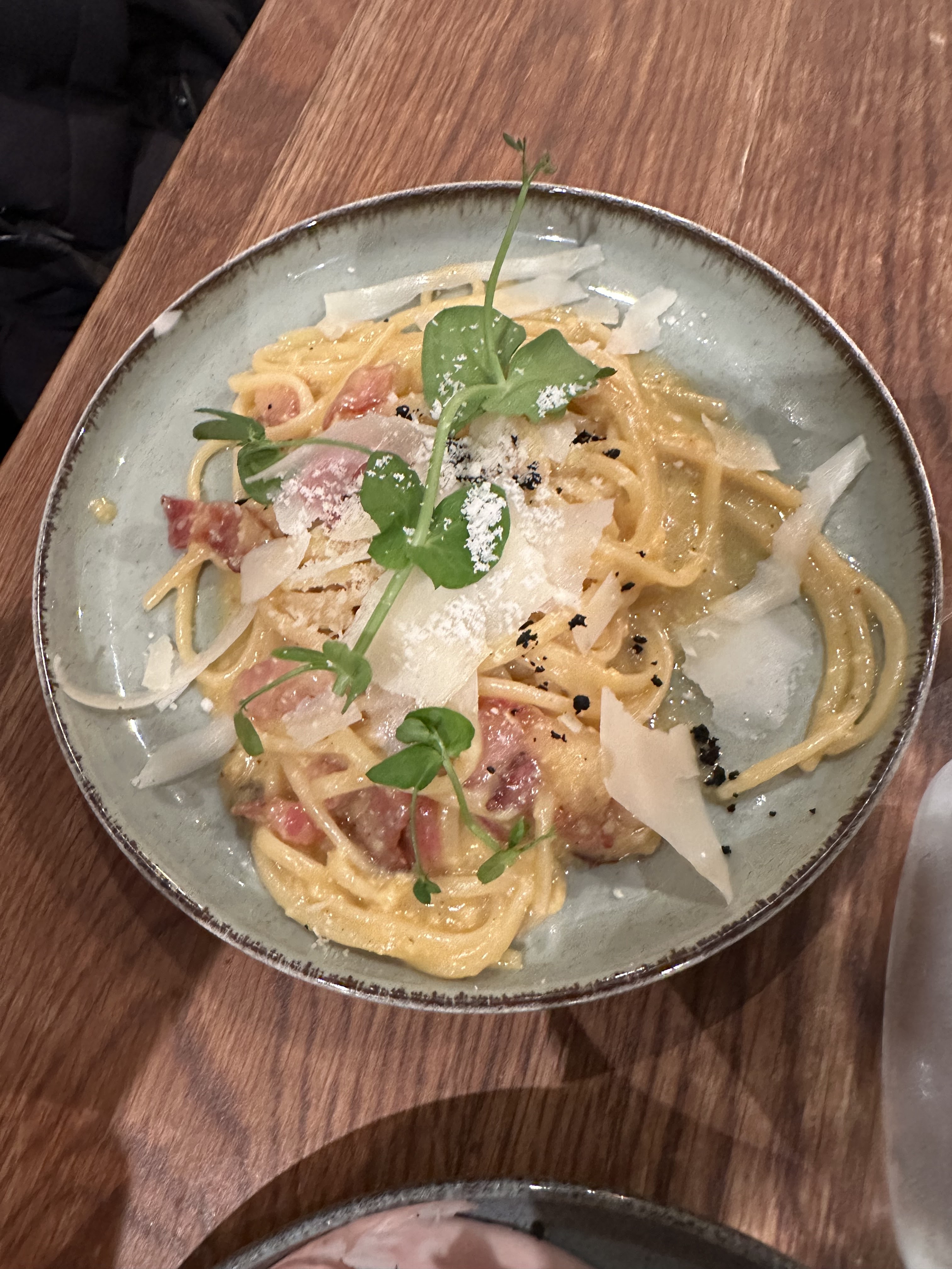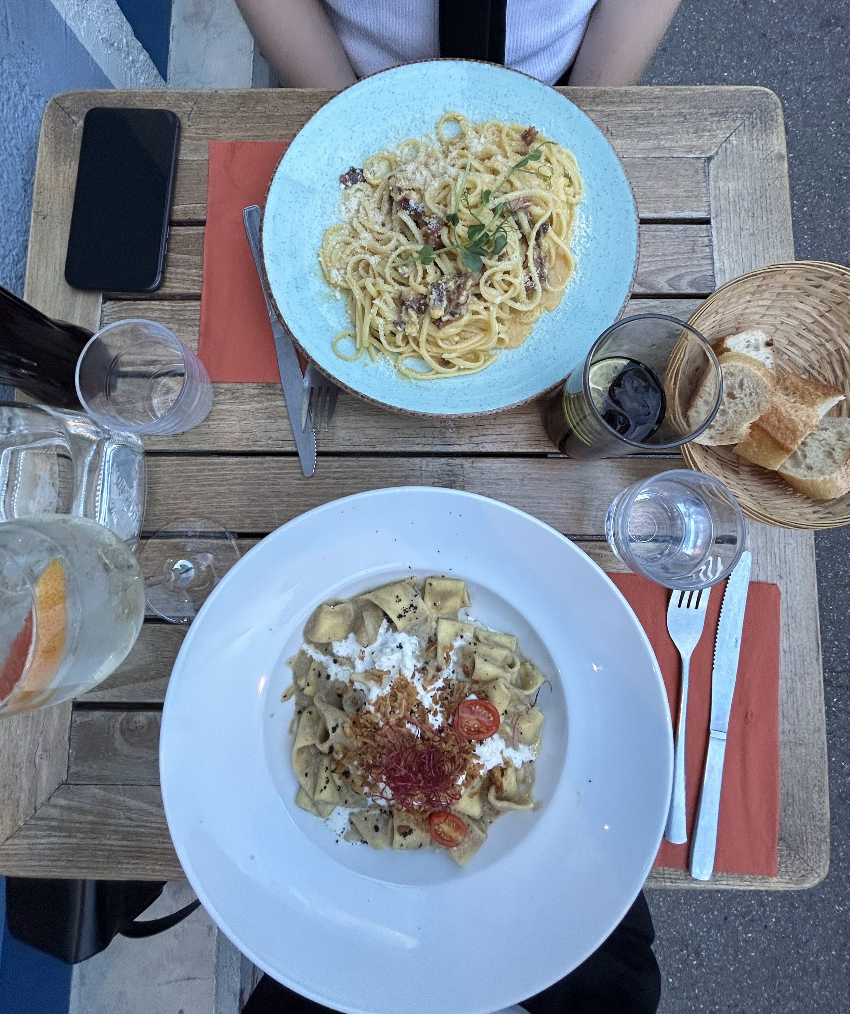 Juste un mot excellent! Service irréprochable. Portions généreuses, dont l'option petit pour partager et grand sont disponibles En entrée : Les Gnocchis frits truffé, sont parfaitement maîtrisés. La vraie recette de carbonara est excellente et les tagliatelles au thon mi-cuit, dont l'assaisonnement est parfait 👌 J'espère pouvoir revenir un jour sur Lyon, pour redeguster la carte, et les desserts ! (plus de place pour y goûter 😅) En une phrase : Restez comme vous êtes !