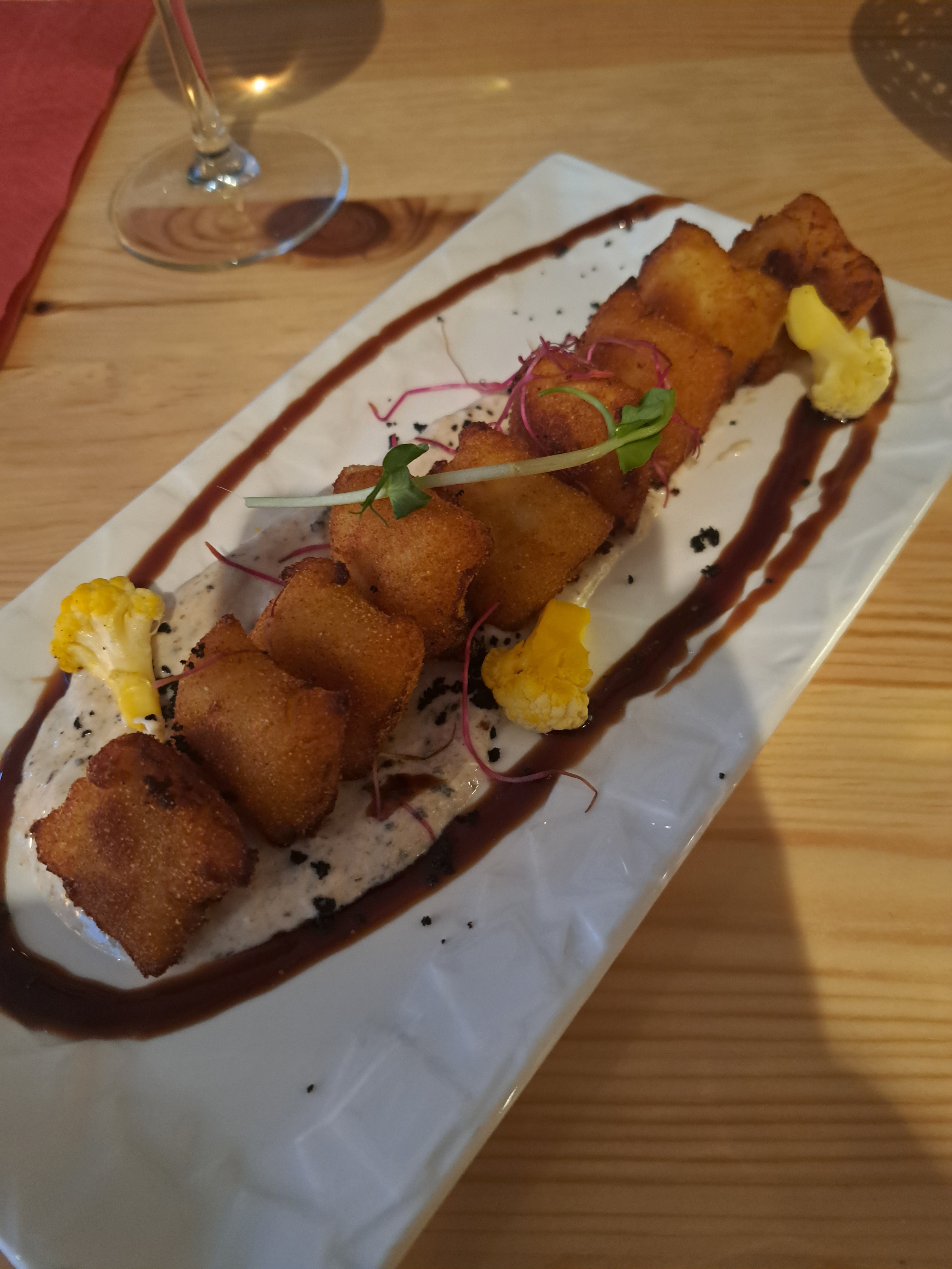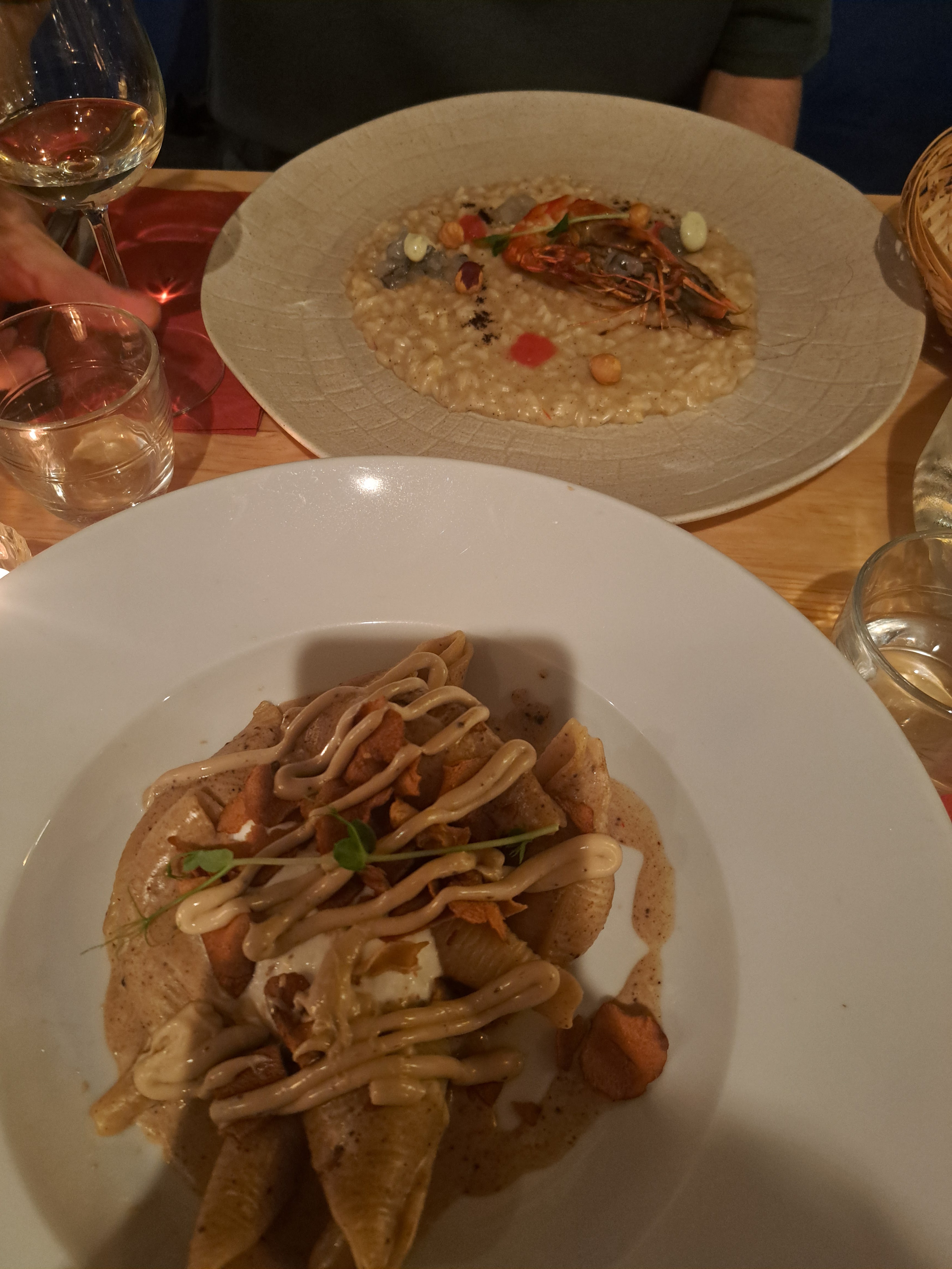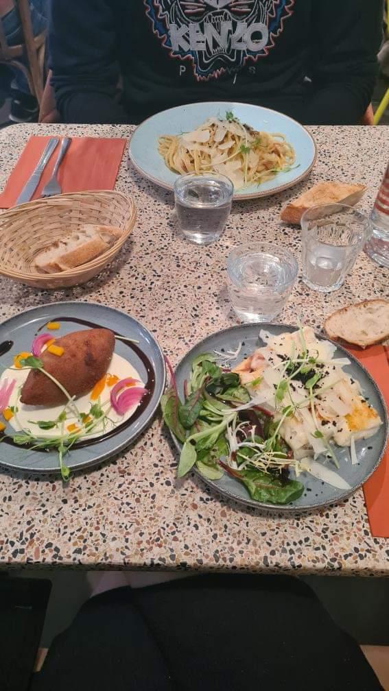 Un peu surprise de la notation globale, les assiettes sont jolies mais le goût n’y est pas. On a tous salé nos plats qui manquaient de goût car vous avez surtout beaucoup de pâte et très peu de seiche, beaucoup de riz dans l’arancino, l’asperge on ne la sent pas, les gnocchis à la truffe ne sentent pas assez la truffe. Bref ça devient très cher pour ce que vous avez dans l’assiette. Décevant Par contre accueil au top et ambiance sympa.