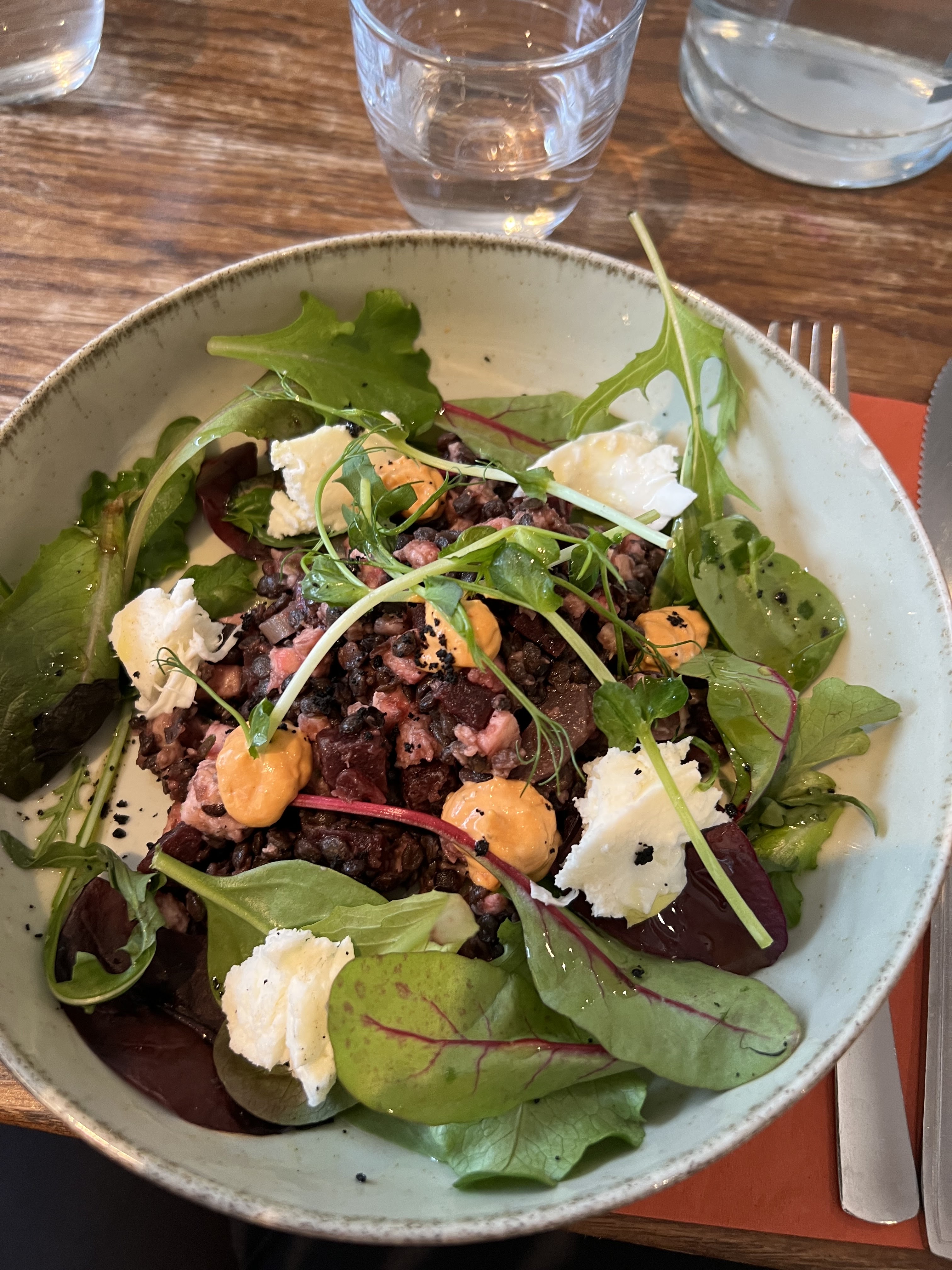 Charlotte était absente mais son équipe a fait le job 👍🏻. En particulier, sa foccacia toastée au tartare de betteraves et burrata à la truffe m'a transportée.
