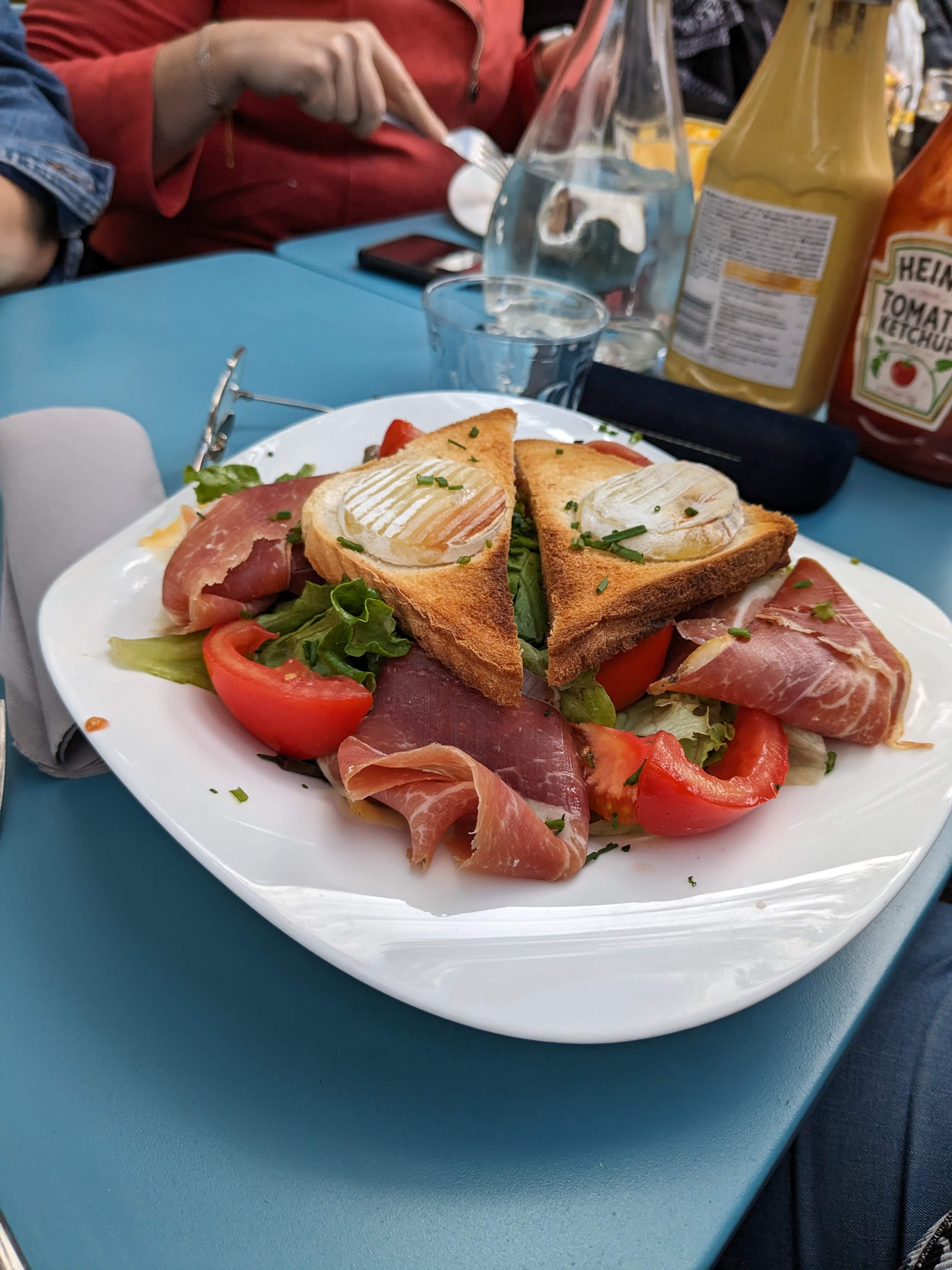 Gaufre très bonne. Service agréable. Prix correct. Plancher charcuterie et fromage : de qualité supermarché, avec la peau… Quantité suffisante pour deux.