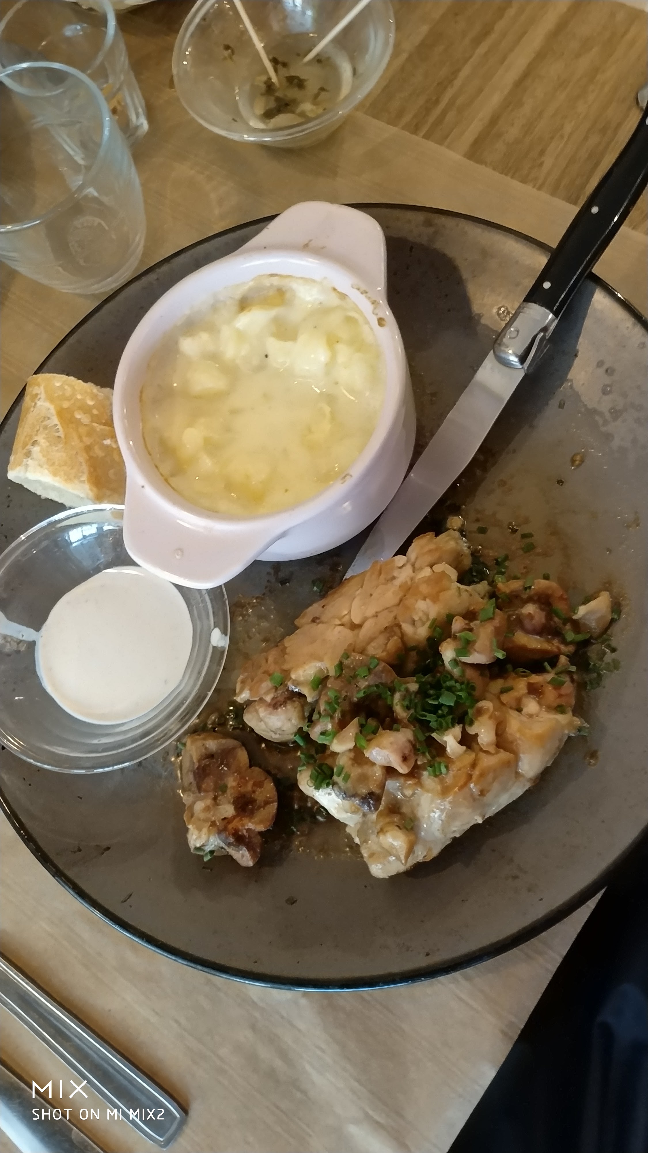 Délicieux repas Les rognons un vrai plaisir pour le palet. Le fondant au chocolat avec le milieu coulant caramel beurre salé c'était Ouah succulent.