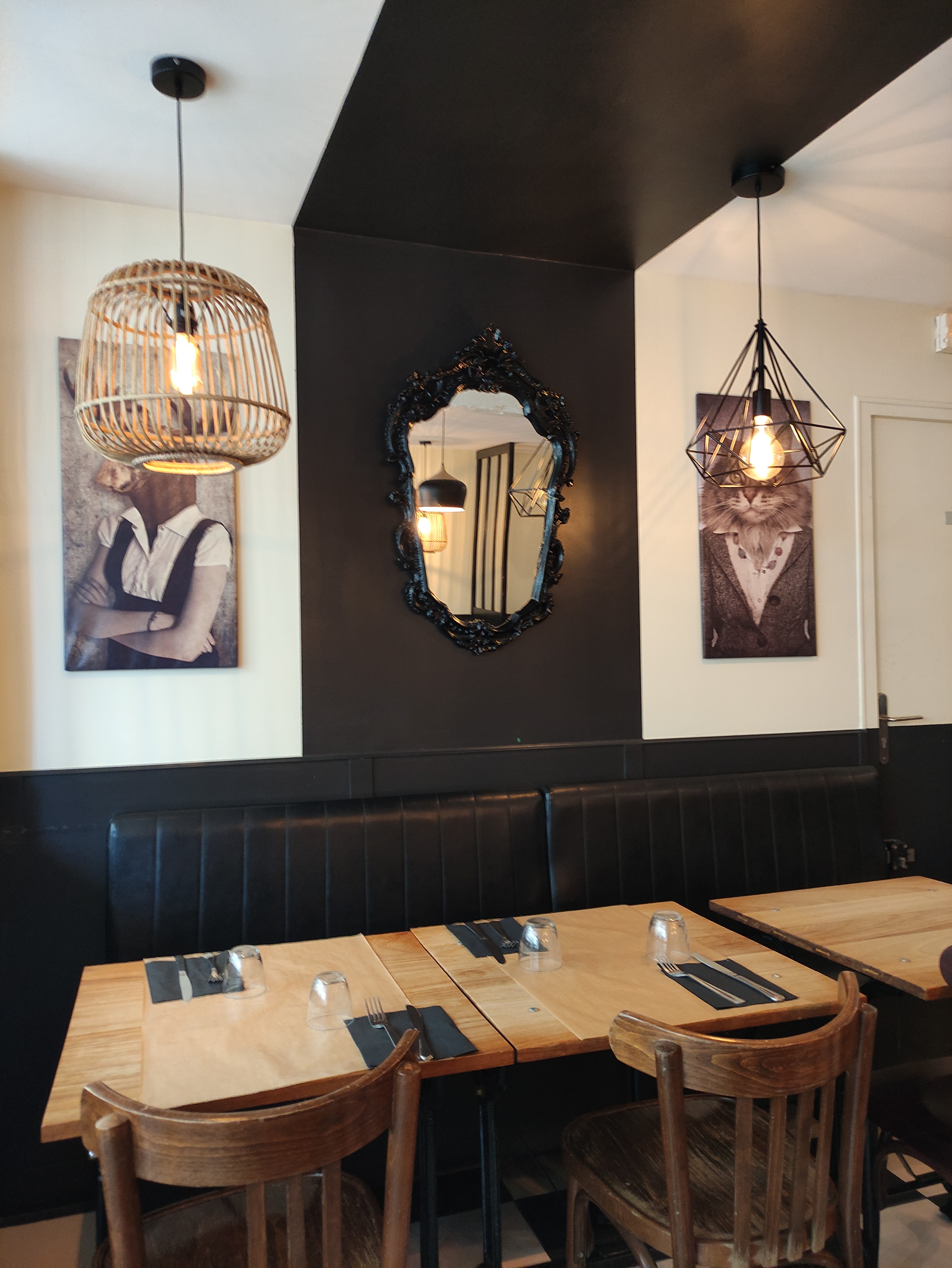 Bonne petite soirée dans ce petit restaurant atypique. Vous pouvez choisir dans le menu divers plat très savoureux. Pour ma part c'était oeuf mollet en cocotte avec son accompagnement de salade à l'encre de seiche. Très bonne entrée avec beaucoup de coup bien assaisonnée Le plat un hamburger ou vous pouvez choisir entre différents aliments à mettre à l'intérieur. La cuisson était comme je l'avais demandé. Pour le dessert j'ai pris un thé gourmand qui était copieux. Seul chose que je n'ai pas mangé la mousse au chocolat noir ,elle était trop travaillée. Pour en venir au restaurant il est situé dans une rue piéton en centre ville de dreux. Je donnerais un conseil au propriétaire de rafraîchir les peintures et de revoir les lampes qui ont été pour certaines changées pour des lampes en papiers. Pas top. Je remercie le cuisinier pour la réussites du plat. Et un serveur très convivial et à l'écoute. J'en ai eu pour 33 euros et j'ai très bien manger. Je recommande