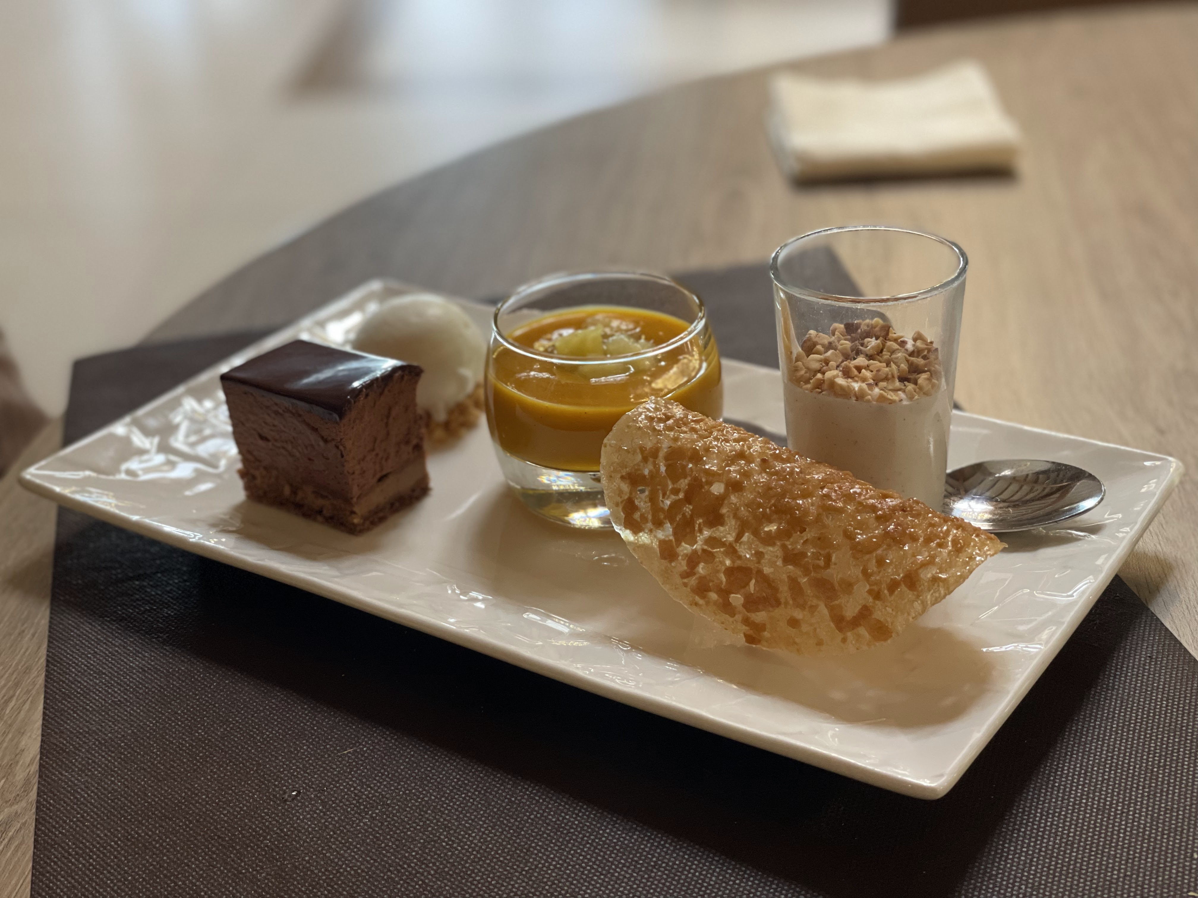 Un restaurant à faire ! Ne vous fiez pas aux prix annoncés. Ils semblent élevés mais si on y regarde de plus près, ils sont au même prix que ceux sur la côte. Mais ici des plats atypiques qui valent le détour. Sans parler de la farandole de desserts (il manque le petit café avec)! Personnel attentionné. Proche d'un gastronomique mais avec des tarifs accessibles. Les prix sont moins chers le midi. Je recommande vivement !
