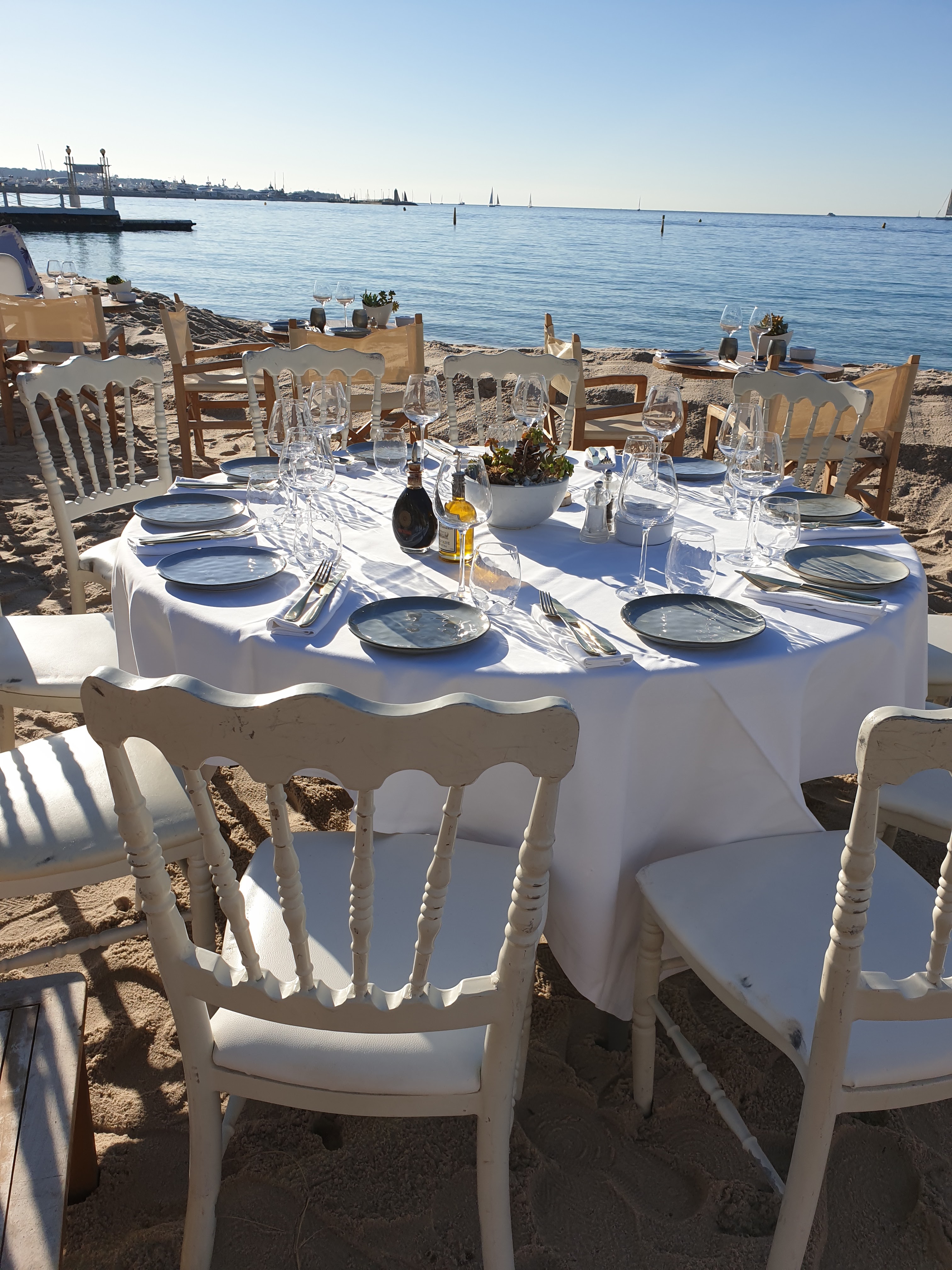 Repas romantique le soir les pieds dans le sable , face à la mer , tout y est ! La cuisine est raffinée et excellente, l'ambiance est sympa , le personnel aux petits soins . L'addition est peut être plus élevée qu'ailleurs ( en même temps on est sur la Croisette ) mais le prix est largement justifié. Je recommande vivement