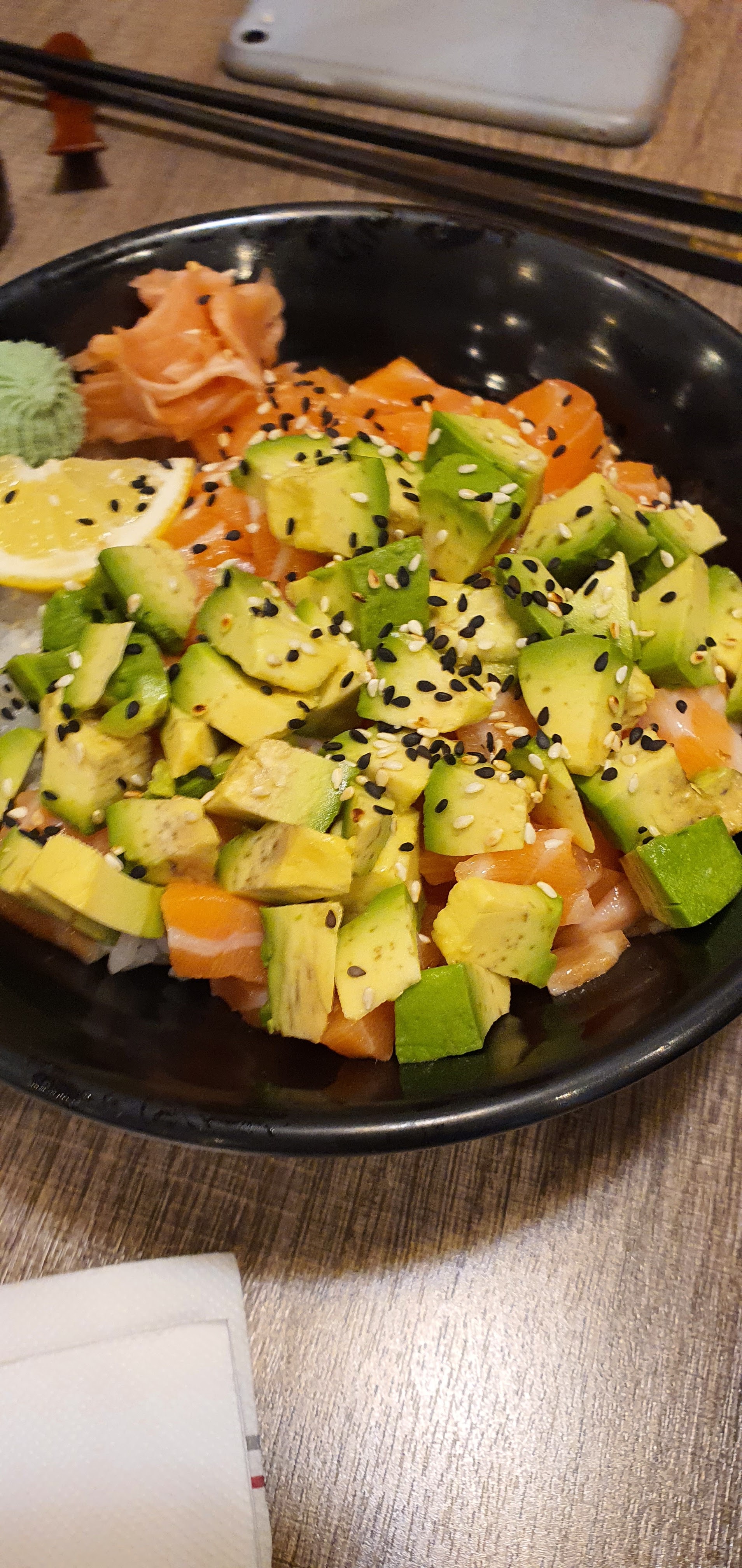 Commande faite par une application, et pas du tout déçu. Un peu sceptique par rapport aux avis, alors qu'au final on c'est régalé. Les sashimis bien épais, de très bonnes portions, bien assaisonné je recommanderais sans hésiter.