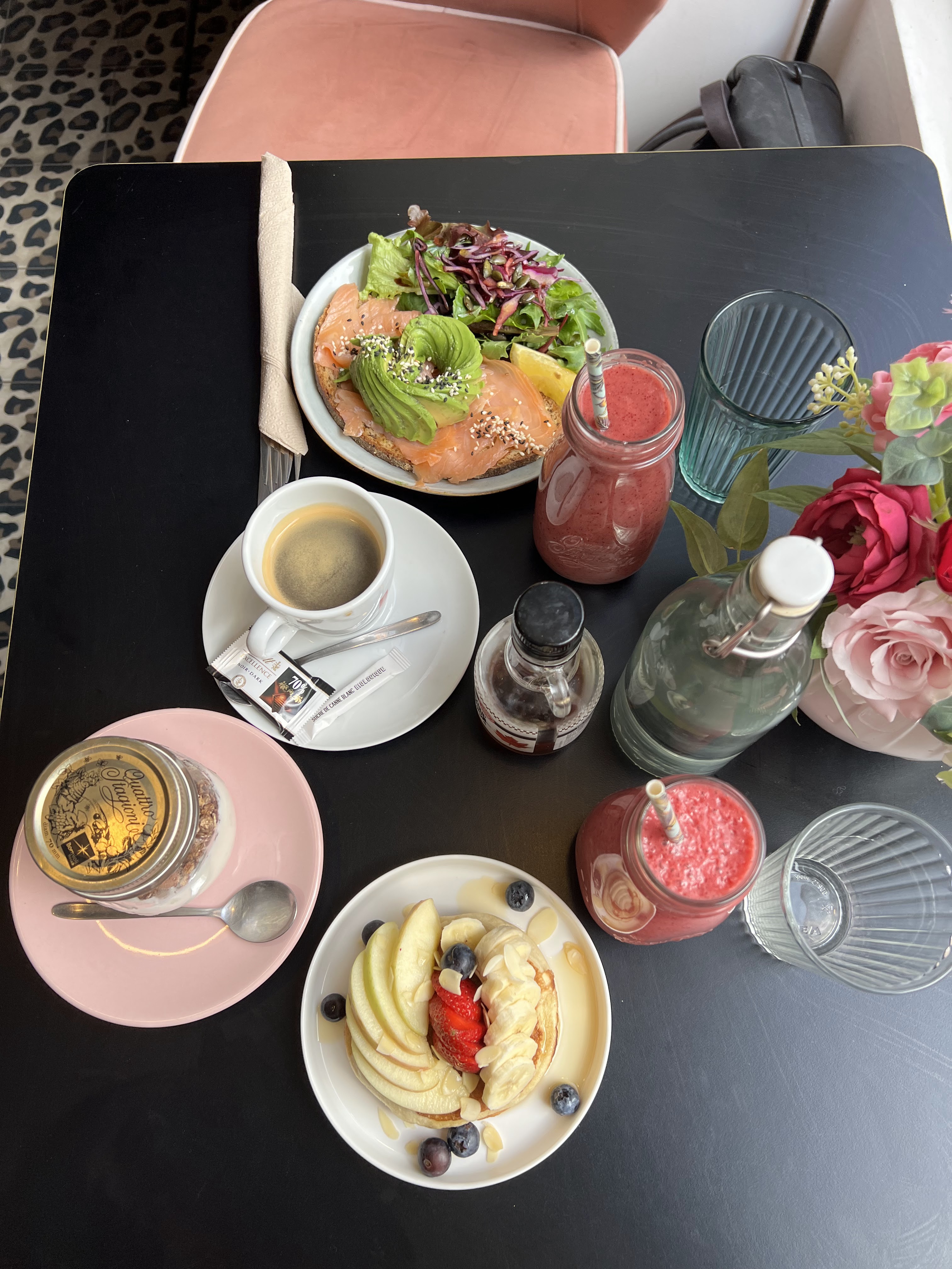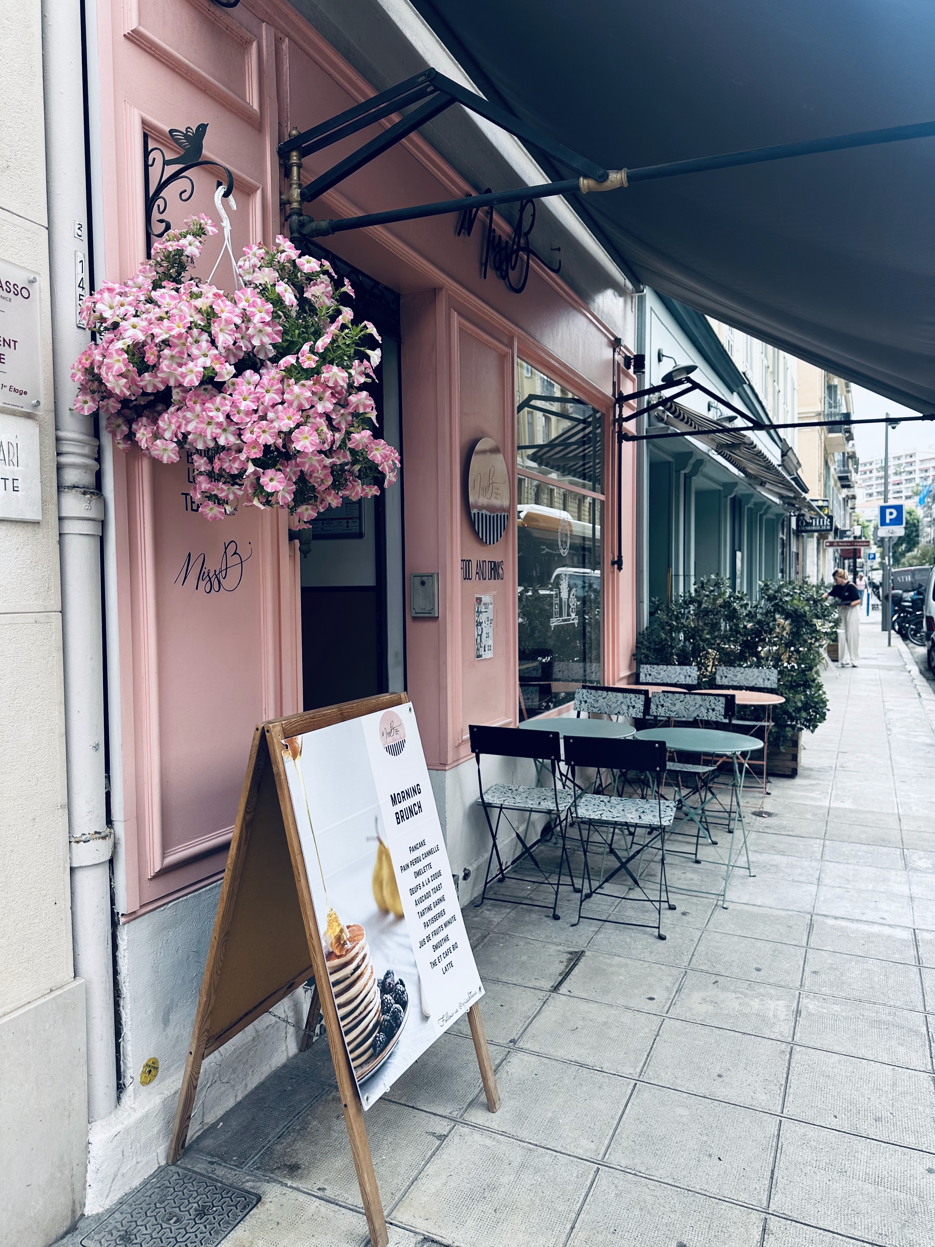 Si jamais vous êtes à Nice, n'hésitez pas à passer chez Miss B. Un joli petit endroit pour le petit-déjeuner, le brunch et le déjeuner avec toutes sortes de plats faits maison et de nombreuses options végétariennes et végétaliennes. Il existe diverses tartines de petit-déjeuner, quiches, bols, smoothies, yaourts, muesli, gâteaux, crêpes ou biscuits, pour ne citer que quelques exemples. Un très grand brunch avec encore plus de choix est également proposé le samedi. Nous avons choisi le toast avocat-saumon et le petit-déjeuner avec deux crêpes aux fruits, un yaourt au granola et un café. Plus deux smoothies fruités et frais. La nourriture et les boissons étaient vraiment délicieuses, fraîchement préparées, joliment présentées et de très bon goût, le tout à un prix vraiment raisonnable. Le service était également très gentil et arrangeant. Nous avons passé un moment très agréable dans une ambiance géniale et reviendrons à tout moment.