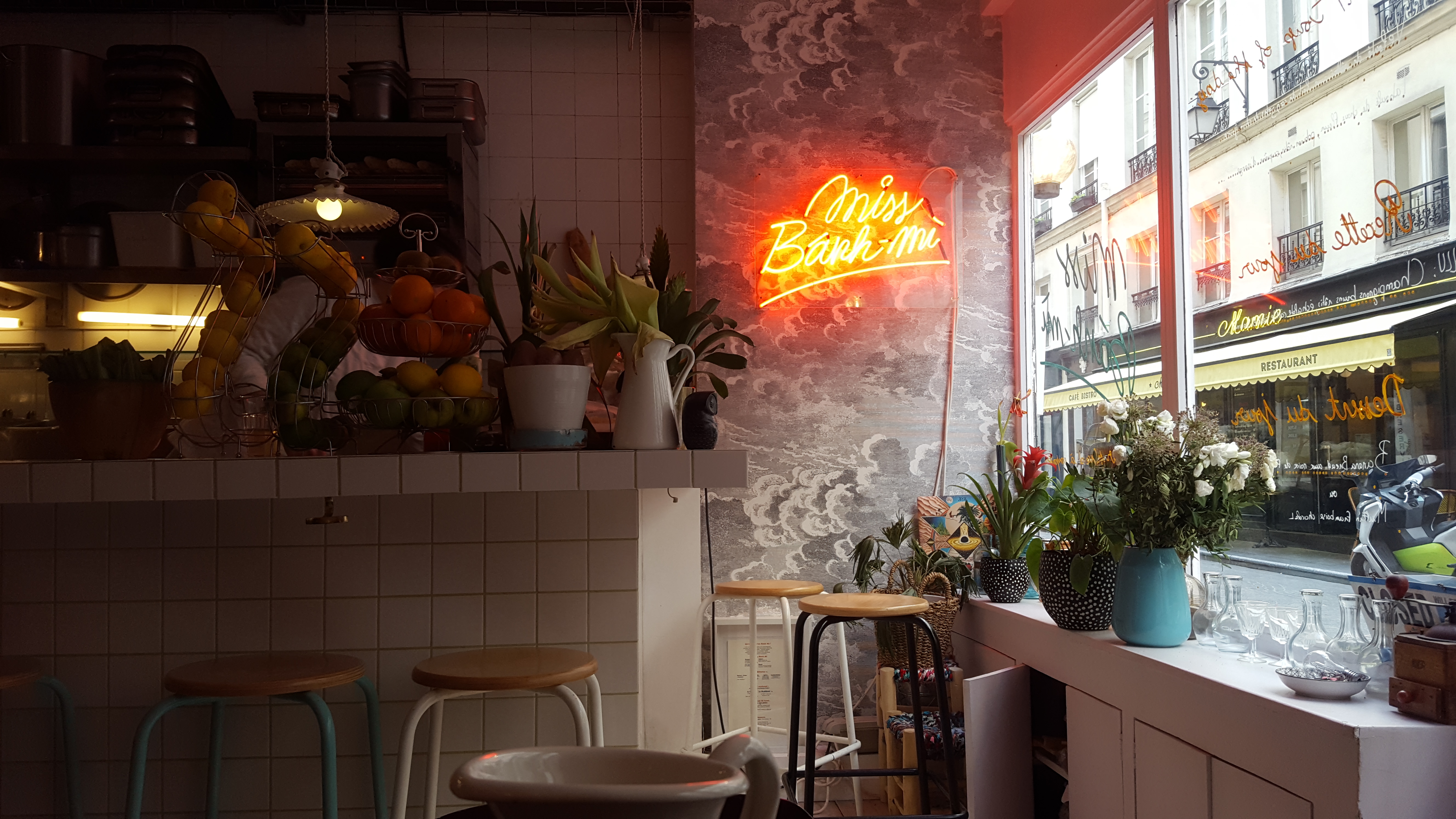 Fraîchement ouvert, ce lieu s'inscrit dans la tendance de ce plat. Miss Banh Mi s'en sort plutôt bien. Les sandwichs sont très bons et pas trop épicés. J'avais peur qu'ils soient un peu secs mais pas du tout, le banh mi se mange sans aucun soucis ;-) Nous l'avons testé sur place et à emporter. Sur place, c'est le moment de tester d'autres petits délices et de contempler le mur de fleurs.