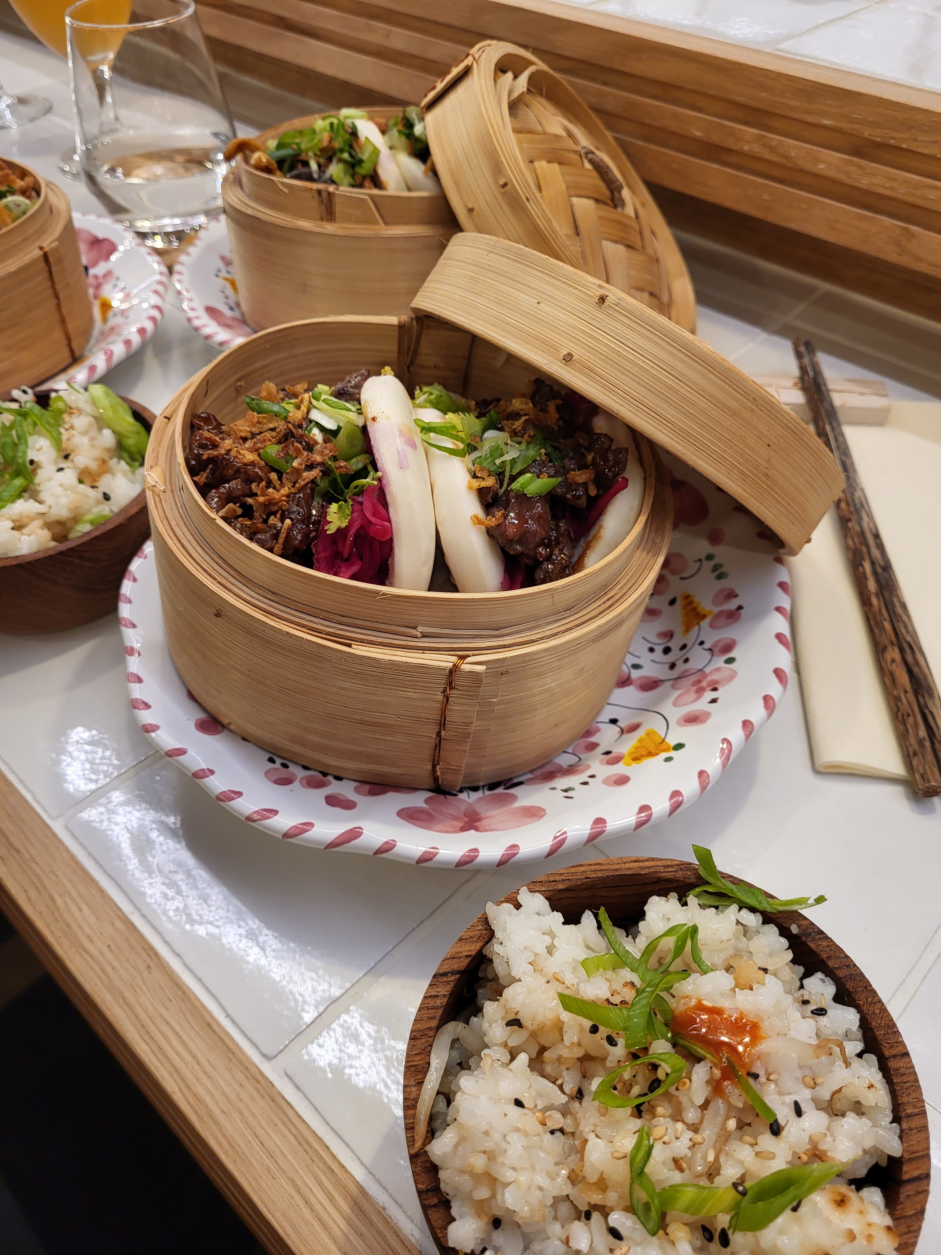 Dîner de dernière minute un vendredi soir dans ce restaurant près de la gare. Nous avons appelé avant et nous avons réussi à avoir une table pour 2. Accueil rapide et pro. Nous avons pris de BAO : bœuf et poulet. C’était bon, pas super copieux mais il manque quelque chose. Dommage, le concept est sympa.