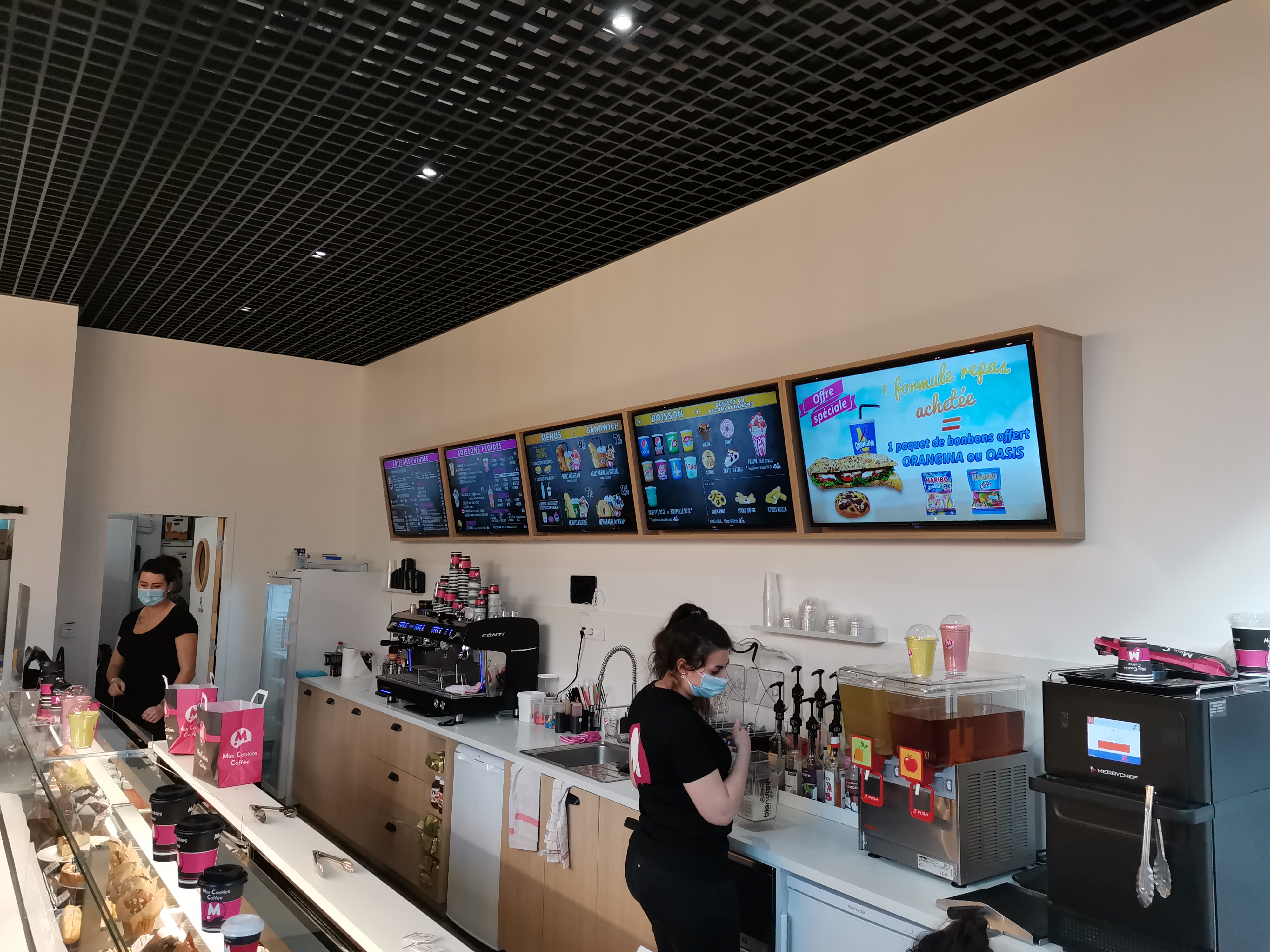 Je suis passer ce matin et je ai découvert une très jolie boutique que je ne connaissais pas ni de noms ni le concepte. Je ai étais accueillit par une ravissante vendeuse une belle brune avec de magnifiques yeux bleu Qui a pris le temps de m expliquer les formules du midi car je étais un peu perdu Sa gentillesse et sa bonne humeur ma fais plaisire sa change de certaine boutique .... Sinon j ai prit un muffin's qui étais très bon avec un café (sa reste un café même si elle l'a gentiment proposer de mettre dusiropou un arôme je suis pas près ). Je reviendrais avec plaisir pour goûter à d autre spécialités qui avais l aire toutes délicieuses les uns des autres et et j espère être encore accueilli par cette vendeuse au magnifique yeux bleu...