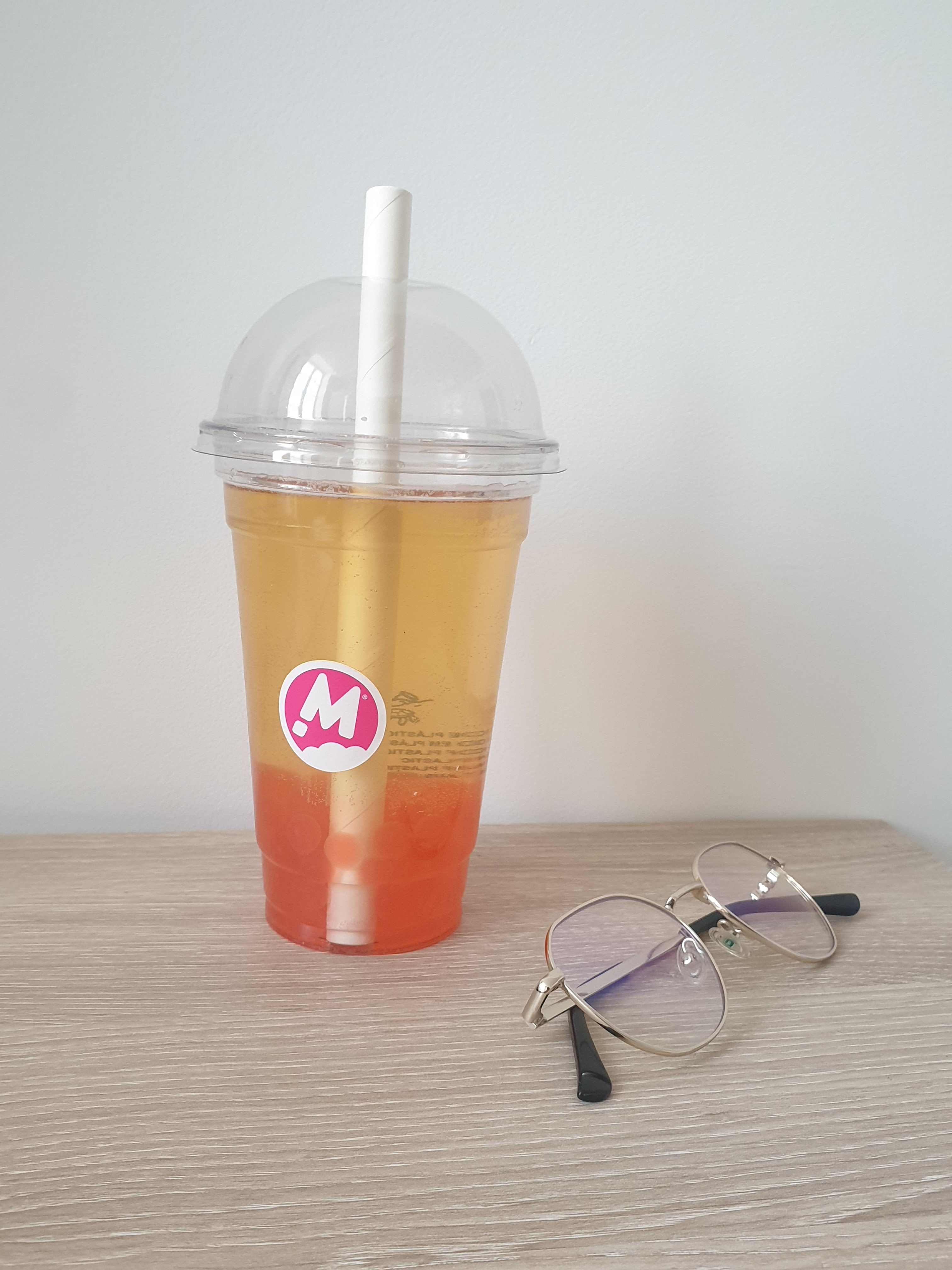 Bonjour. Saviez vous que bubble signifie bulle en anglais ? C'est parce qu'il y en a dans la boisson qu'un bubbletea se boit avec une paille large: pour que les bulles puissent passer à l'intérieur. Alors j'aimerais savoir pourquoi il y avait si peu de bulles dans ma boisson qu'il n'y en avait pas assez pour recouvrir le fond du verre, et pareil pour ma collègue ? S'il s'agissait d'un souci de stock, dans ce cas là, il vaut mieux dire à la clientèle que vous n'avez plus assez de perles ou proposer une alternative, parce que j'ai payé le prix d'un bubbletea pour un thé au sirop trop dilué. À bon entendeur.