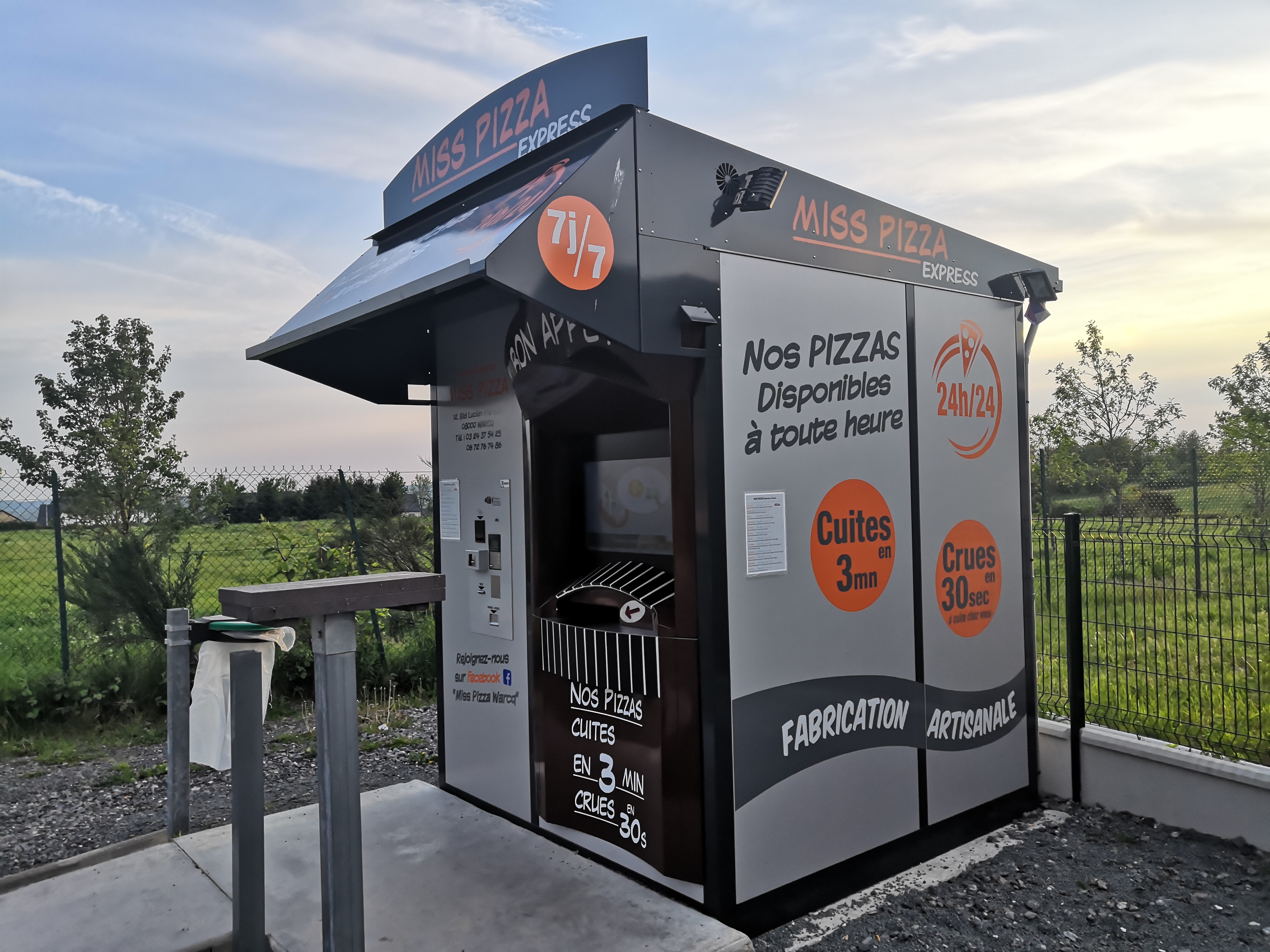 hyper pratique ce distributeur ,avec de bonne pizza dispo à n'importe quelle heure et prête en 3 minutes