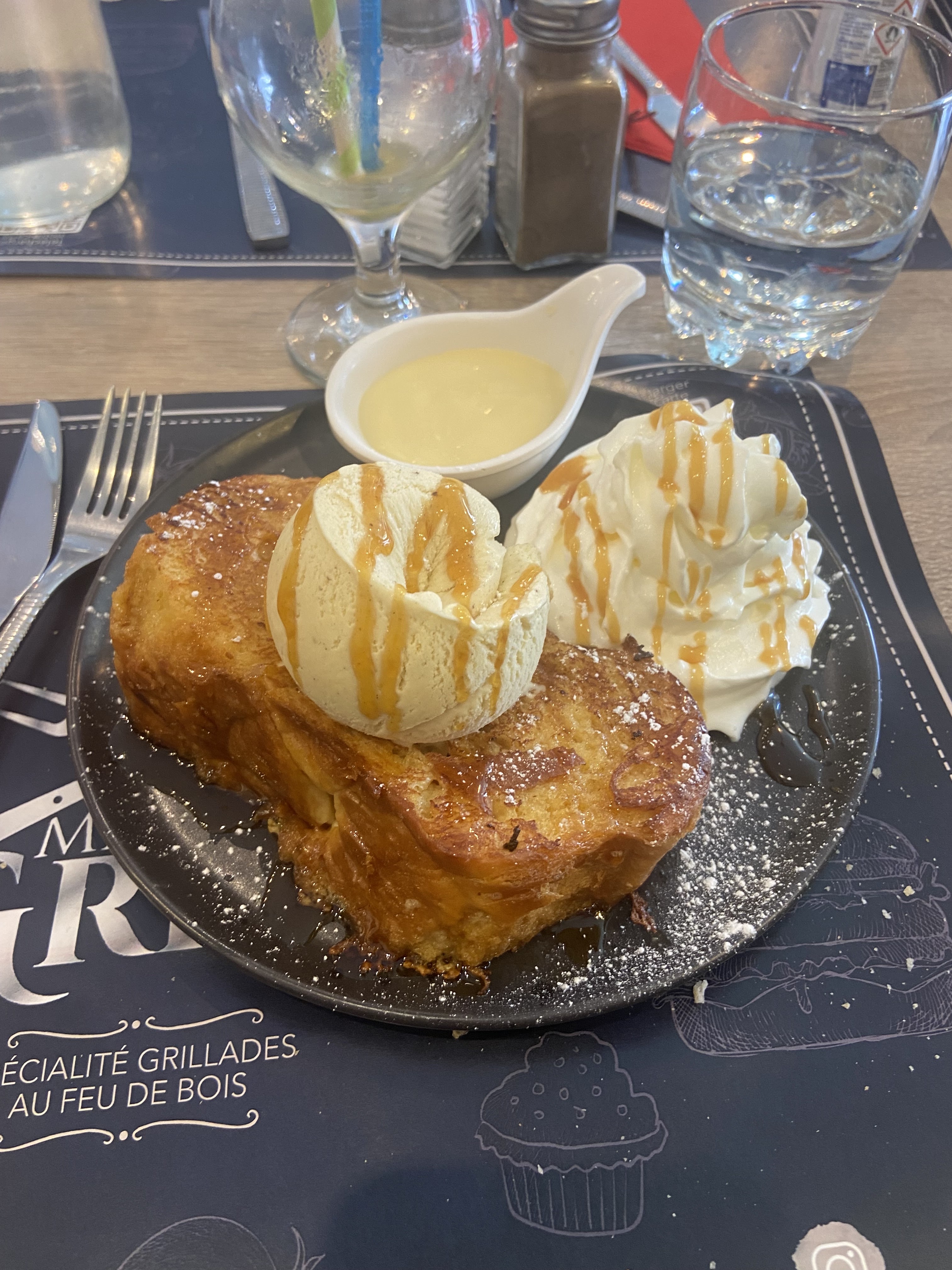 Service impeccable... Repas satisfaisant ... Les prix sont assez élevés pour la simplicité des plats. Là où j'ai été déçue c'est lorsque j'ai vu les photos du dessert que j'ai pris (le pain perdu) provenant des précédent avis ...une belle tranche de pain perdu une boule de glace de la crème anglaise et de la chantilly whaou !!!! Ça donne envie ...rien a voir avec mon assiette pourtant être sensé être la même ...j'ai eu juste le droit a la moitié : une boule de glace sur le pain perdu et hop 🤔