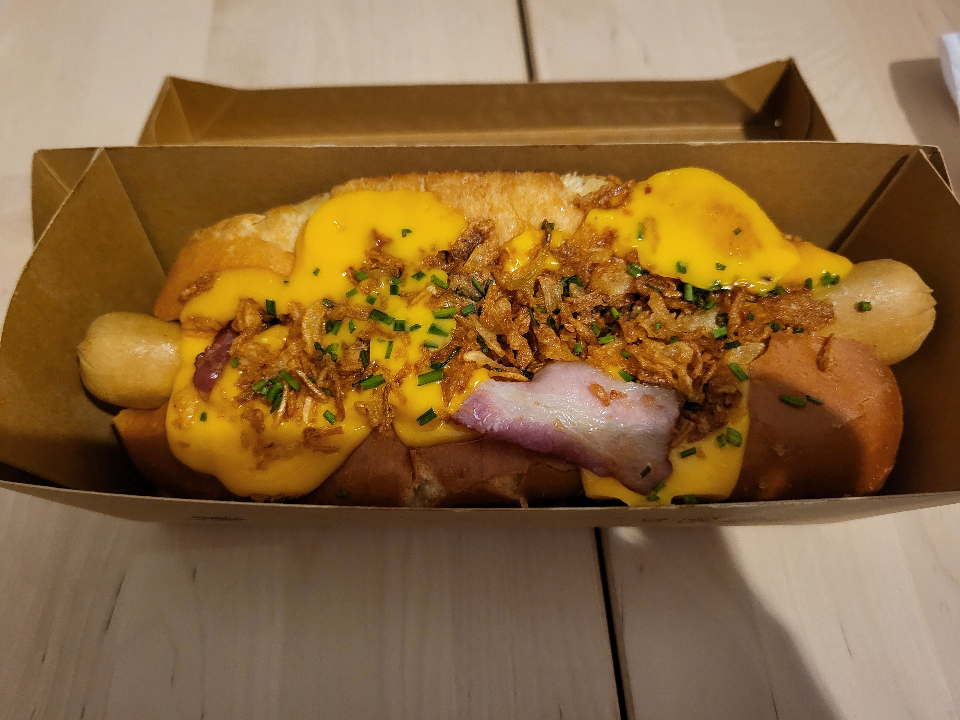 Mais, mon Dieu ! Je suis tombée au paradis ! J'ai pris un hot-dog cheddar bacon. Le pain c'est une tuerie : une brioche, digne de Marie-Antoinette. Le cheddar, avec un bon fumet, du bacon croustillant, double ration d'oignons : caramélisés et croustillants. Forcément, la saucisse, trop bonne ! Un met divin. Je ne peux pas mieux vous le décrire : goûtez-le ! La pizza 4 fromages était excellente également. L'équipe est incroyable. Merci pour votre bonne humeur, vous êtes trop cools ! Venez sur Bordeaux, on a besoin de commerçants comme vous. On vous adore !!