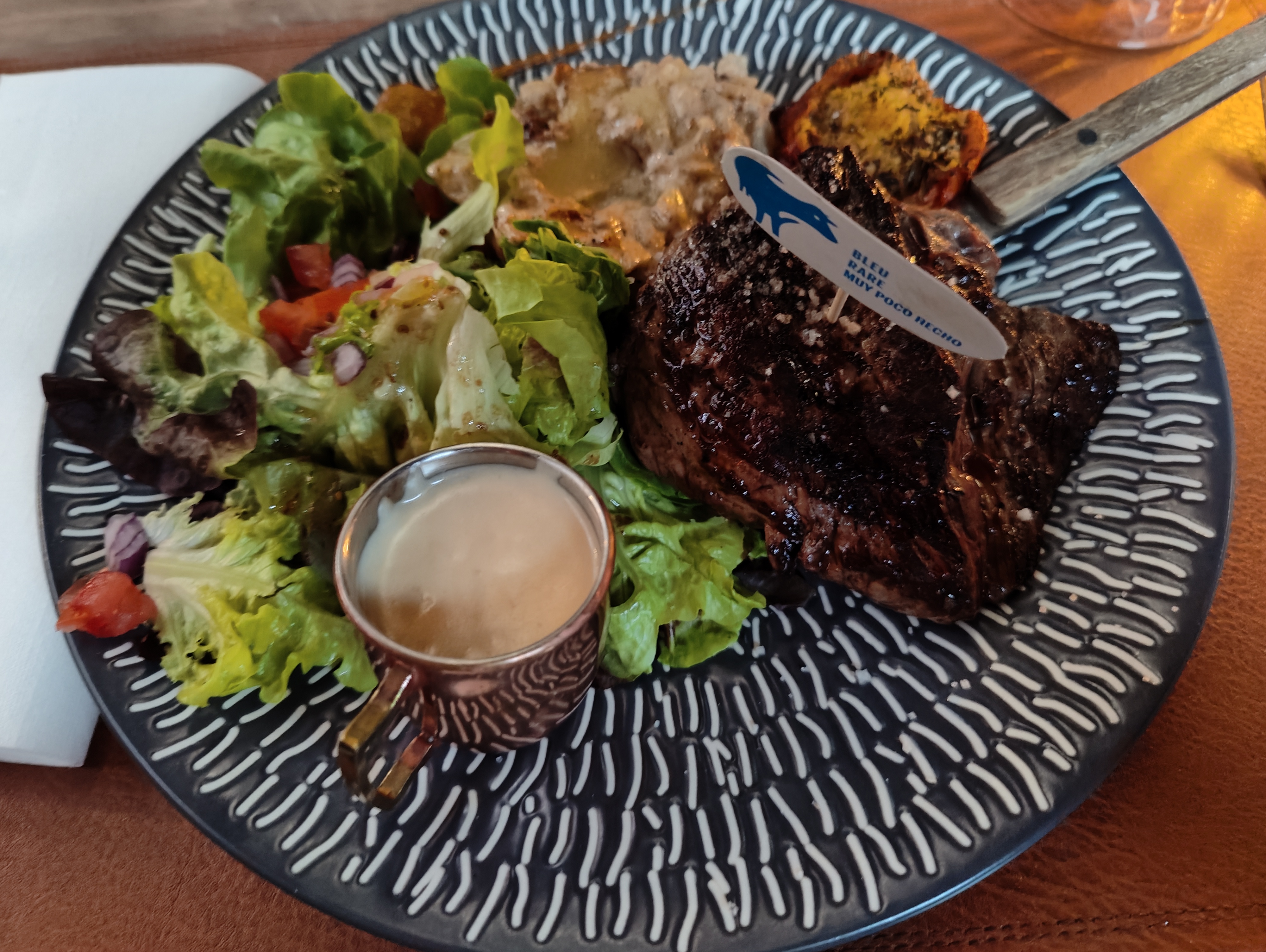Patronne adorable et accueillante. Décor très joli. Plats excellents. Nous avions pris l'entrecôte maturee , un delice. Un bon moment dégustatif mais aussi pour les yeux avec le mentalist qui a fait une belle prestation