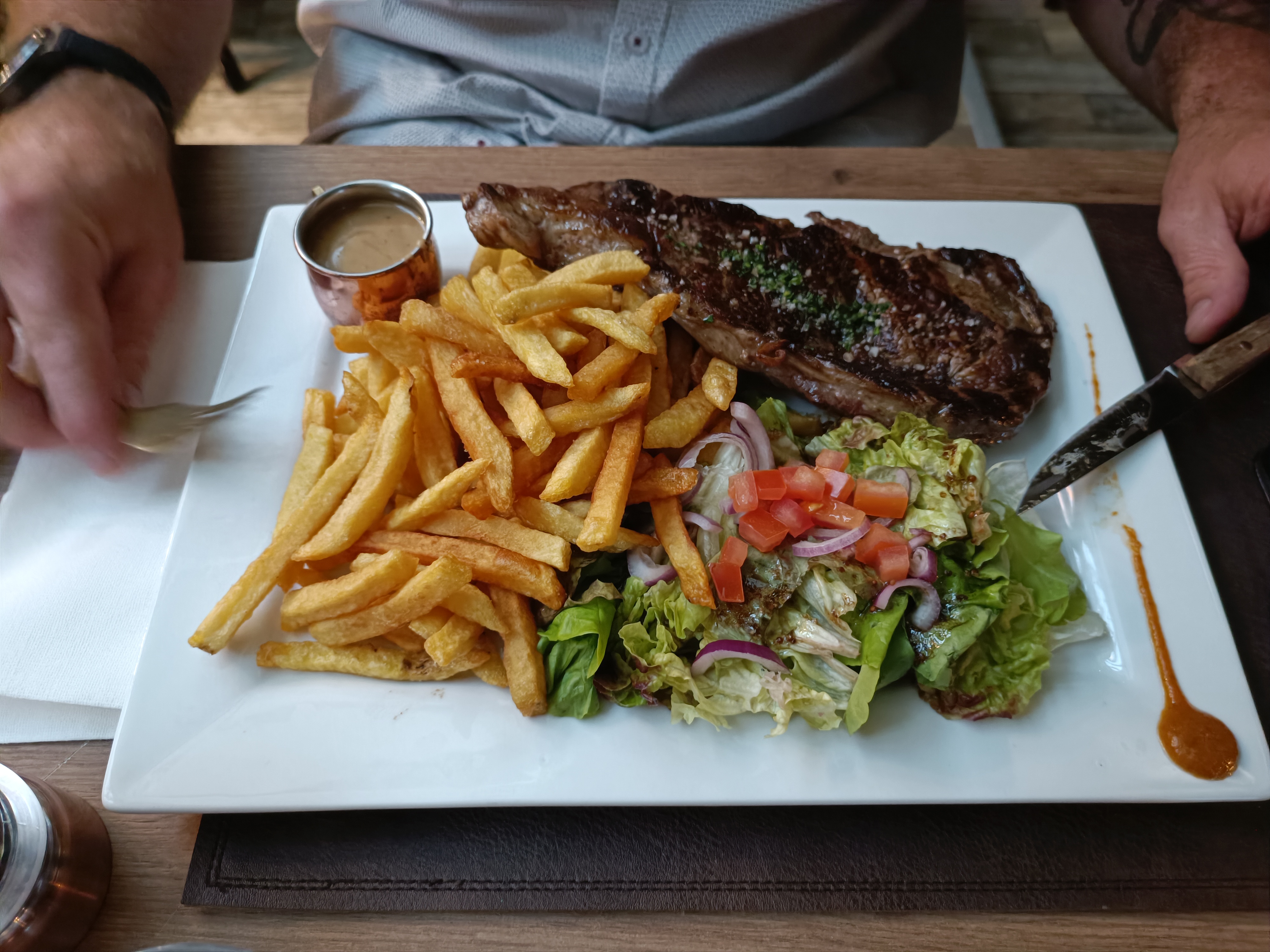Repas en terrasse un midi. C'était très agréable. Service rapide. Plat très copieux et bon. Nous reviendrons.