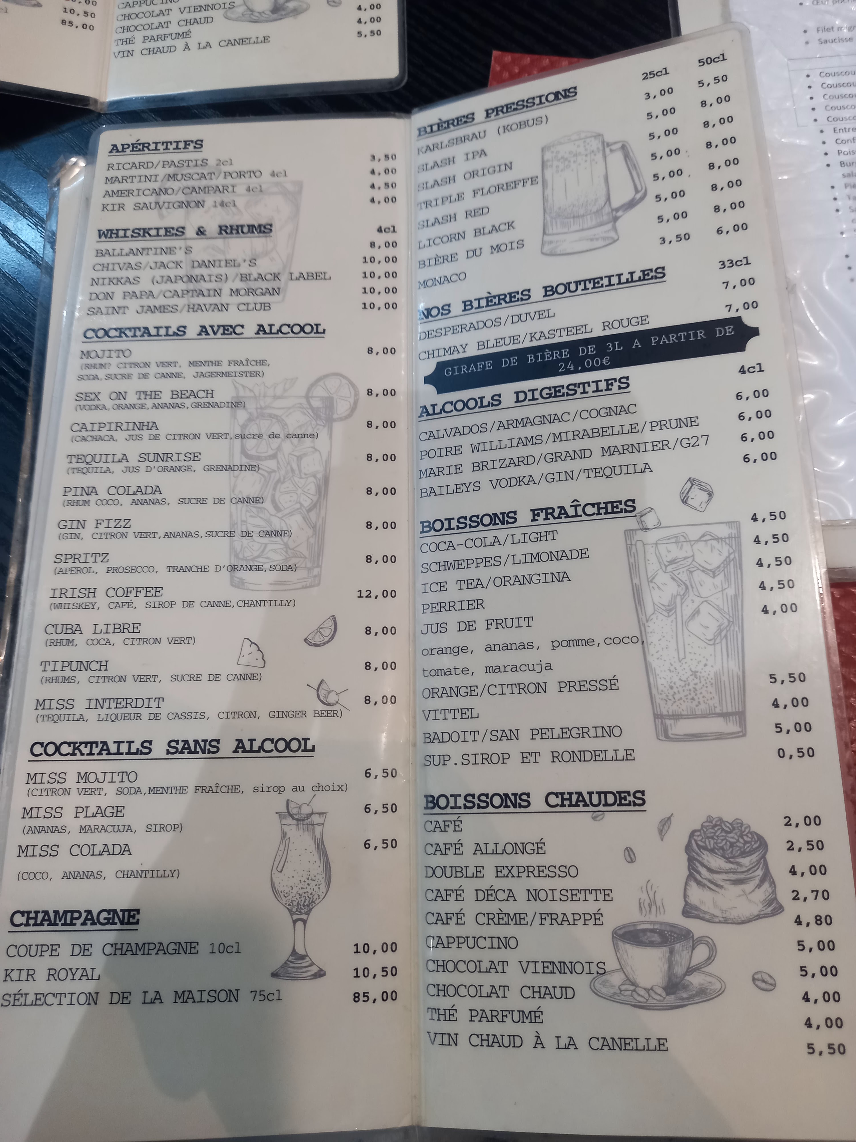 Les pizza sont excellentes ❤️ Couscous au top Je conseille cette endroit pour bien manger et boire un verre 👍🏻