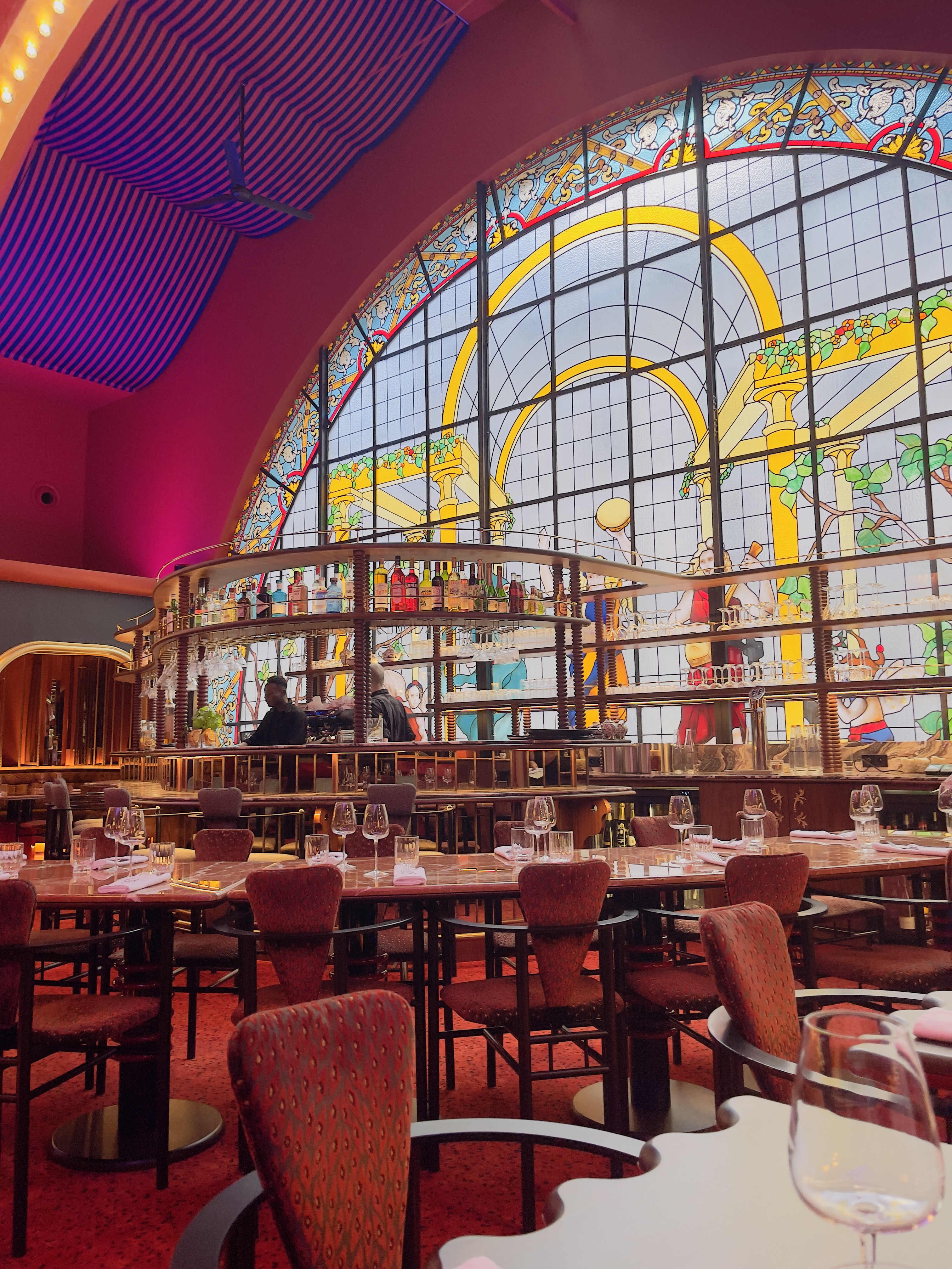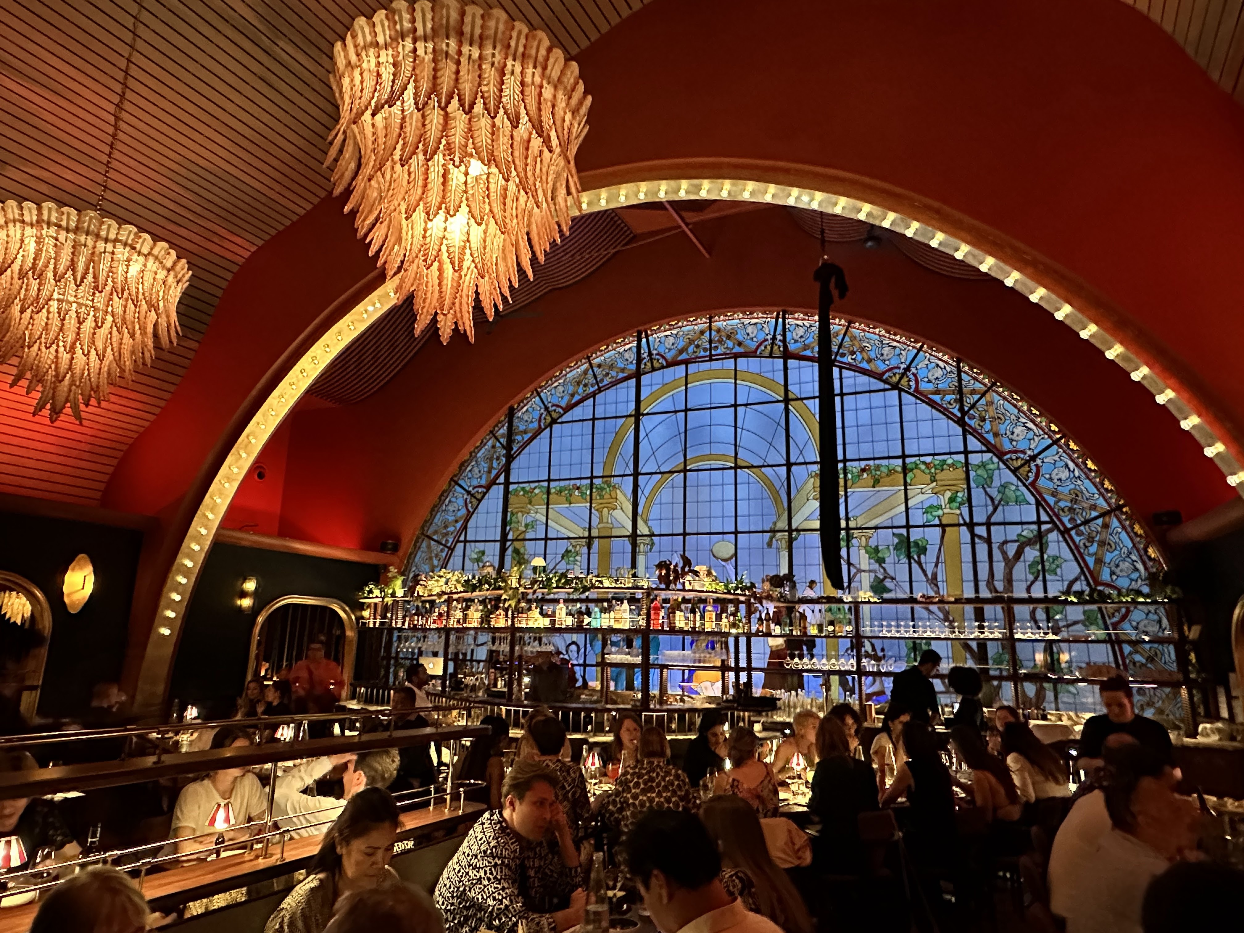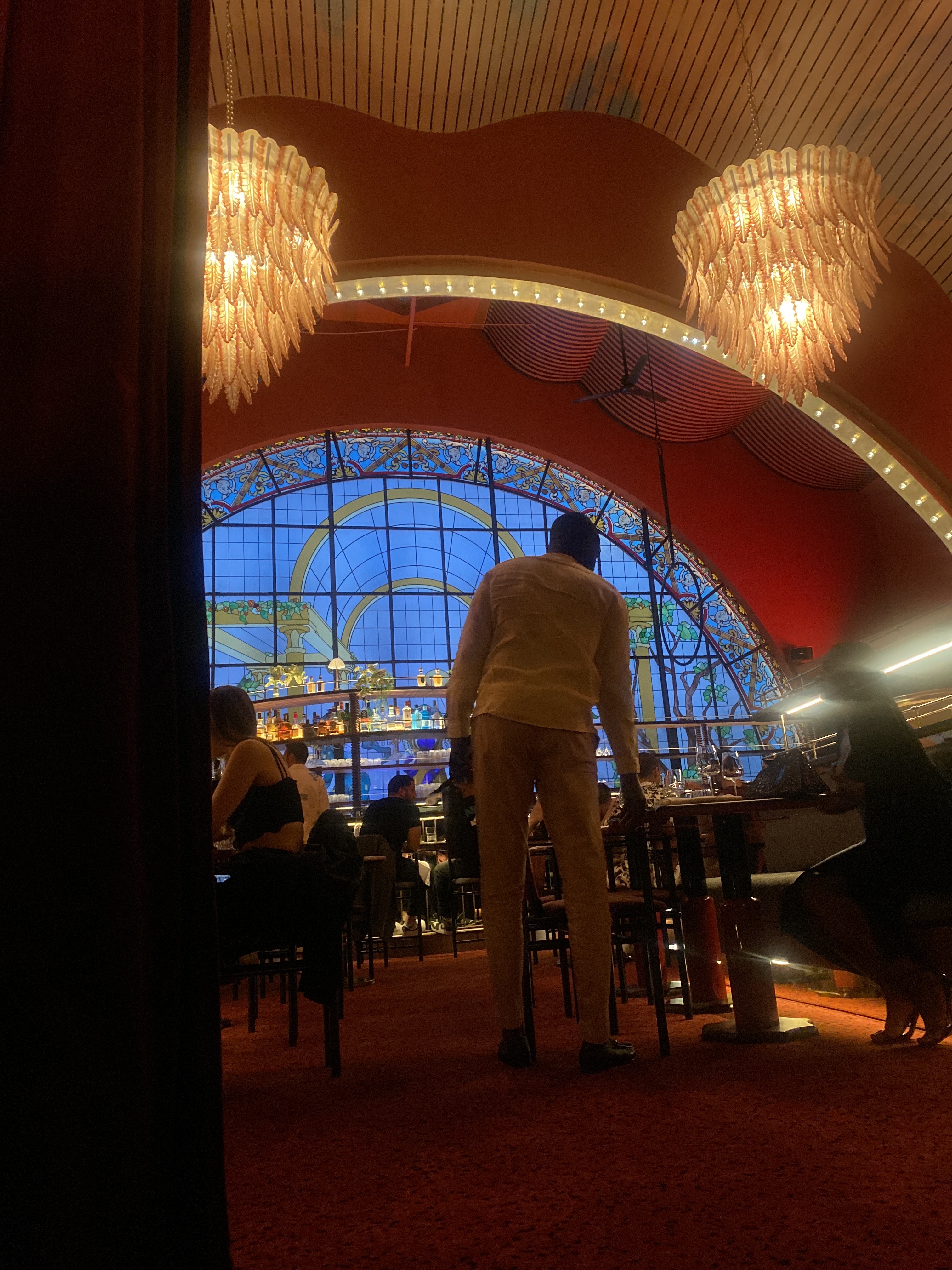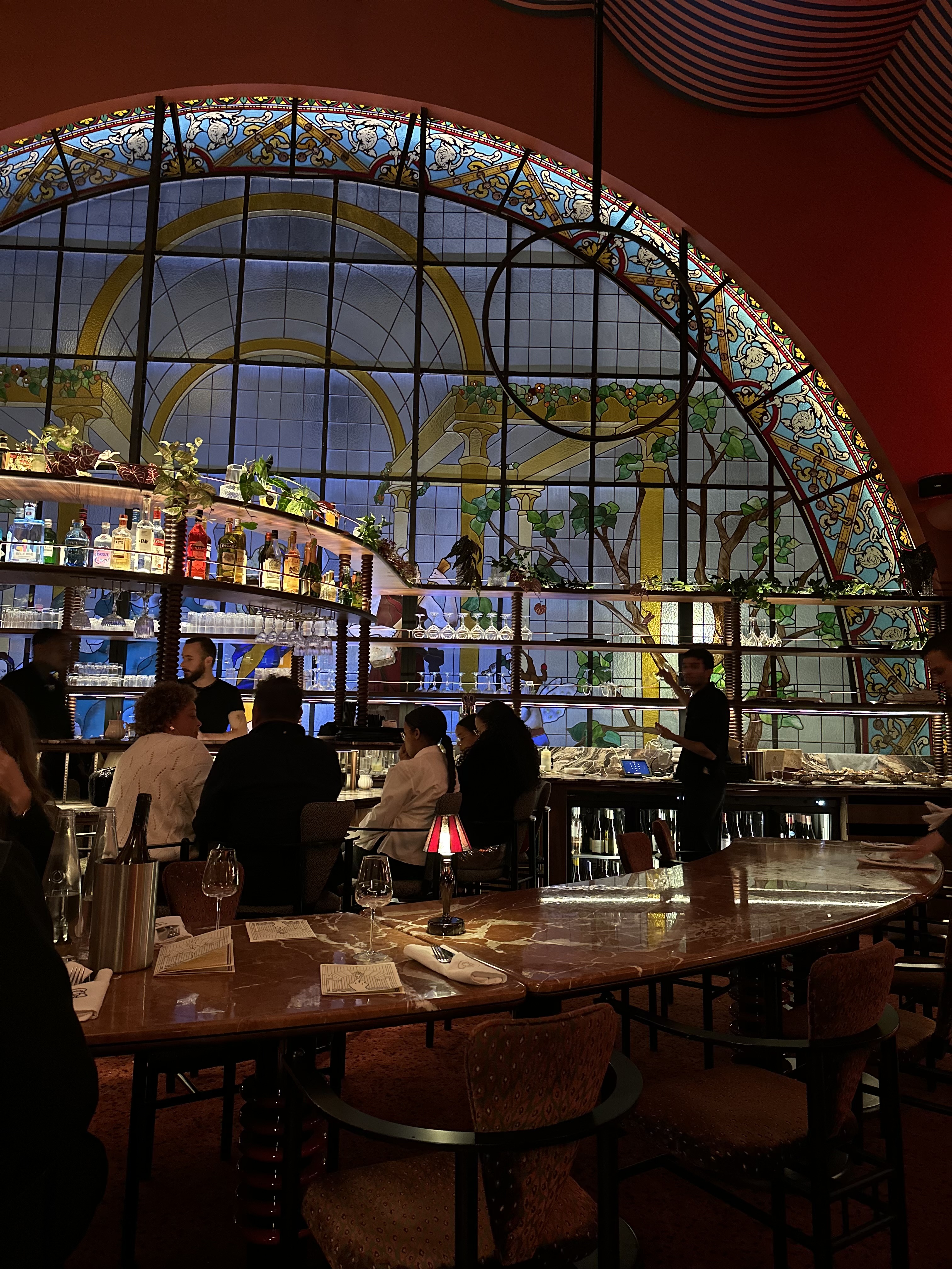 Un endroit magnifique pour boire un verre ou dîner dans Paris ! Le bar et le vitrail derrière sont splendide. La salle est assez spécieuse, joliment décorée. Il y des shows certains soir, comme de l’aérien, ce qui est très sympa à regarder et met une bonne ambiance. Les cocktails sont originaux et très bon, je recommande le jalousie (qui a d’ailleurs une présentation originale). Le service est sympathique et efficace.