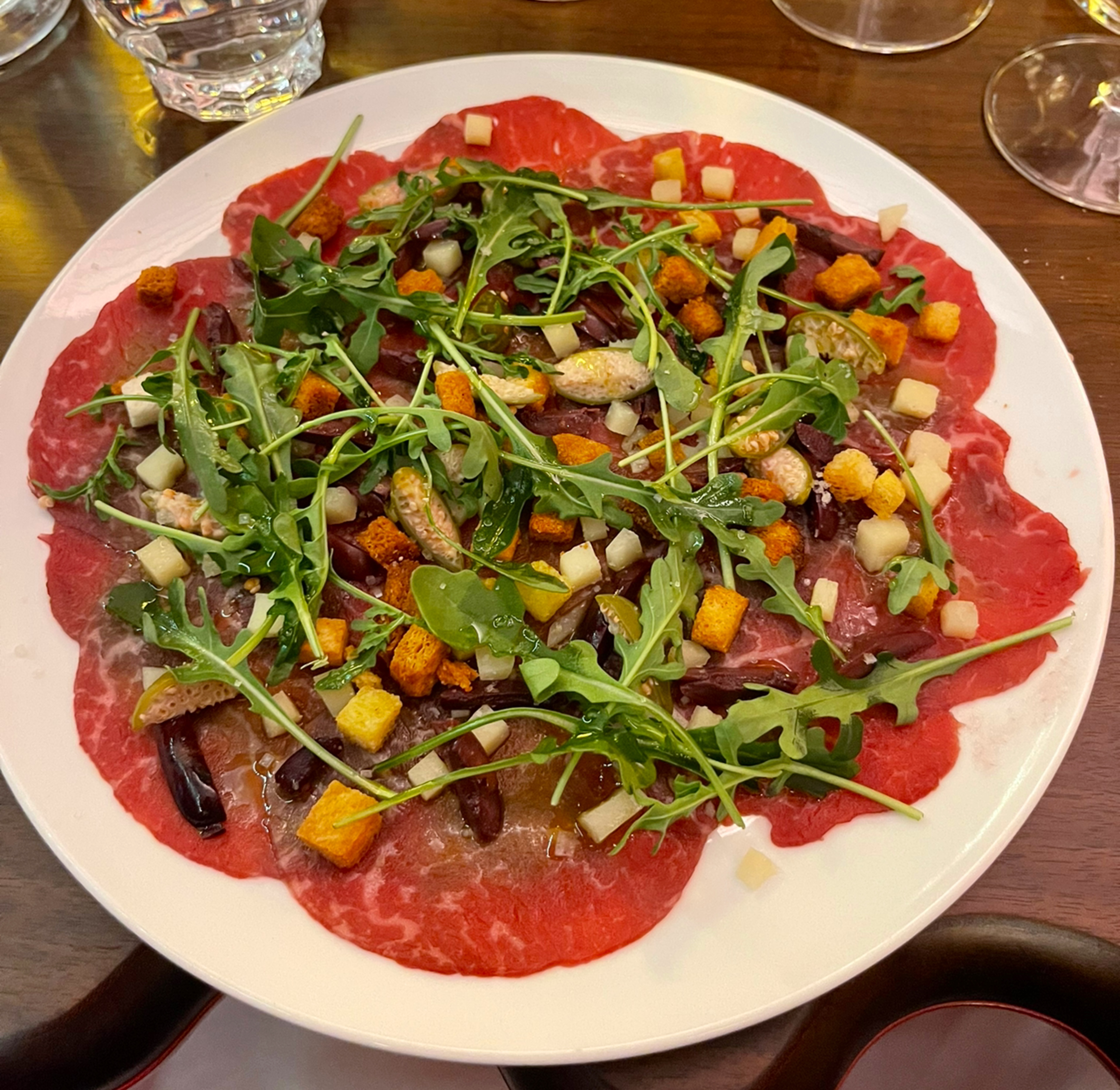 Entrées super fraîches Carpaccio de boeuf excellent super produit Même la salade cesar hyper innovante Désert rien à redire Ambiance très « frenchy » au top Bravo