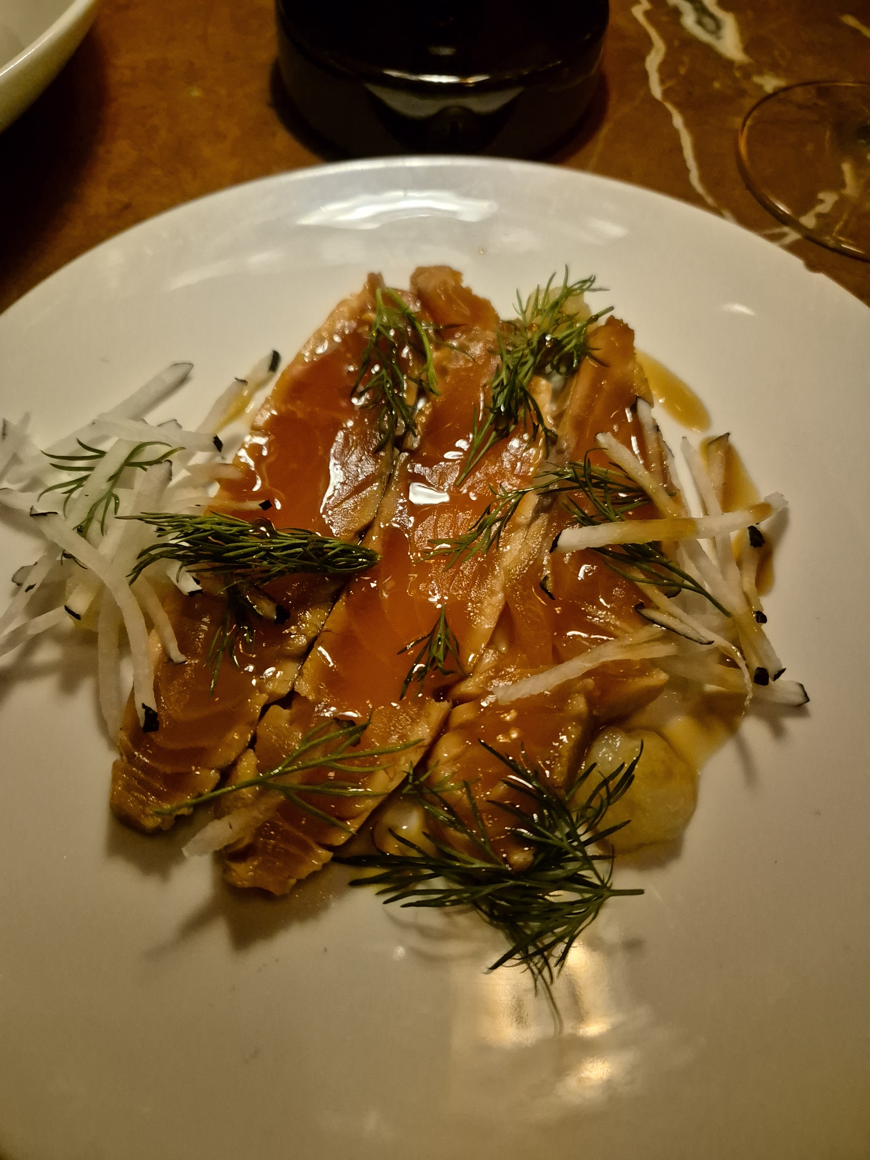 Super découverte de ce restaurant tout récemment ouvert, certainement très à la mode d'ici quelques mois. Évidemment la déco est superbe, mais n'éclipse en rien la qualité et la créativité de la cuisine délicieuse. Les portions sont parfois très variables (ex. entre le tataki de maquereaux discret VS. les 6 madeleines dodues au parmesan). Service bien rythmé sans être oppressant.