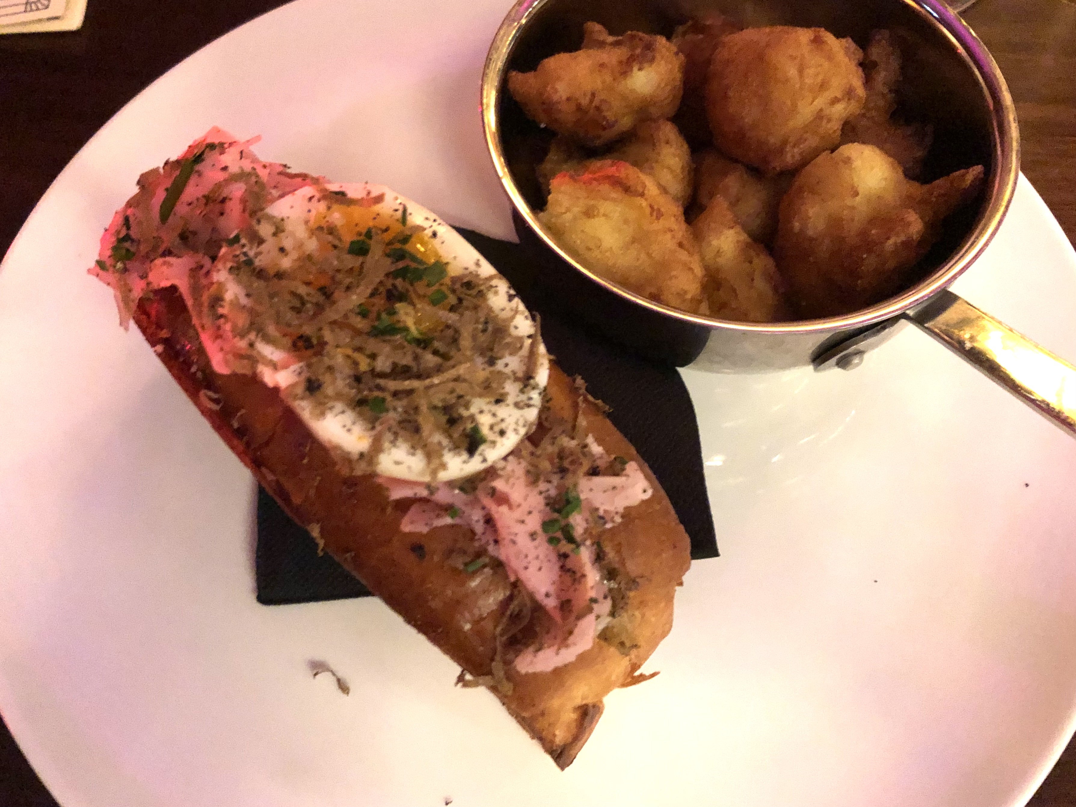 Terrible expérience pour ce niveau de prix. Je travaille dans l'hôtellerie de luxe et ce n'était PAS ça. Environ mille degrés à l’intérieur malgré sa récente ouverture ; apparemment, la ventilation ne figurait pas dans le budget des rénovations. La salade César était une blague. Quelqu'un a appris à ce chef comment en préparer une bonne, cette vinaigrette n'était pas du tout authentique et May était également sortie d'une bouteille (mayo). Service médiocre, même pour les standards parisiens, femme terriblement grossière qui y travaille aussi. Ils font semblant d'être quelque chose qu'ils ne sont vraiment pas + pour couronner le tout, ils vous font garder vos couverts d'entrée pour le plat principal… allez