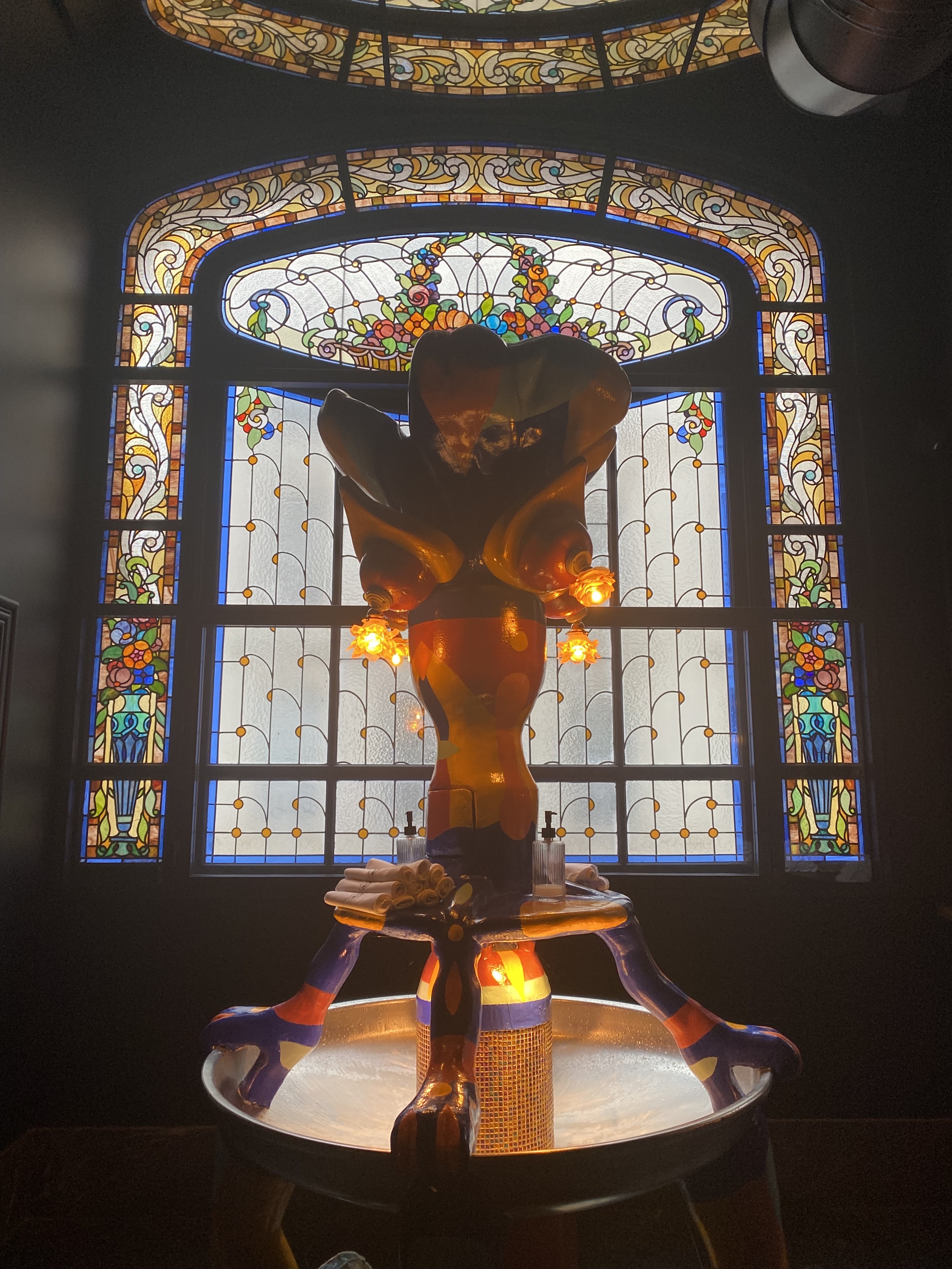 L'eau dans le lavabo des toilettes ne fonctionne pas, les toilettes sont en cours de service. La chaleur est insupportable et la gérante est très impolie. Nourriture vraiment moyenne pour un prix au dessus de la moyenne. Le vitrail est joli, mais c'est là que s'arrêtent mes commentaires positifs.