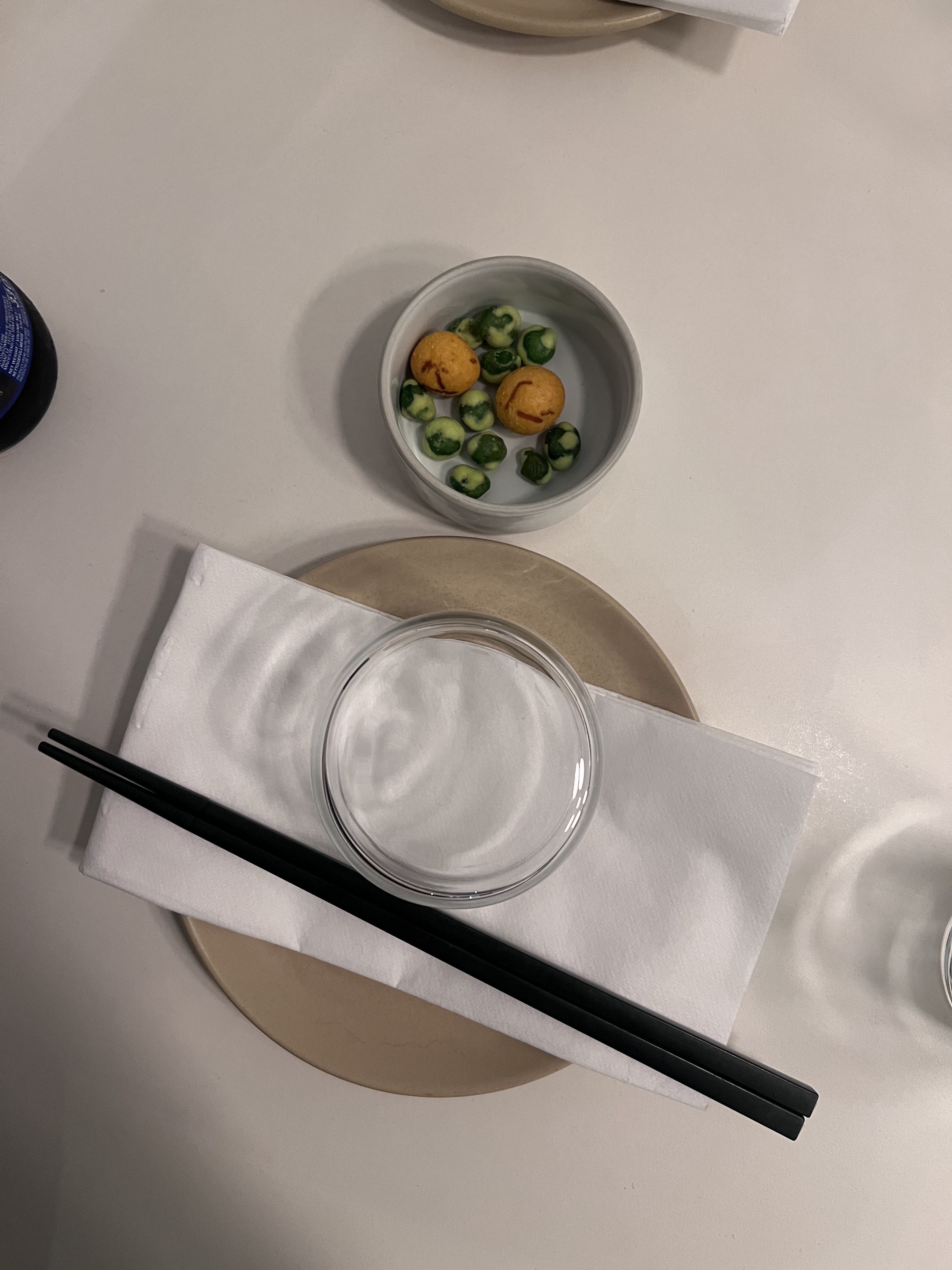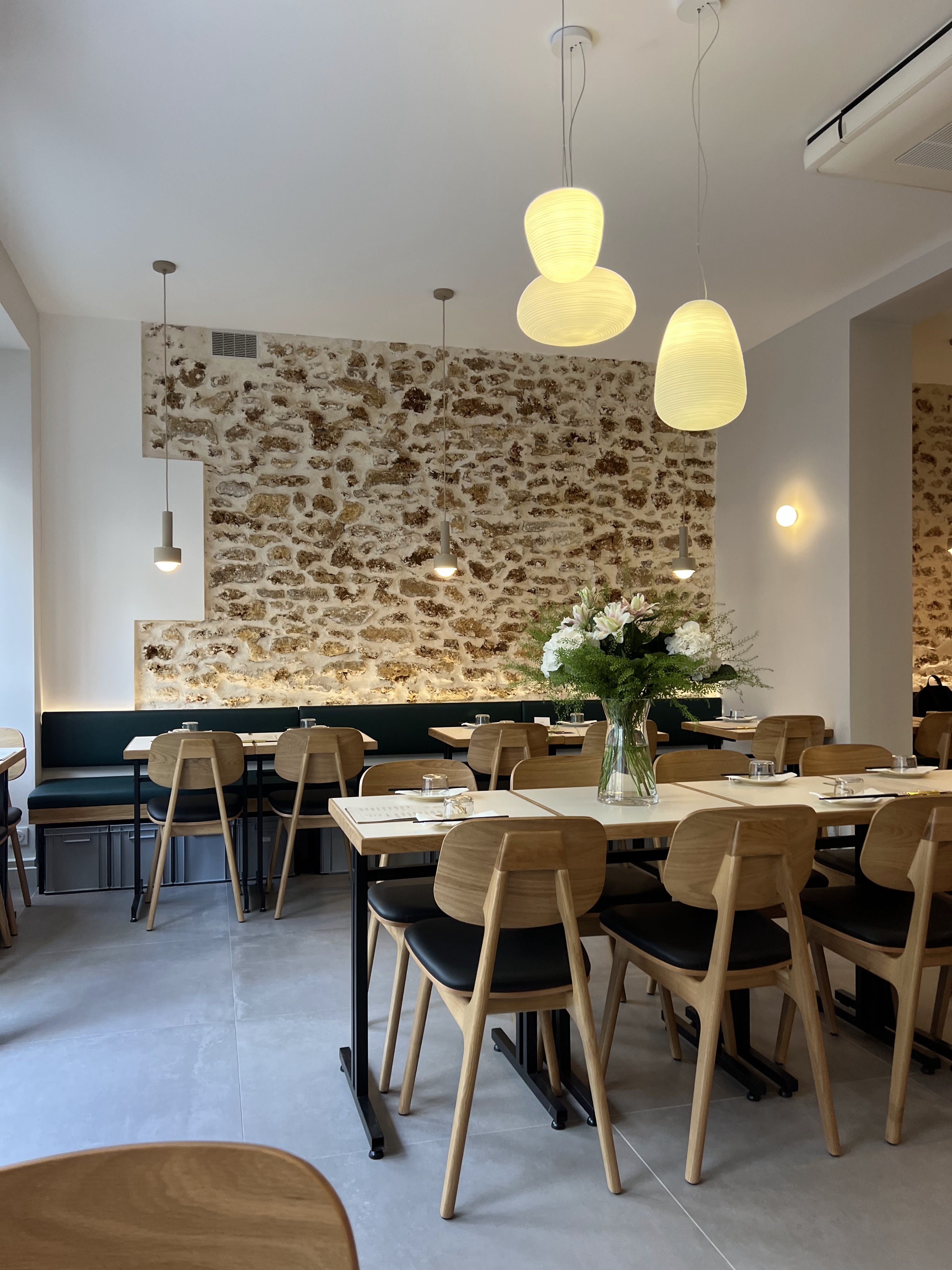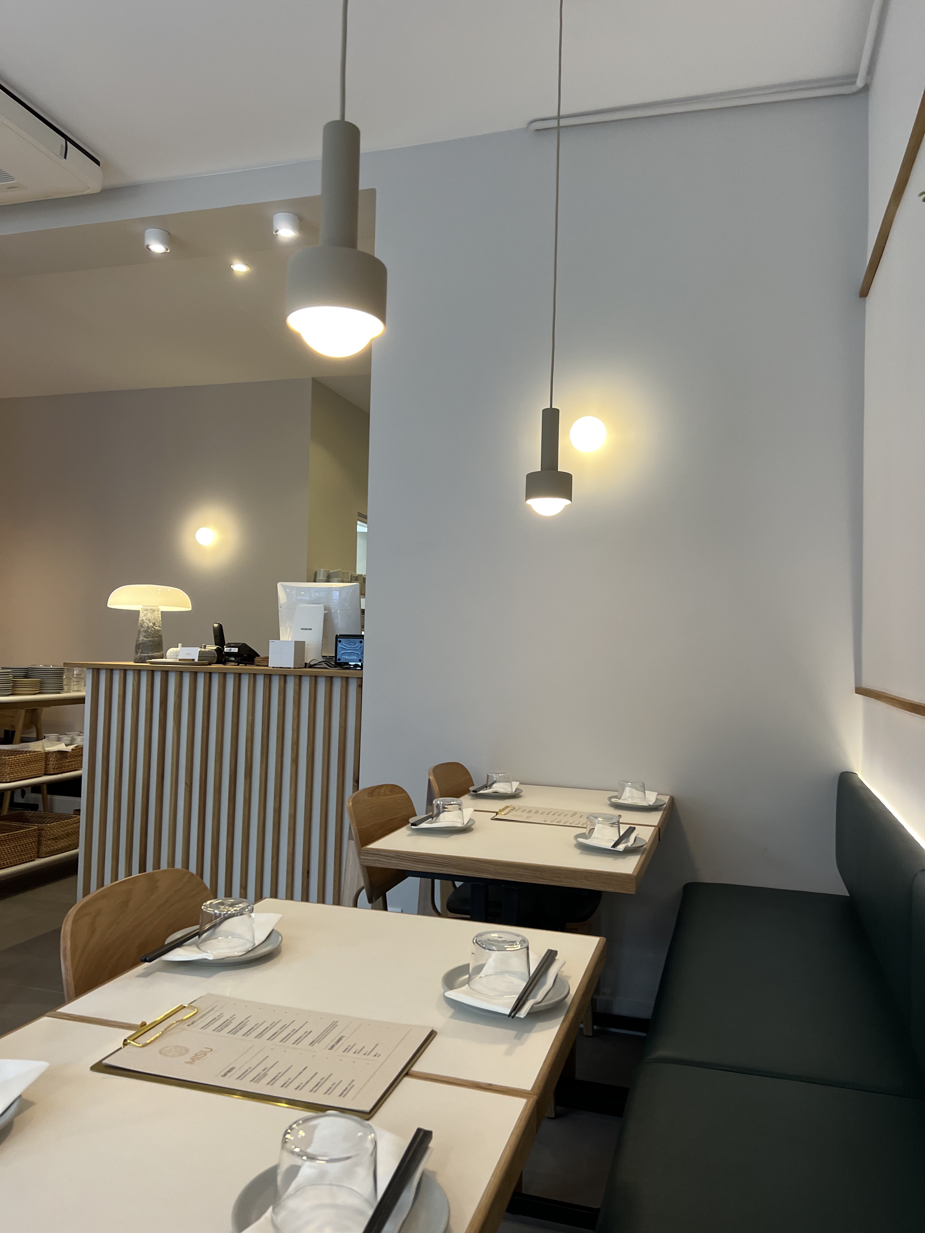 L'ambiance est épurée, le cadre est sympathique. La nourriture est bonne et qualitative. Je vous recommande le mini beignet au haricot blanc et la chantilly au sésame noir pour le dessert