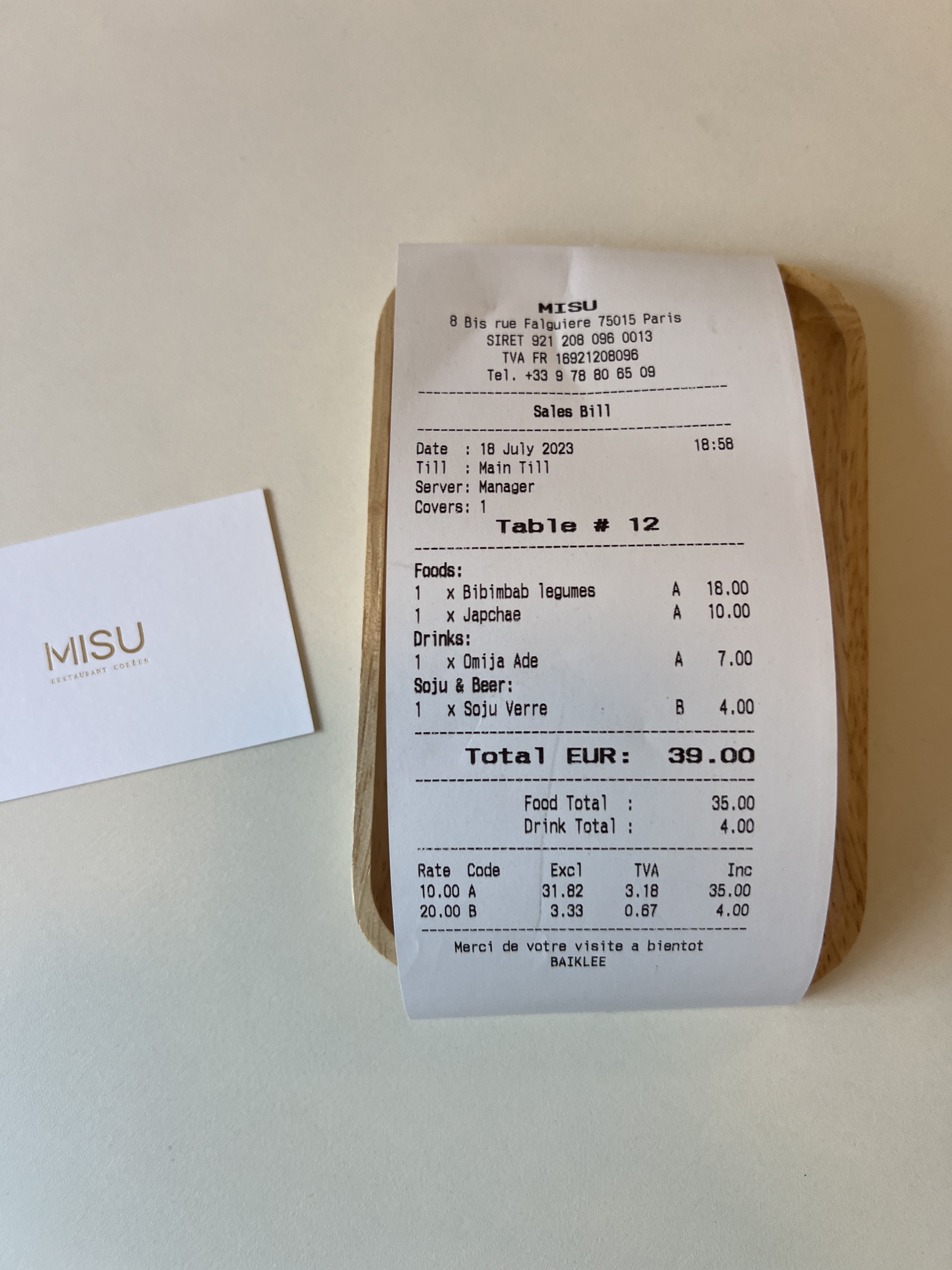 Un endroit délicat et sobre, un choix de mets restreint et donc de qualité, un accueil agréable et discret. Bref Misu est un restaurant coréen absolument parfait pour une soirée réussie.