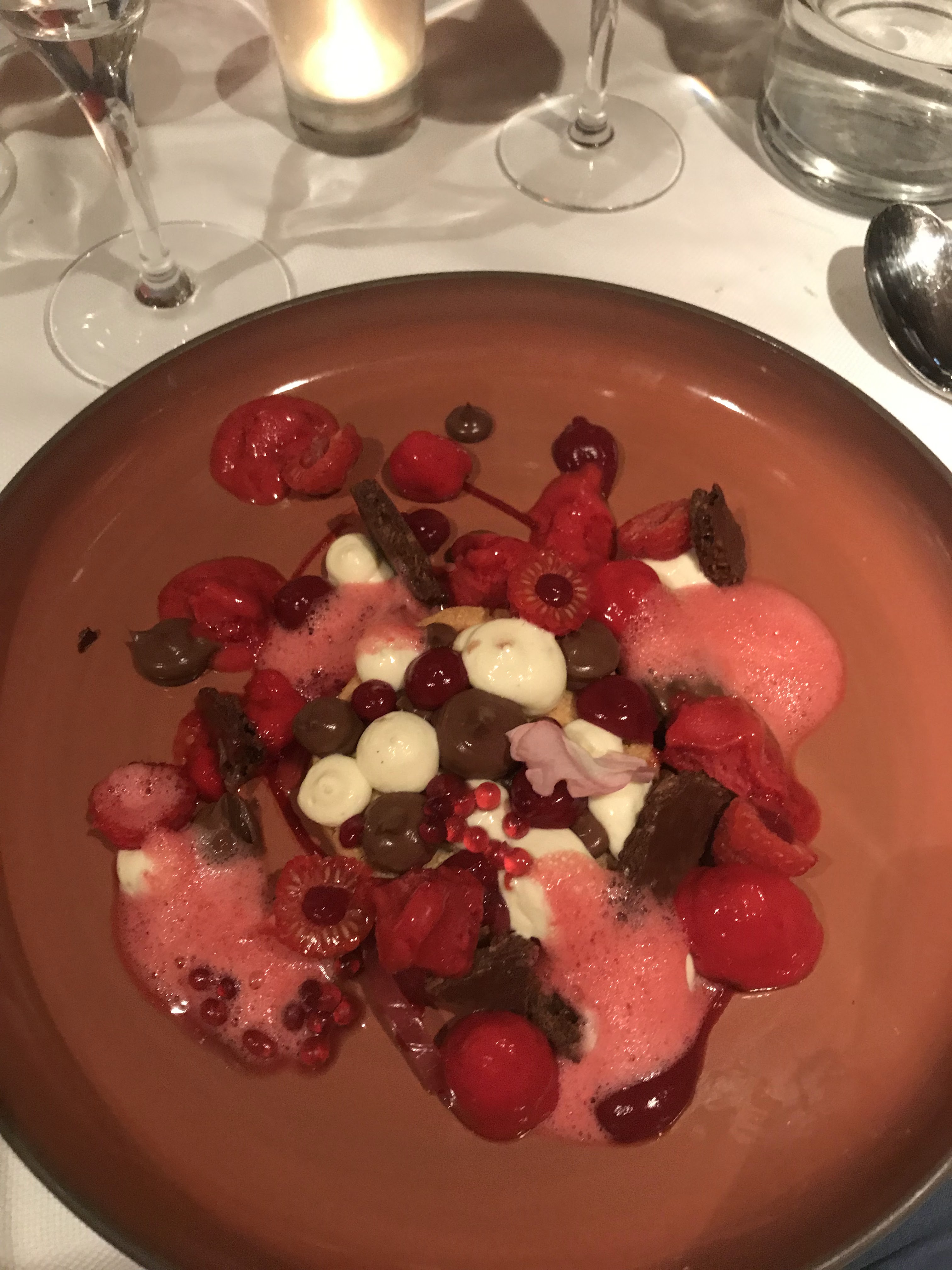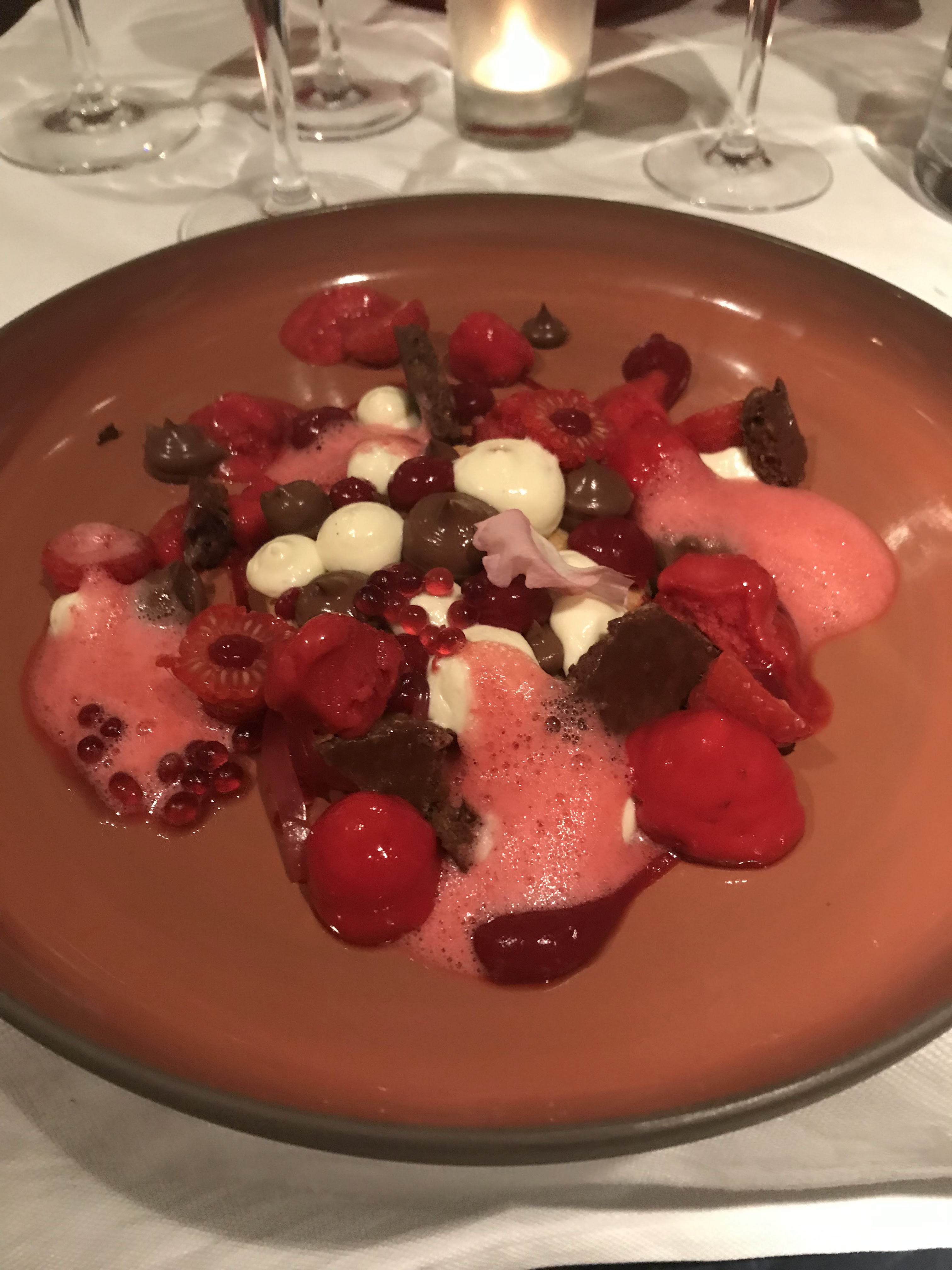 Meilleur restaurant où nous sommes allés à Aix, plats complexes, goûts simples et équilibrés. Obtenez tout le poisson, le dessert au chocolat est meilleur mais très riche, et le dessert aux fraises était excellent et rafraîchissant, partagez les deux 🙂