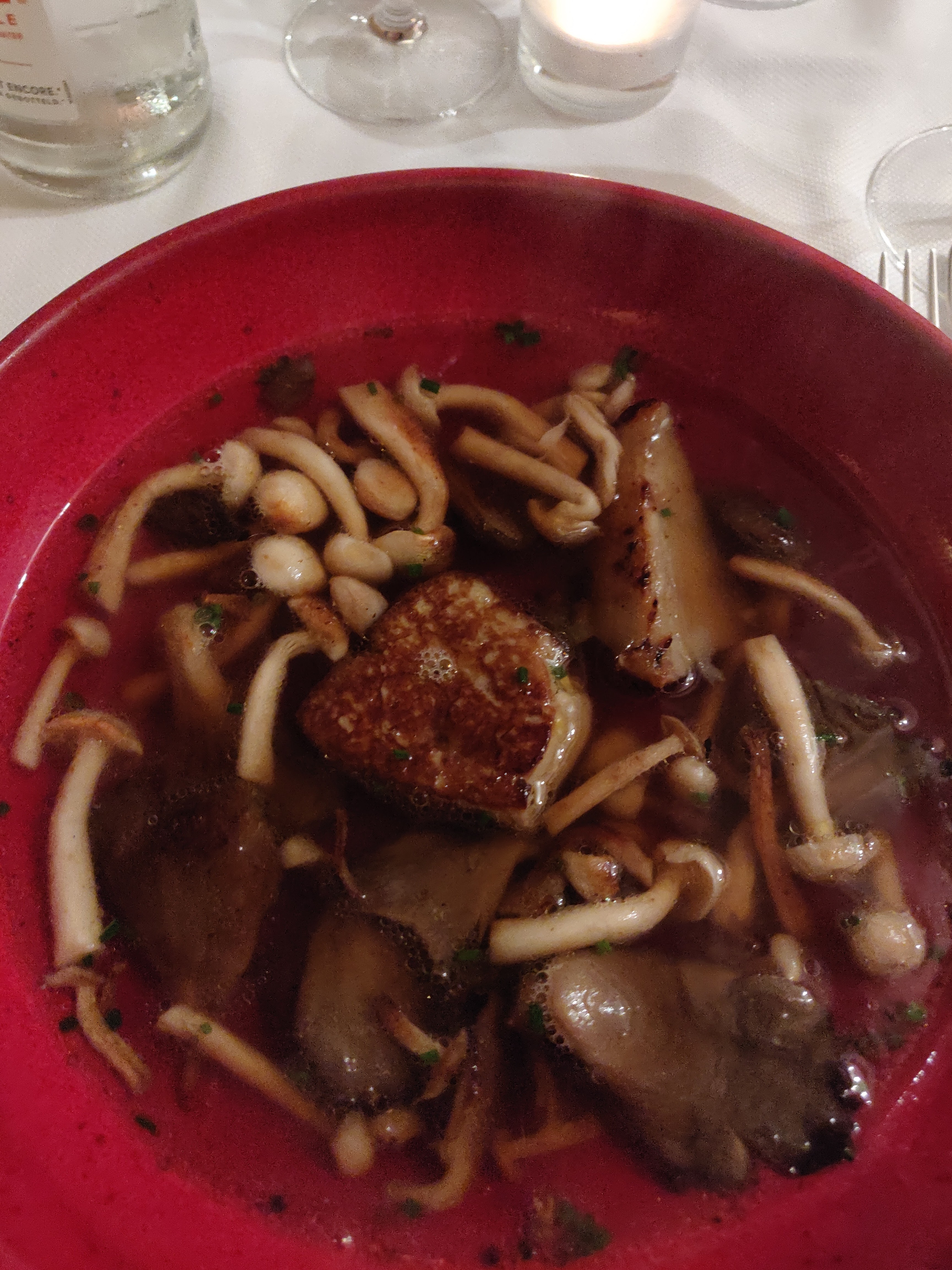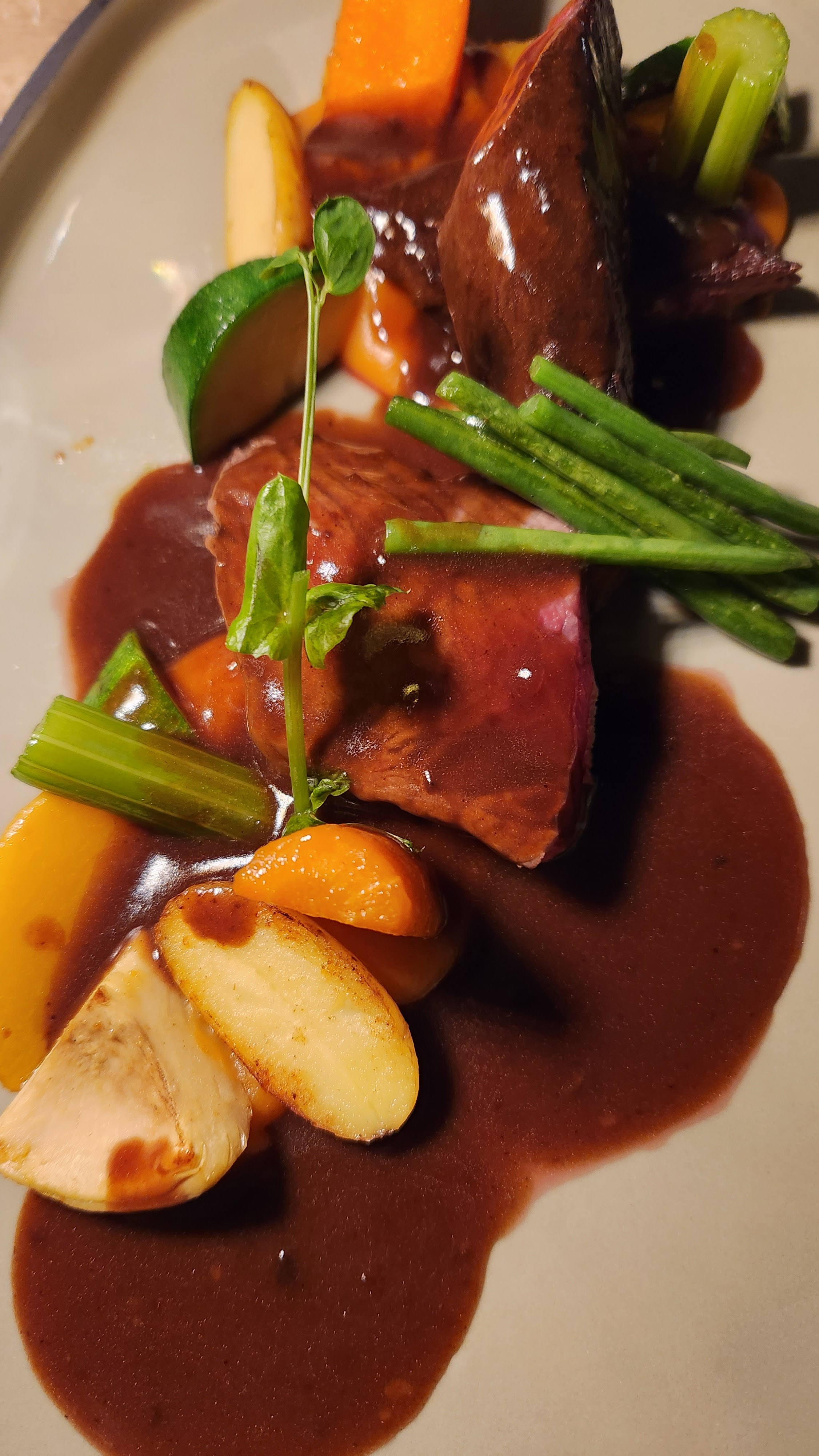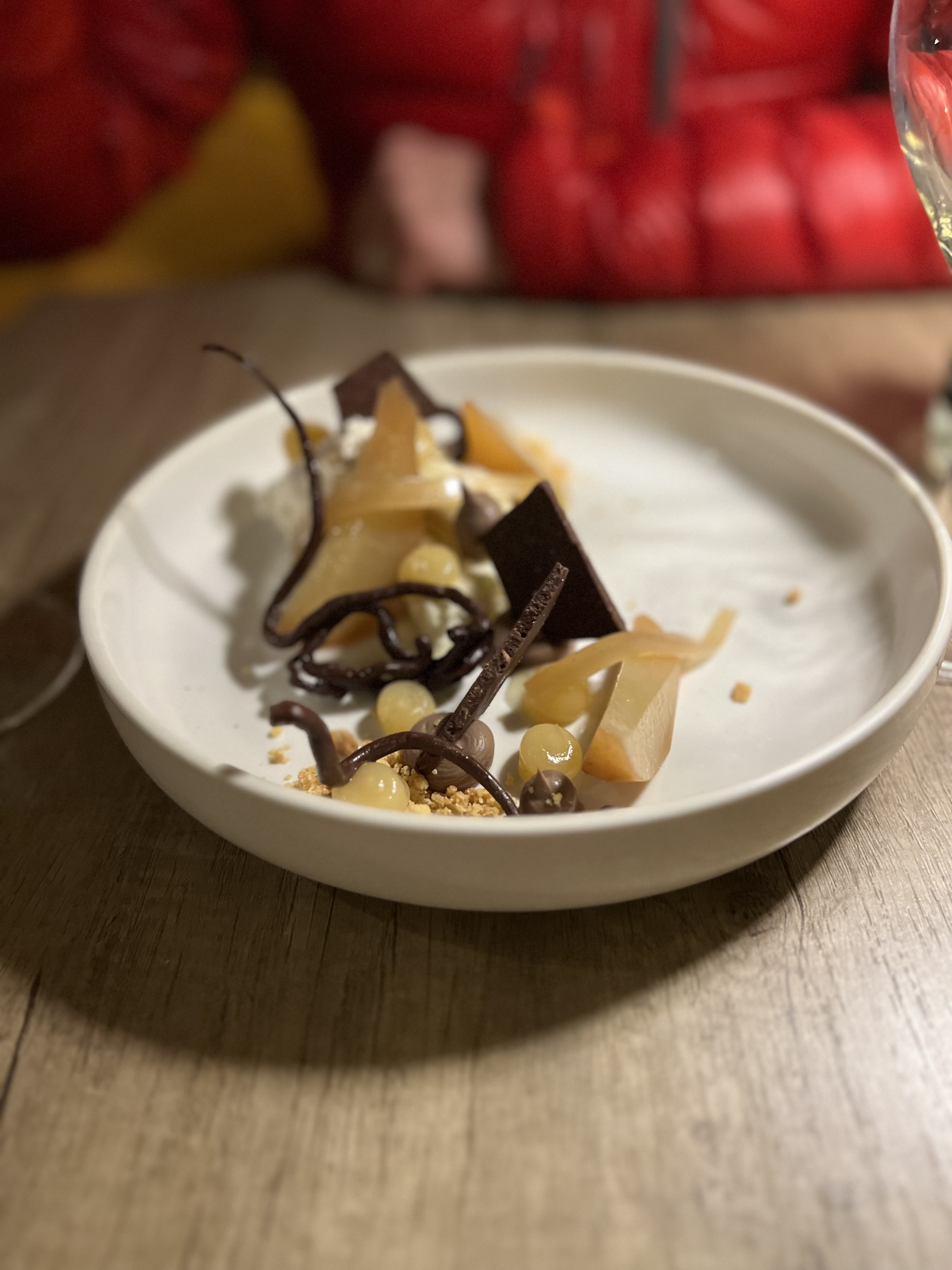 J'ai dîné ici en septembre 2023. Un éclairage romantique et des banquets confortables en velours créent l’ambiance d’une soirée élégante et détendue. La nourriture était sublime. Un repas vraiment mémorable. 2 ou 3 choix pour chaque plat pour que chaque plat soit parfait dans une assiette. Les ingrédients les plus frais et de la meilleure qualité présentés avec soin et respect. J'ai eu une confiserie de tomates, une sorte de mousse de chèvre et un pesto léger et brillant. Suivi du magret de canard aux délicates girolles de la première saison. Nous avons fait confiance à leurs recommandations de vins et l'accord était parfait. Nous y retournerions en un instant. C'est tellement triste que ce soit si loin de Melbourne en Australie !