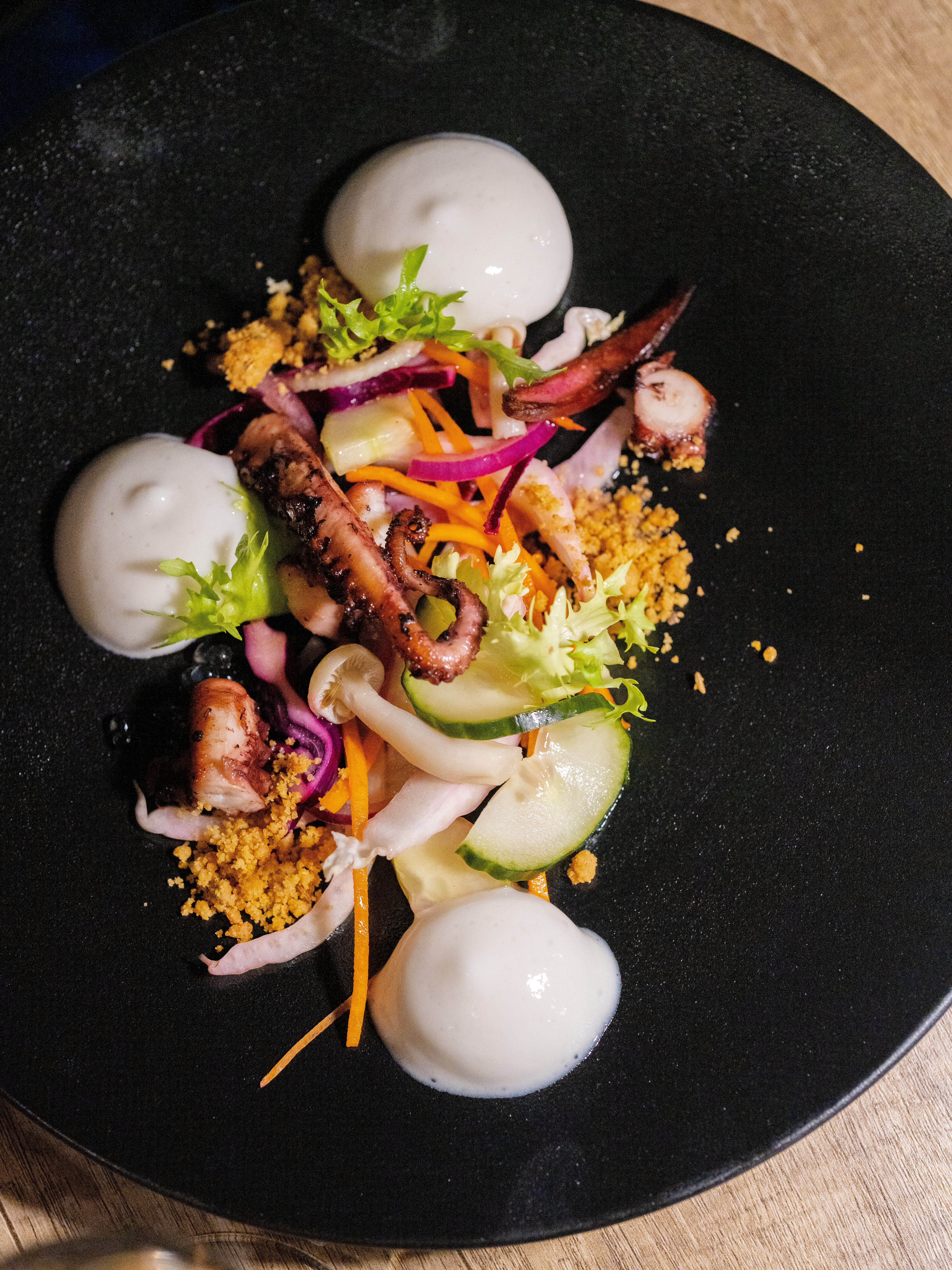 Nous y sommes allés en couple sans réservation. Nous avons été émerveillés par les vues appétissantes de chaque plat. Les saveurs étaient surprenantes, nouvelles, uniques, complexes, doucement tissées les unes avec les autres. Les entrées étaient inspirantes. Le poisson du jour et les raviolis ouverts encrés de calamar noir étaient superbes. Le désert de pommes était légèrement sucré et pas trop lourd. Ceci est la façon dont il devrait être. Le prix était un peu élevé. Avec deux verres de vin, nous avons fini par payer 50 euros chacun.